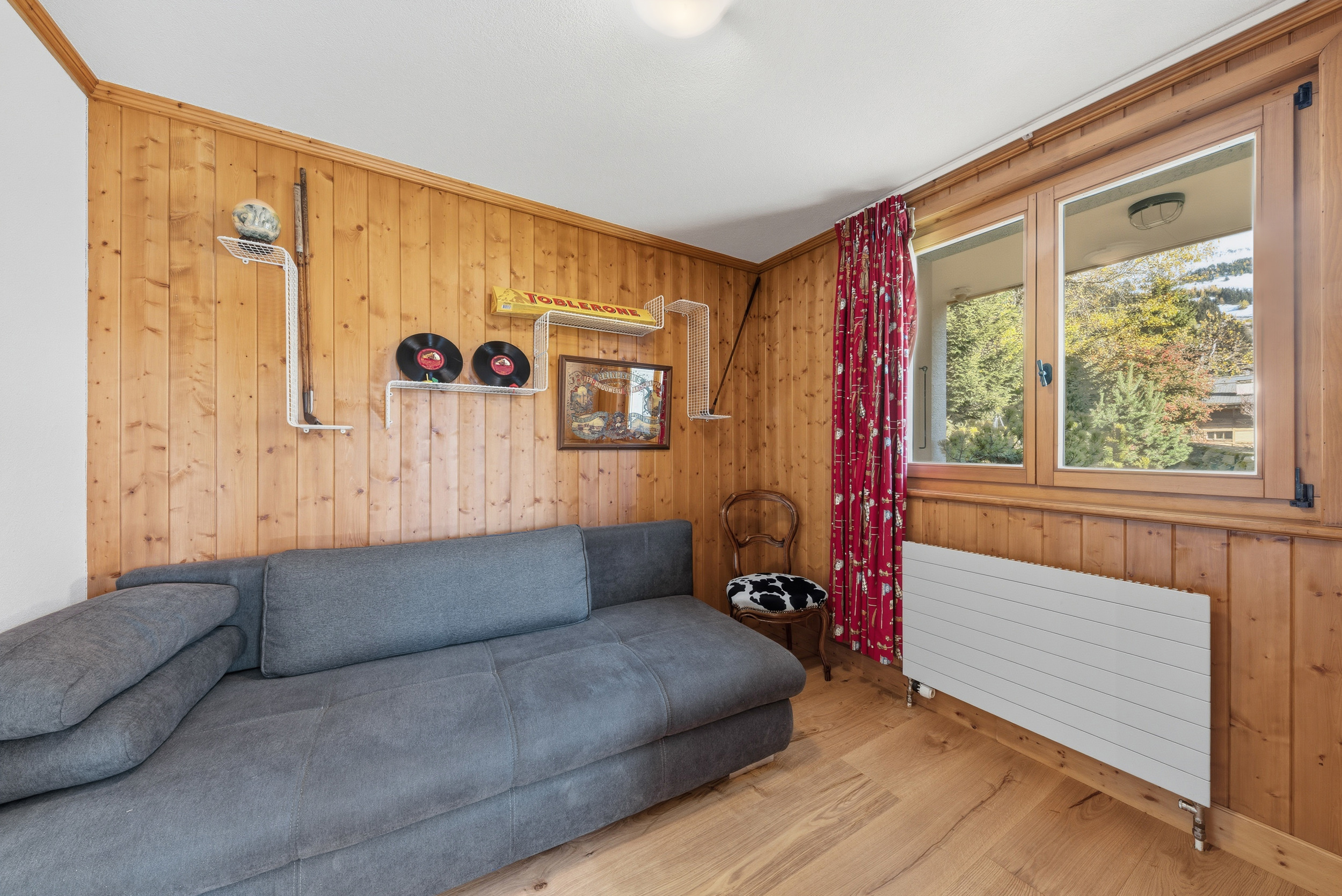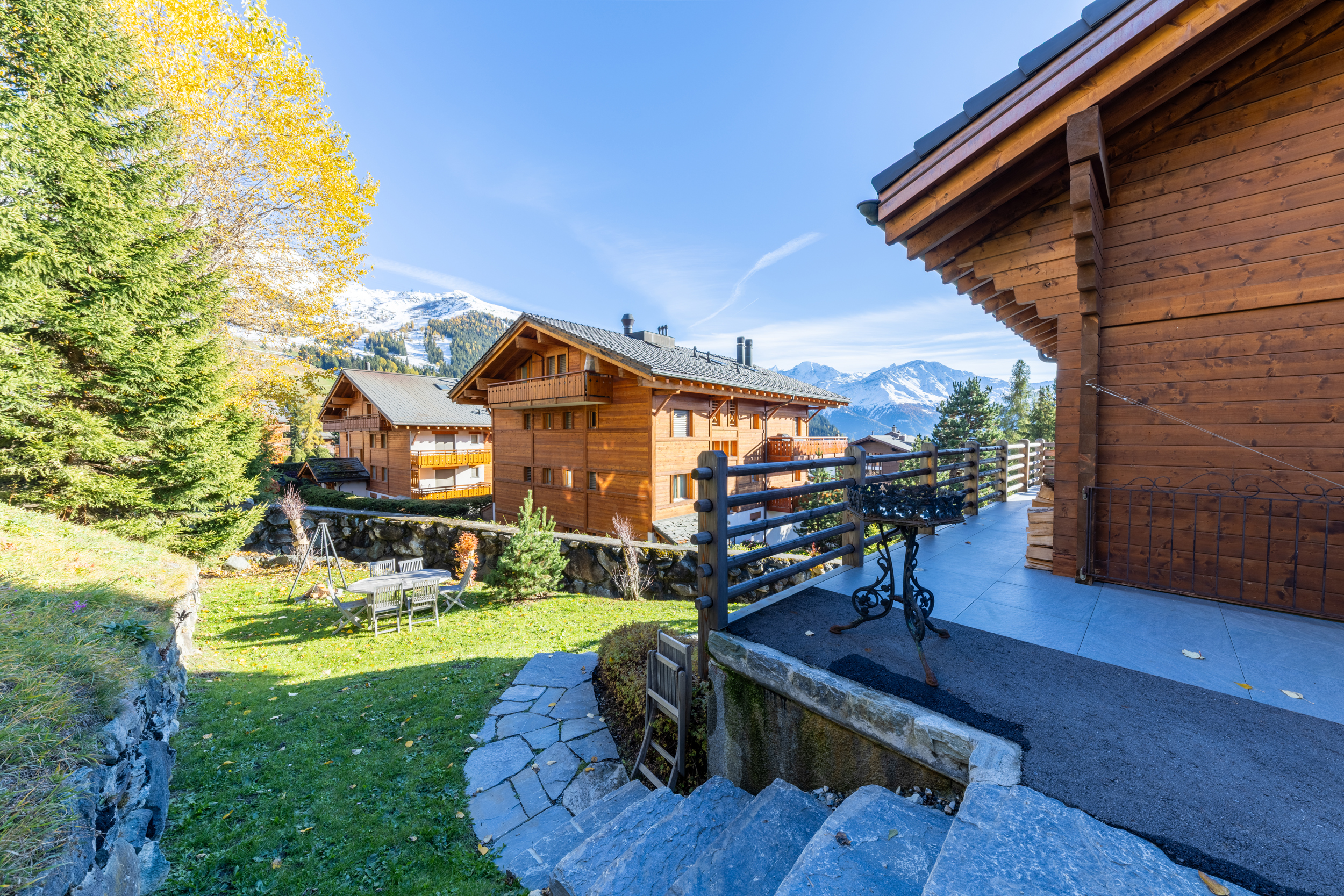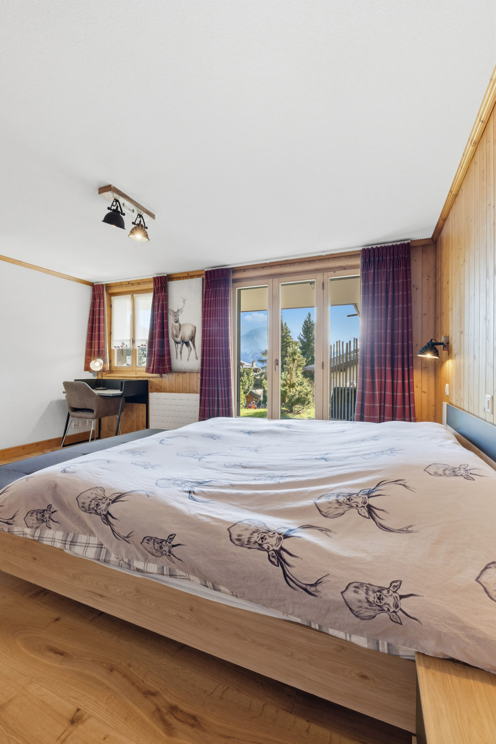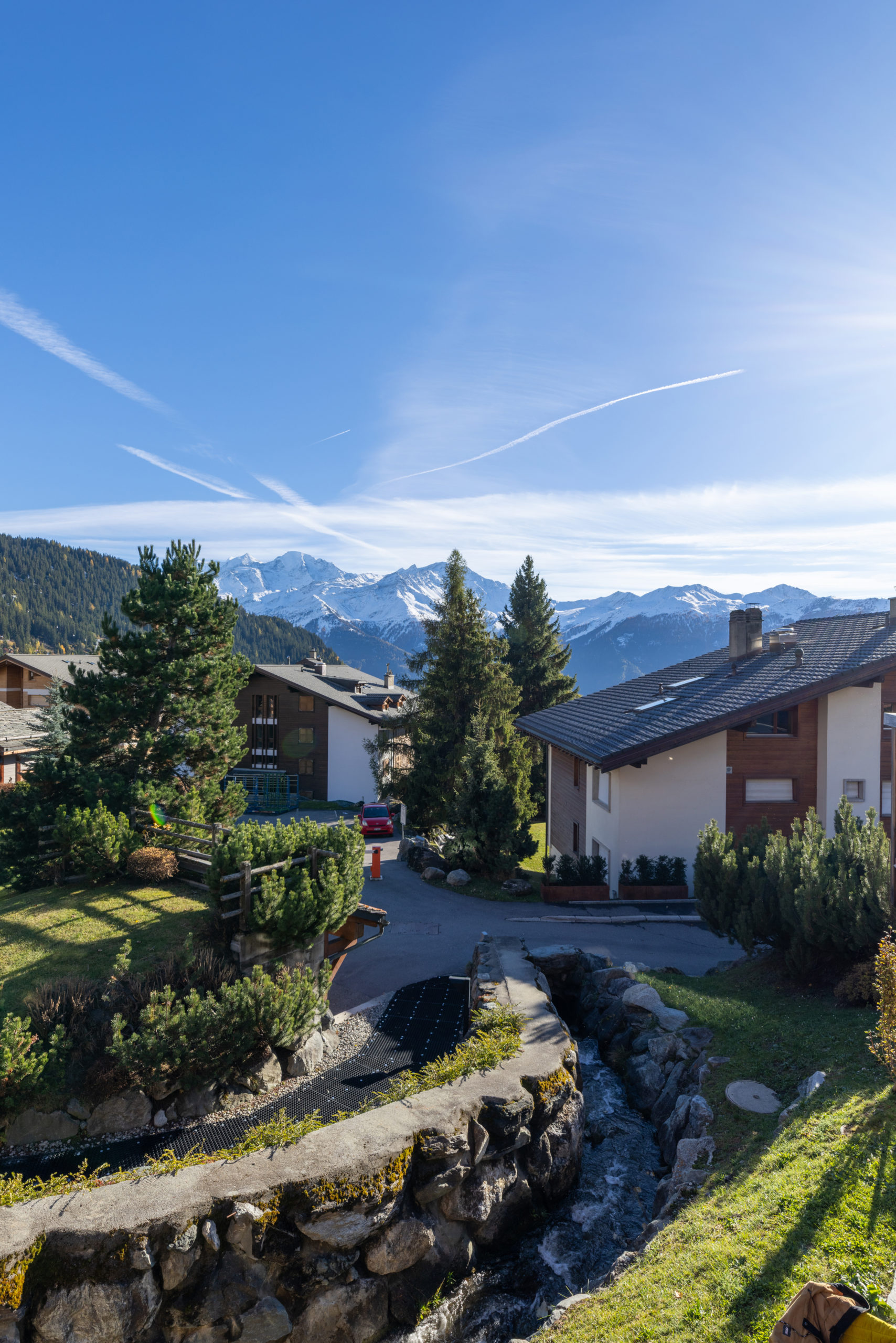 Avec une vue panoramique sur les Alpes suisses et un accès direct à la nature, cette résidence offre une atmosphère chaleureuse et intime — idéale pour ceux qui recherchent la tranquillité, le confort et un luxe discret.