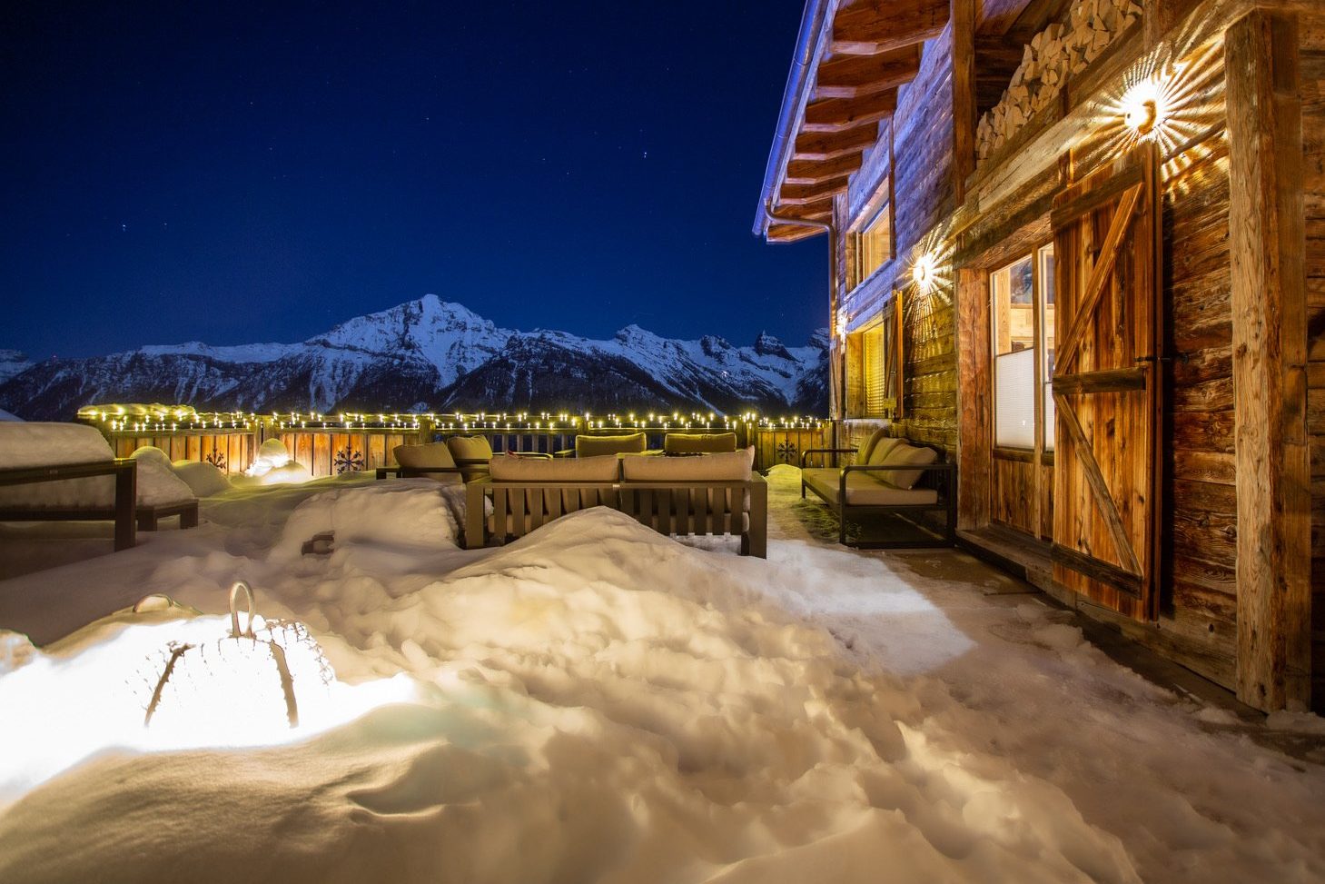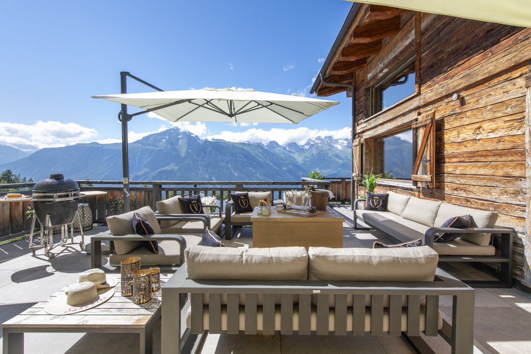 Chalet V’s outdoor spaces are designed for both relaxation and entertainment, offering some of the most breathtaking panoramic views in La Tzoumaz.
