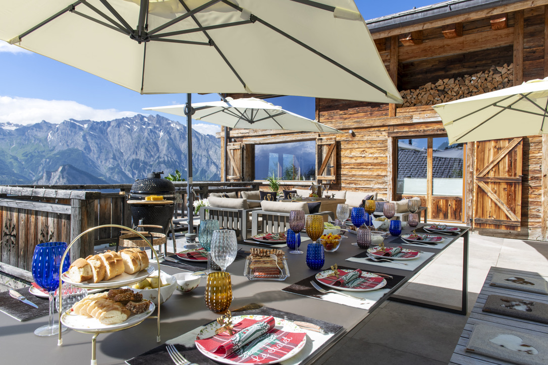 The large terrace provides an ideal setting for alfresco dining, with two large barbecues for summer grilling. Whether you’re enjoying a morning coffee with a view, an evening aperitif, or a post-ski soak in the hot tub, Chalet V offers a truly unforgettable mountain experience.