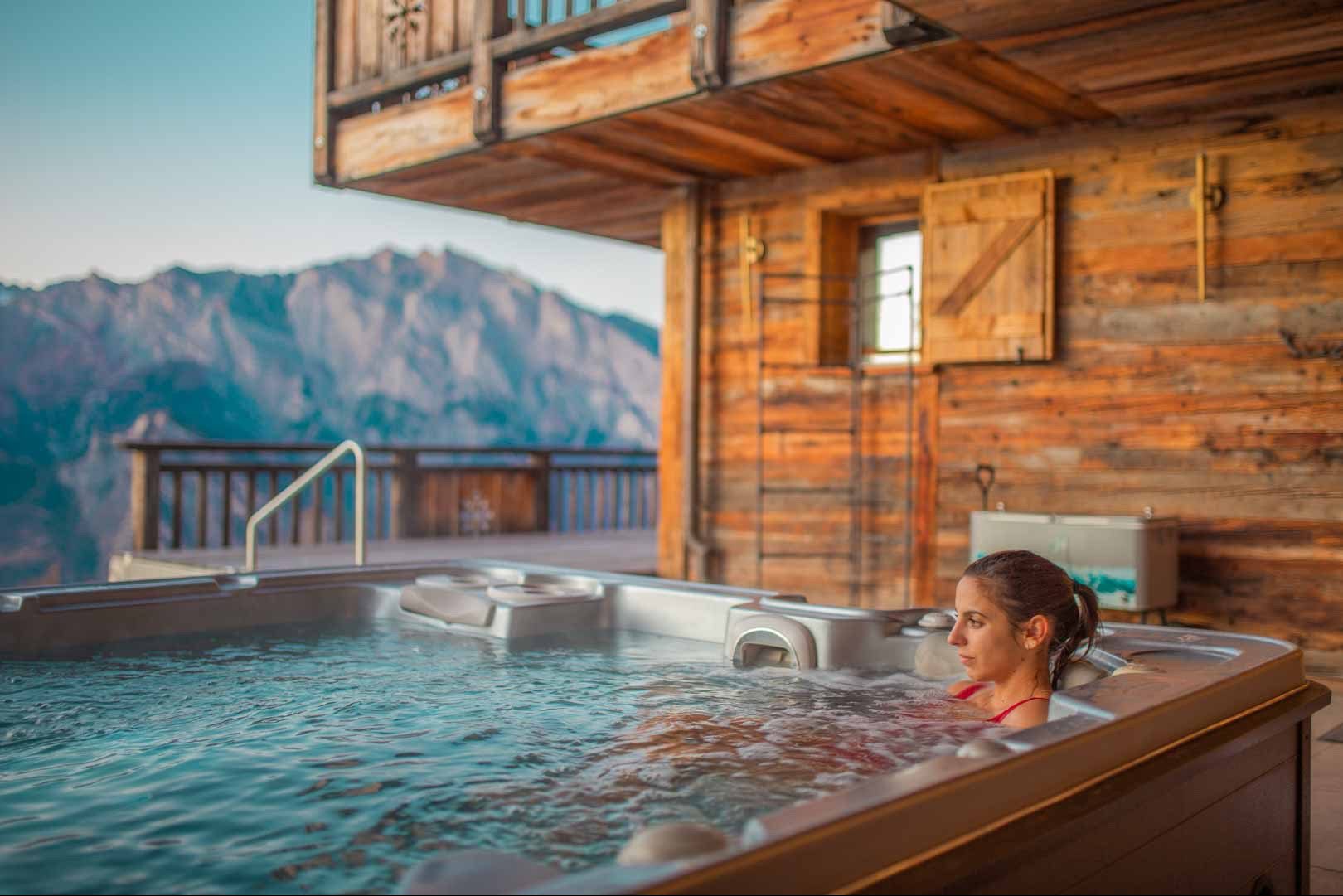 • Oversized hot tub with panoramic mountain views.