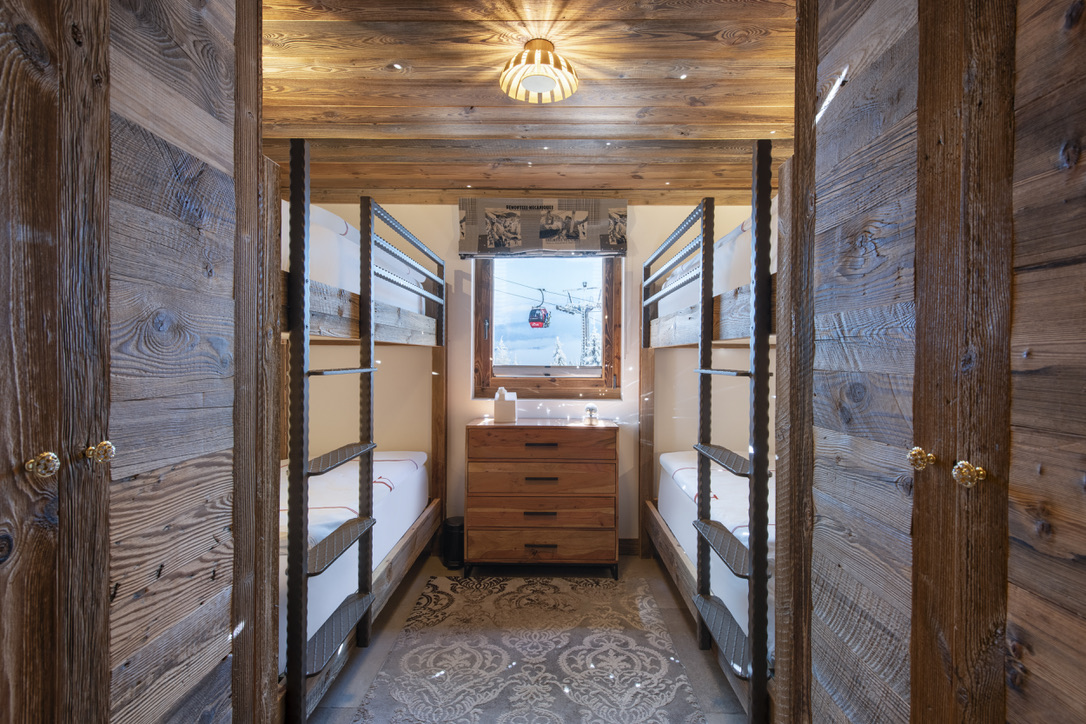 The chalet’s five bedrooms are beautifully appointed, offering a mix of double, twin, and bunk bed configurations, making it ideal for families, groups of friends, or corporate retreats. The master bedroom, located on the top floor, features a king-size bed, an en-suite bathroom with a bathtub and walk-in shower, and a private balcony.