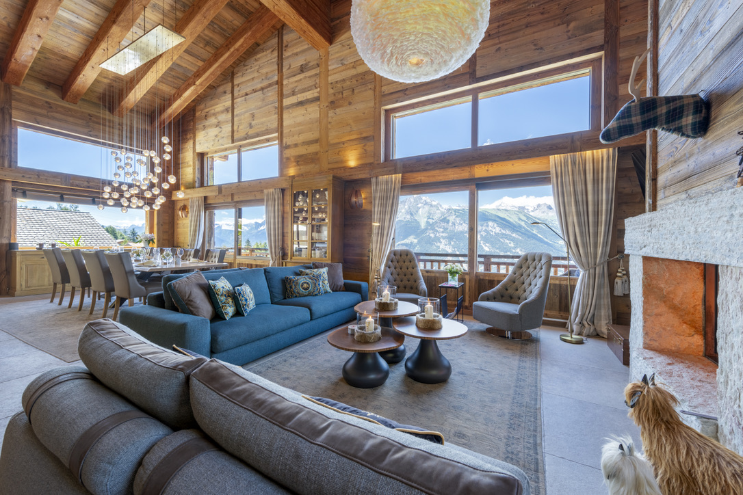 • Luxury 5-bedroom chalet with panoramic Rhône Valley and Alpine views.