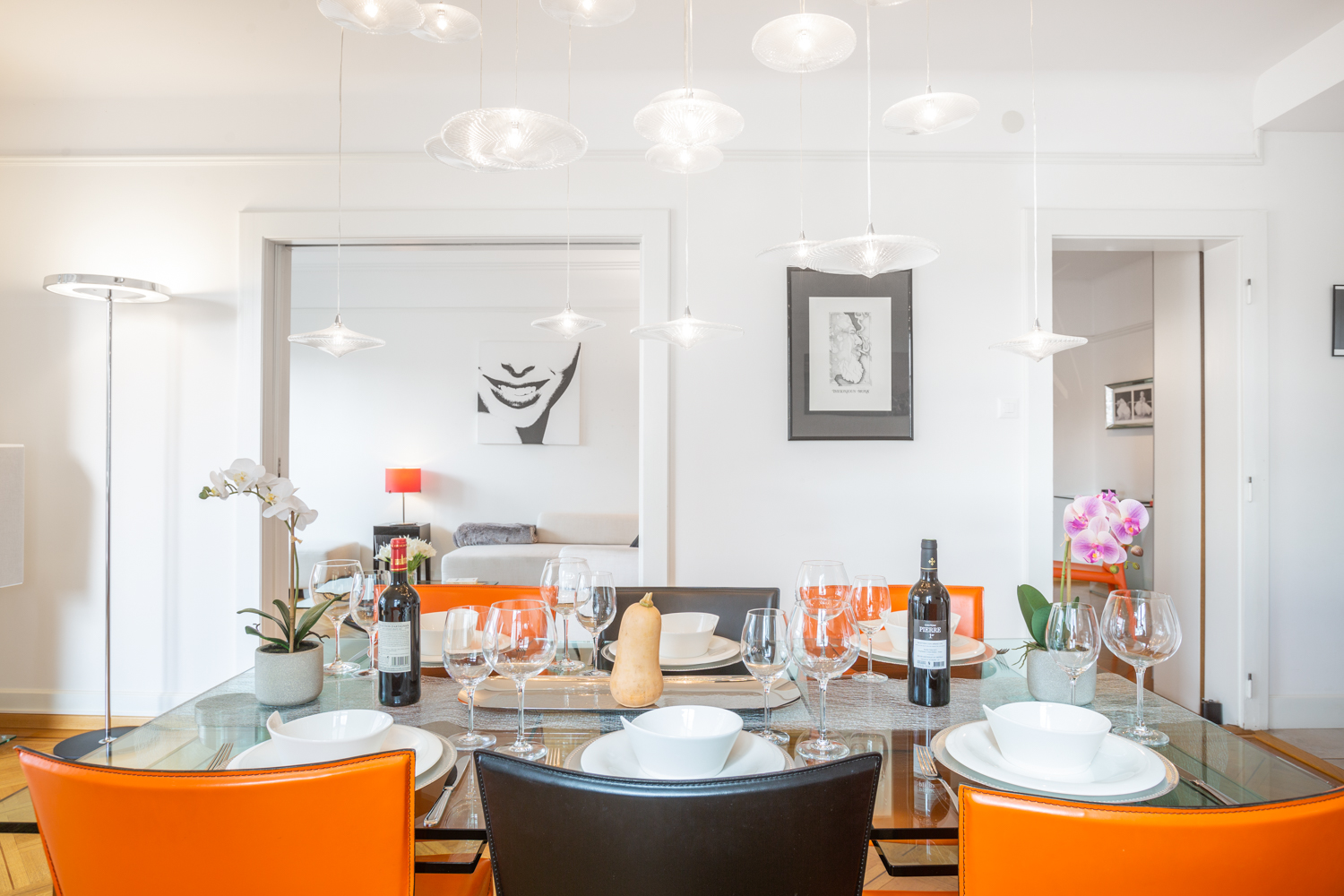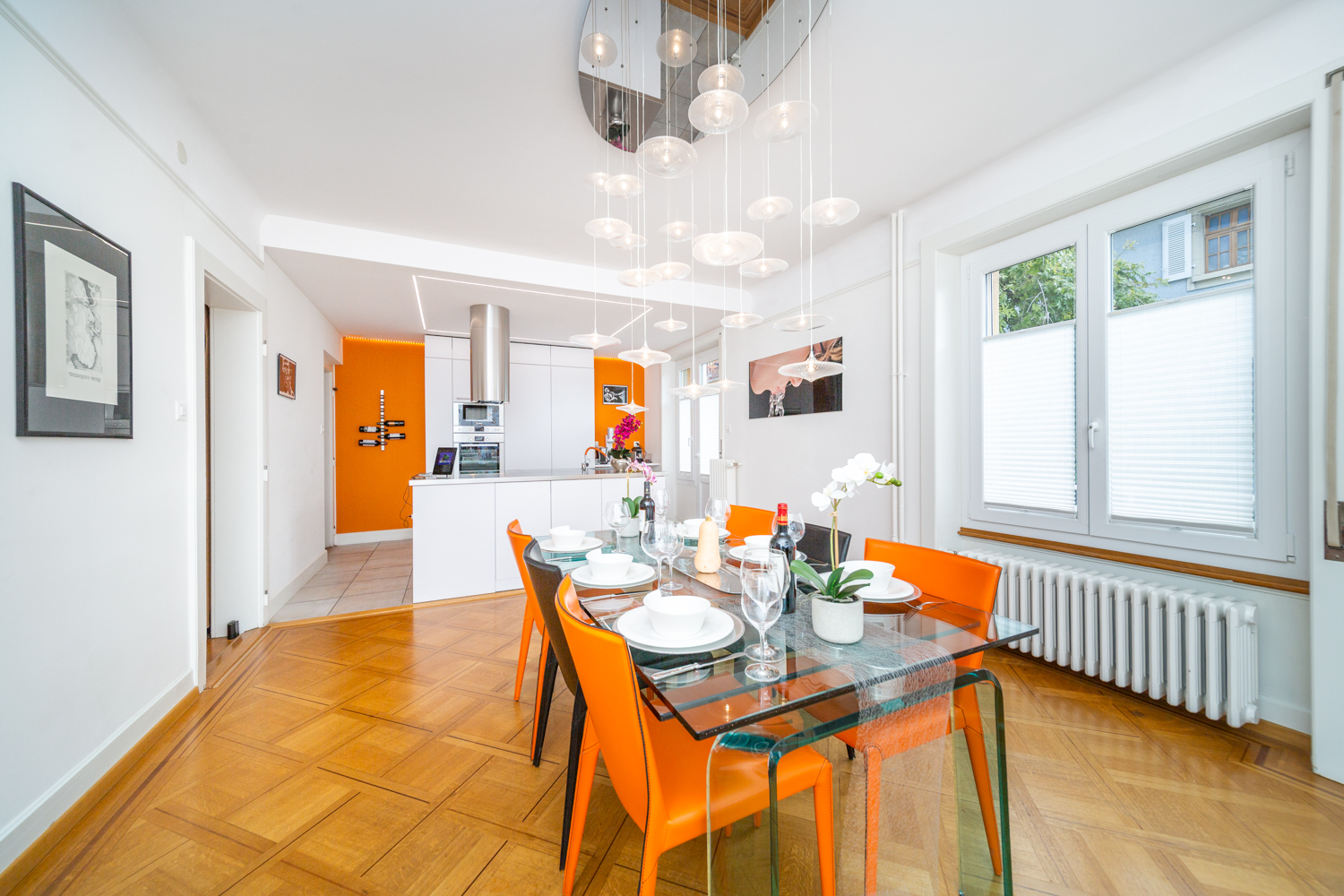 “A modern bright and spacious 3 bedroom appartment with wooden floors and lots of natural light. You will enjoy a large and comfortable design livingroom, a beautiful glass dining table that seats 6, big screen TVs with access to Netflix. Enjoy the convenience of having 2 bathrooms, both equipped with a walk-in shower. One outside parking available at the property”