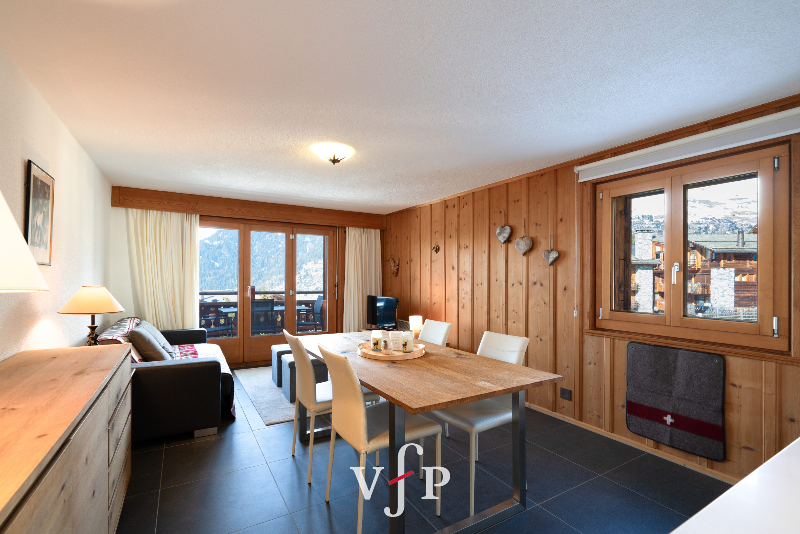 Our apartment in the Verbier Luxury Ski Retreat collection offers comfort and convenience. The spacious living area provides a warm, inviting space to unwind after a day of exploring. The bedroom is cozy and ensures a restful night’s sleep. A well-appointed bathroom adds a touch of luxury to your stay. The fully equipped kitchen allows you to prepare delicious home-cooked meals with modern appliances, including a stove, refrigerator, dishwasher, and microwave. Stay connected and entertained with cable TV, and enjoy the comfort of air conditioning and heating throughout. Free parking is available for those traveling by car.