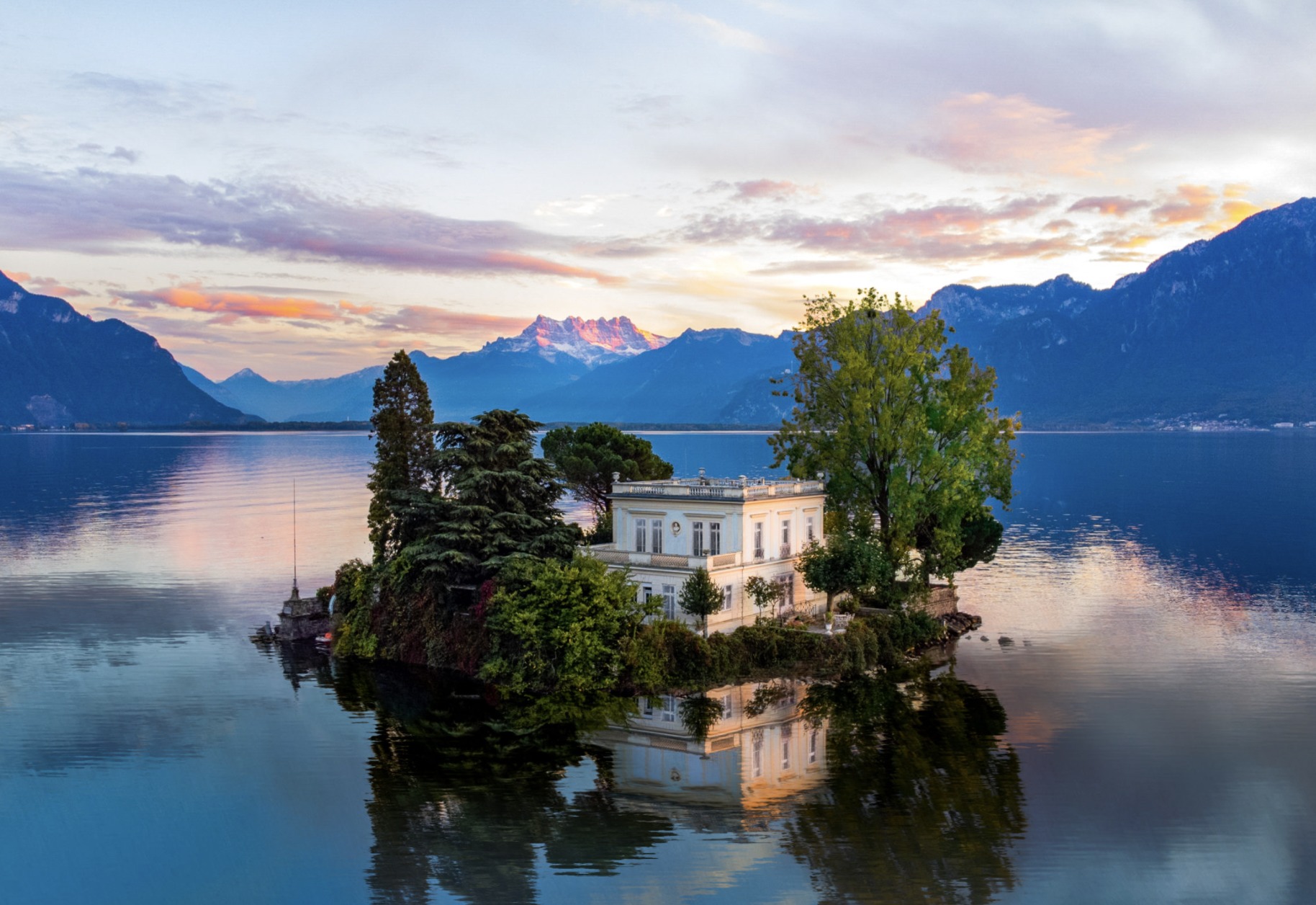 Experience the charm of île de Salagnon, the last of Lake Geneva’s five islands and the only inhabited island on the lake today. Known as “Swan Island,” île de Salagnon offers a unique Swiss Riviera experience. This historic villa from the 1800s provides stunning panoramic lake views and a sense of openness, making it perfect for a luxurious retreat on Lake Geneva.