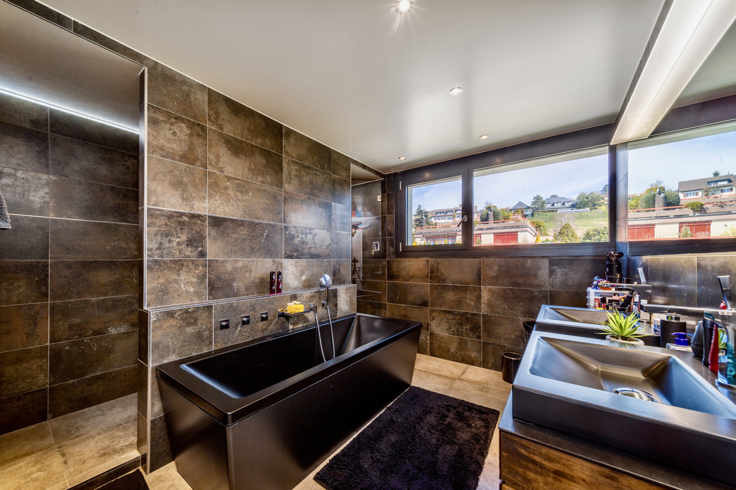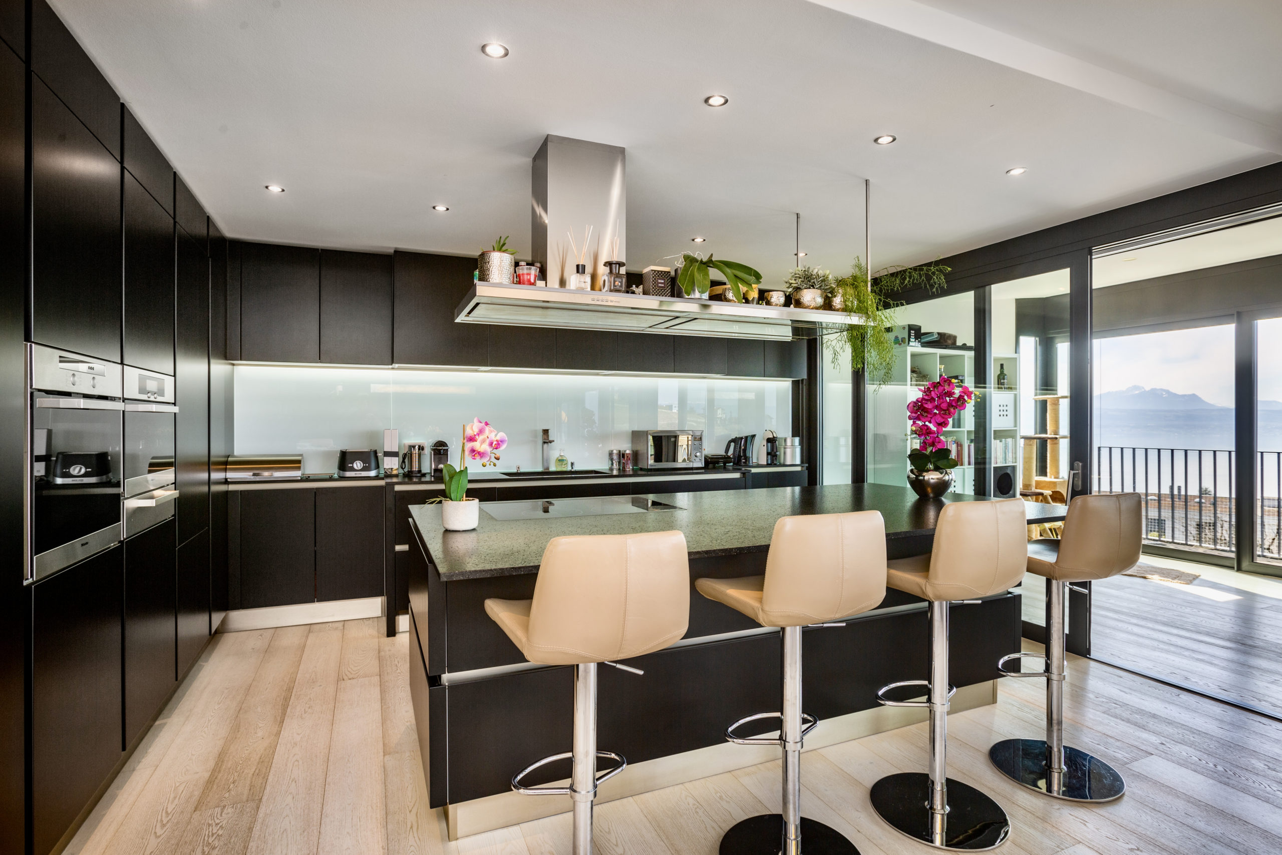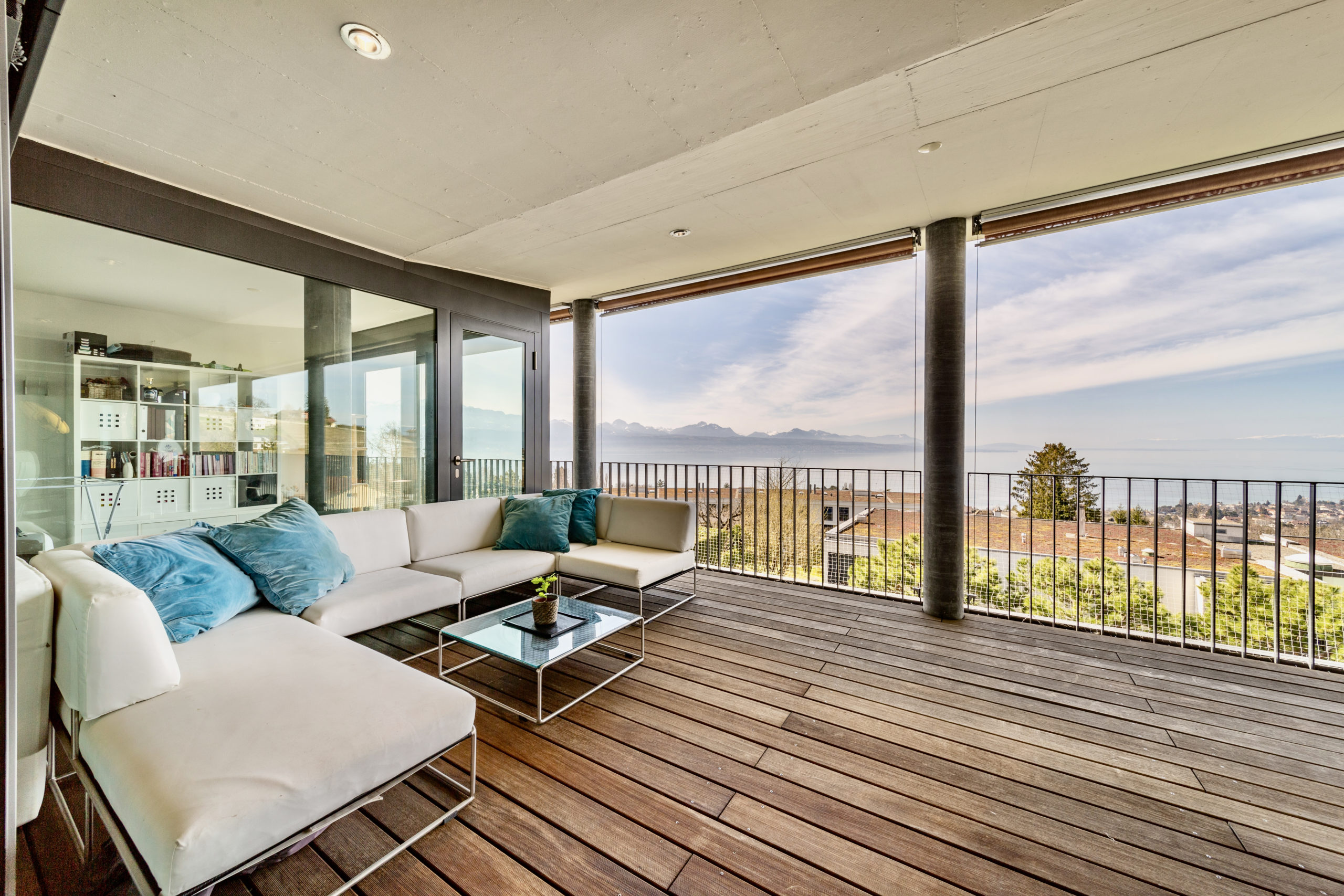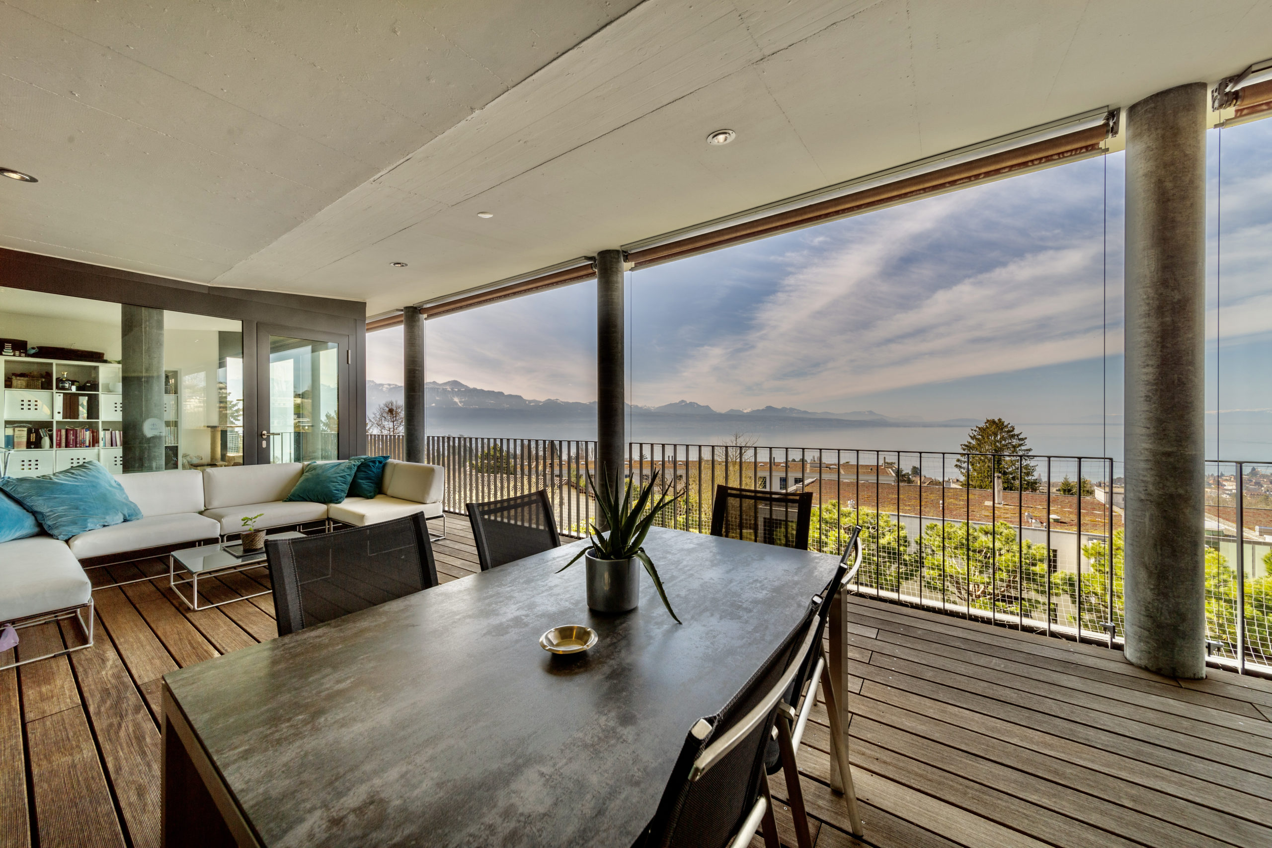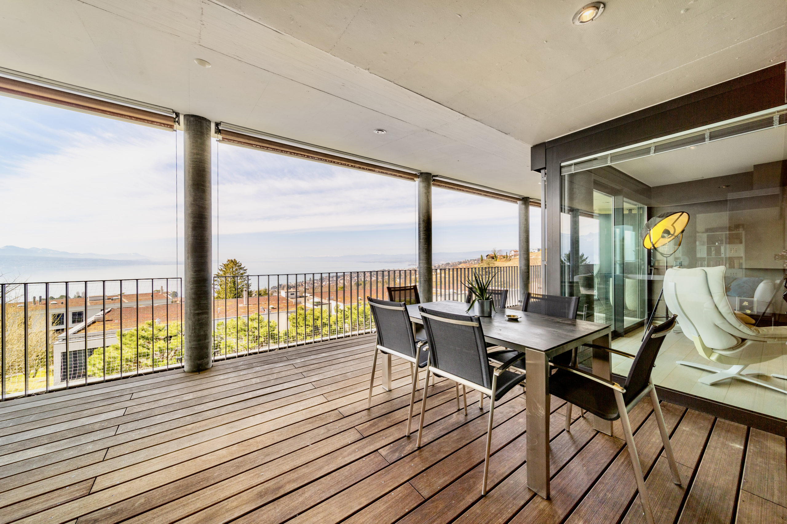 This extravagant penthouse is spread over 200 sq.m2 offering complete privacy and uninterrupted lake views of the Leman and the Swiss Alps.