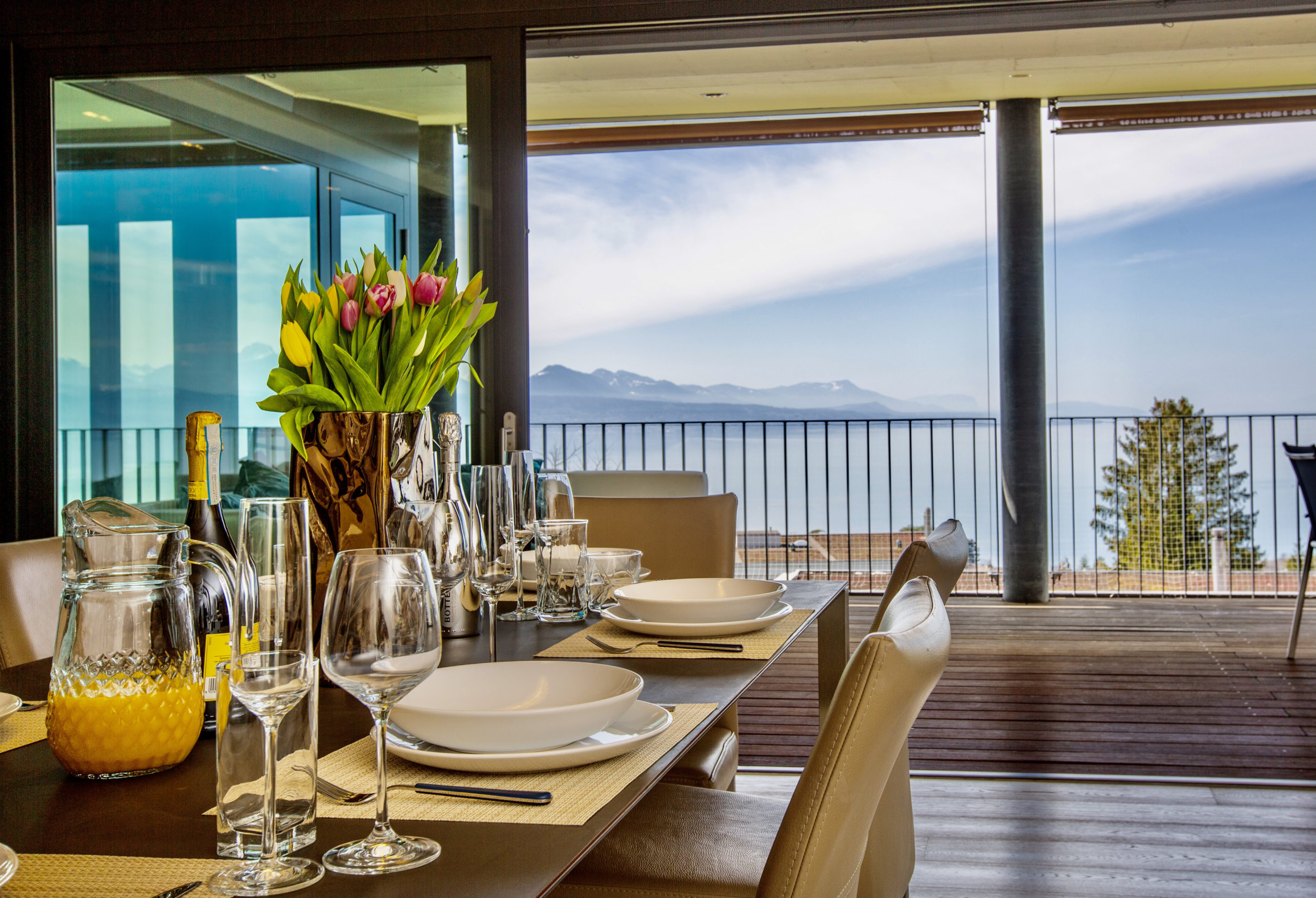 We really enjoyed staying in this wonderful apartment. The views of Lac Leman were out of this world and having breakfast on the deck looking out on that was quite a treat! The inside was equally as beautiful and had everything that was needed for a 10 day stay and three children. Julian and his team were responsive and friendly and I would not hesitate to stay here again. Thanks for everything!