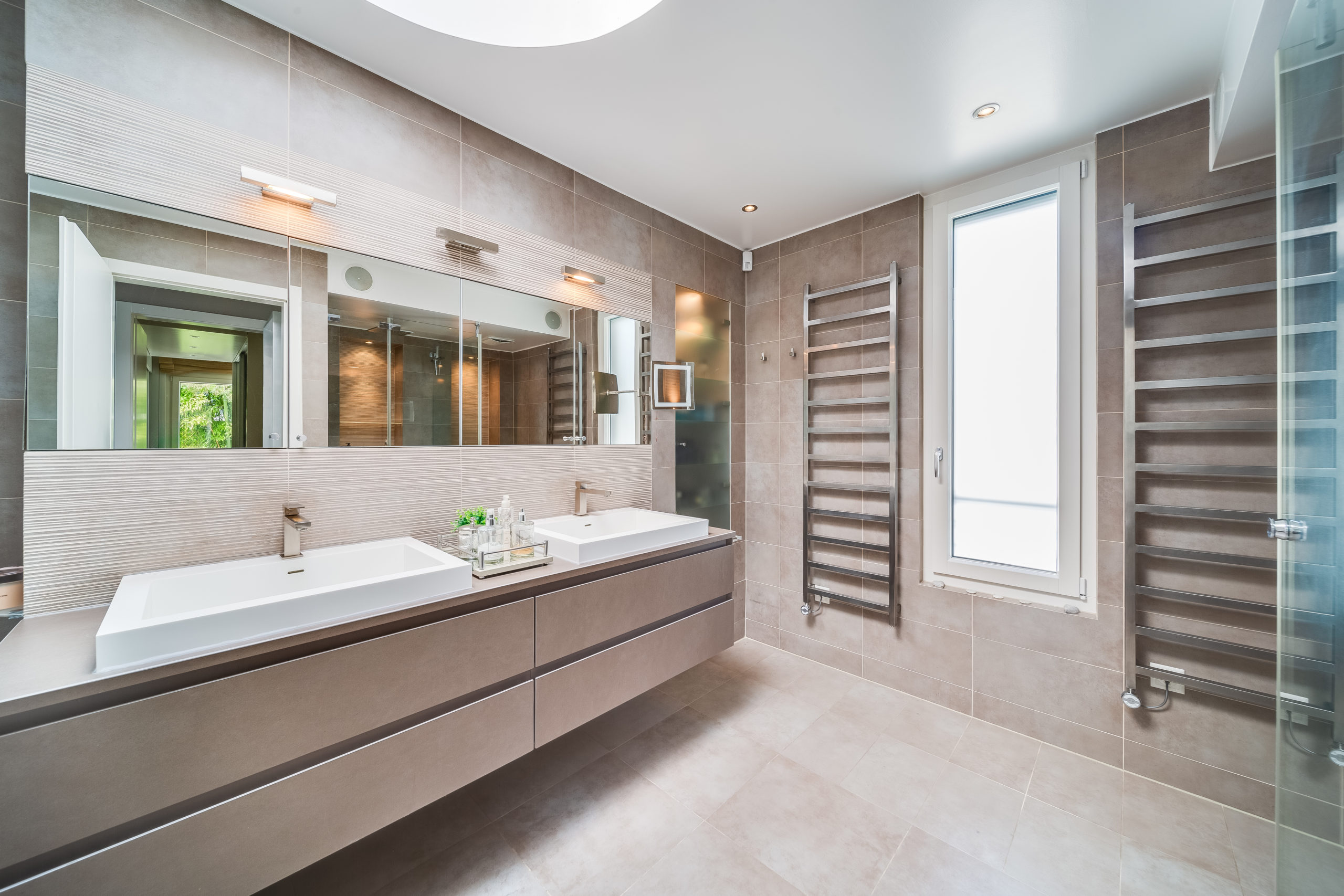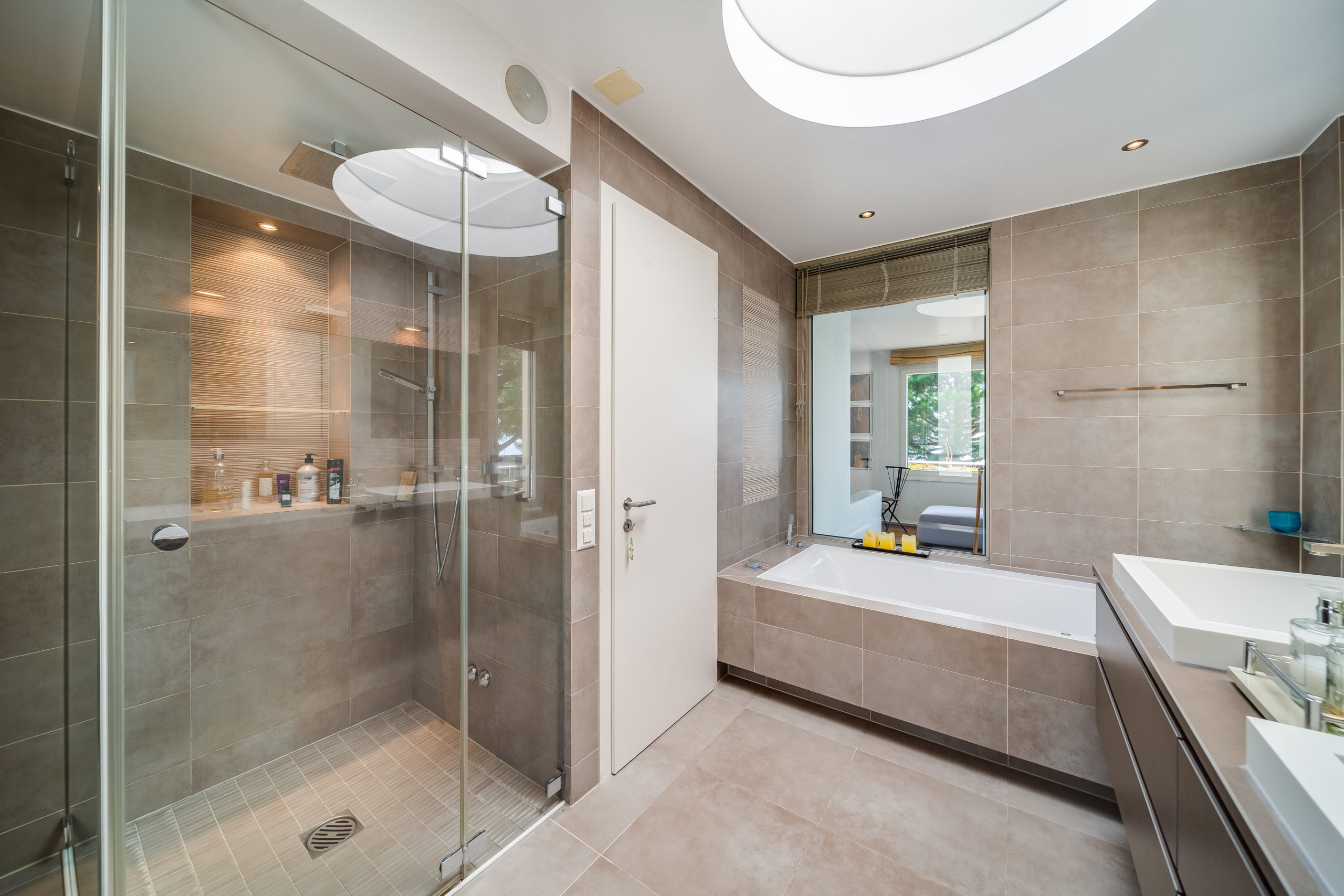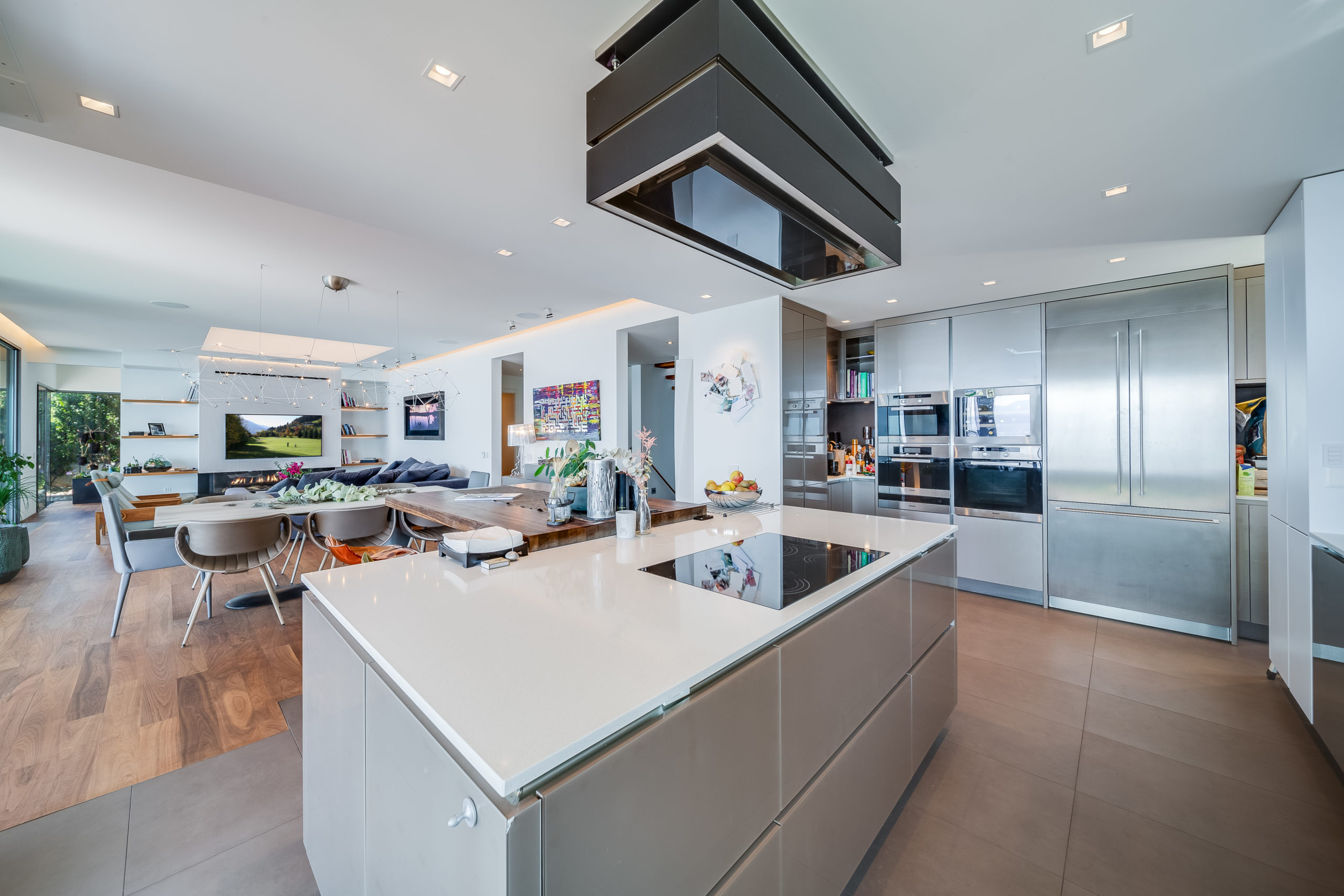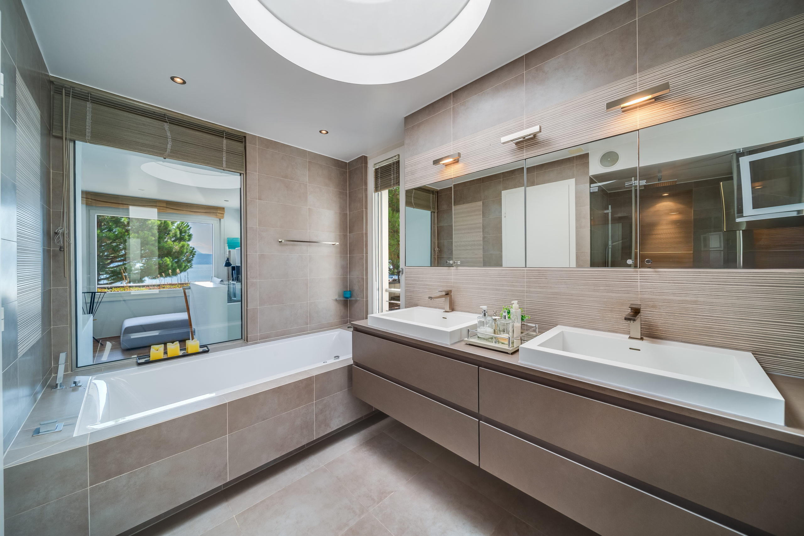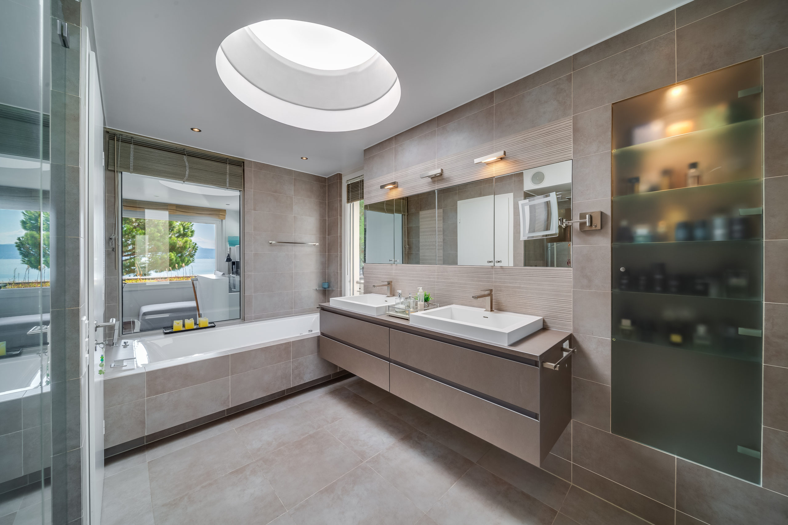 Modern Design & Floor-to-Ceiling Windows: Step into a world of contemporary sophistication as you enter this meticulously designed villa. The sleek, modern interiors are complemented by floor-to-ceiling windows that flood every room with natural light and provide uninterrupted views of the lake and mountains.