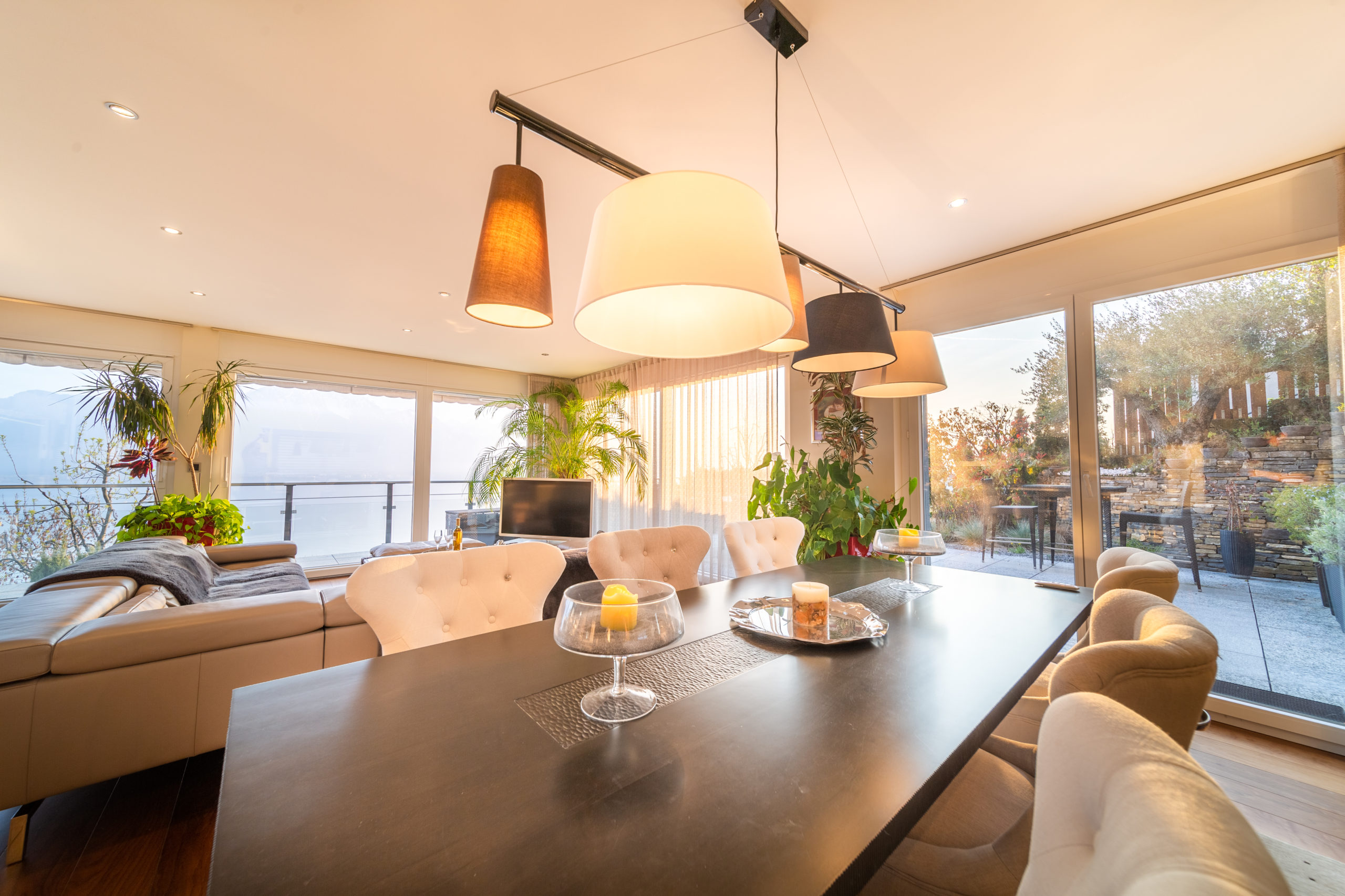 This apartment provides guests with excellent dining space, a spacious living room, a large fully equipped kitchen, 1 double bedroom suite, and one spacious private balcony with panoramic view of the Swiss Alps and the Geneva Lake with a hot jacuzzi in the terrace with panoramic views, plus one indoor parking.