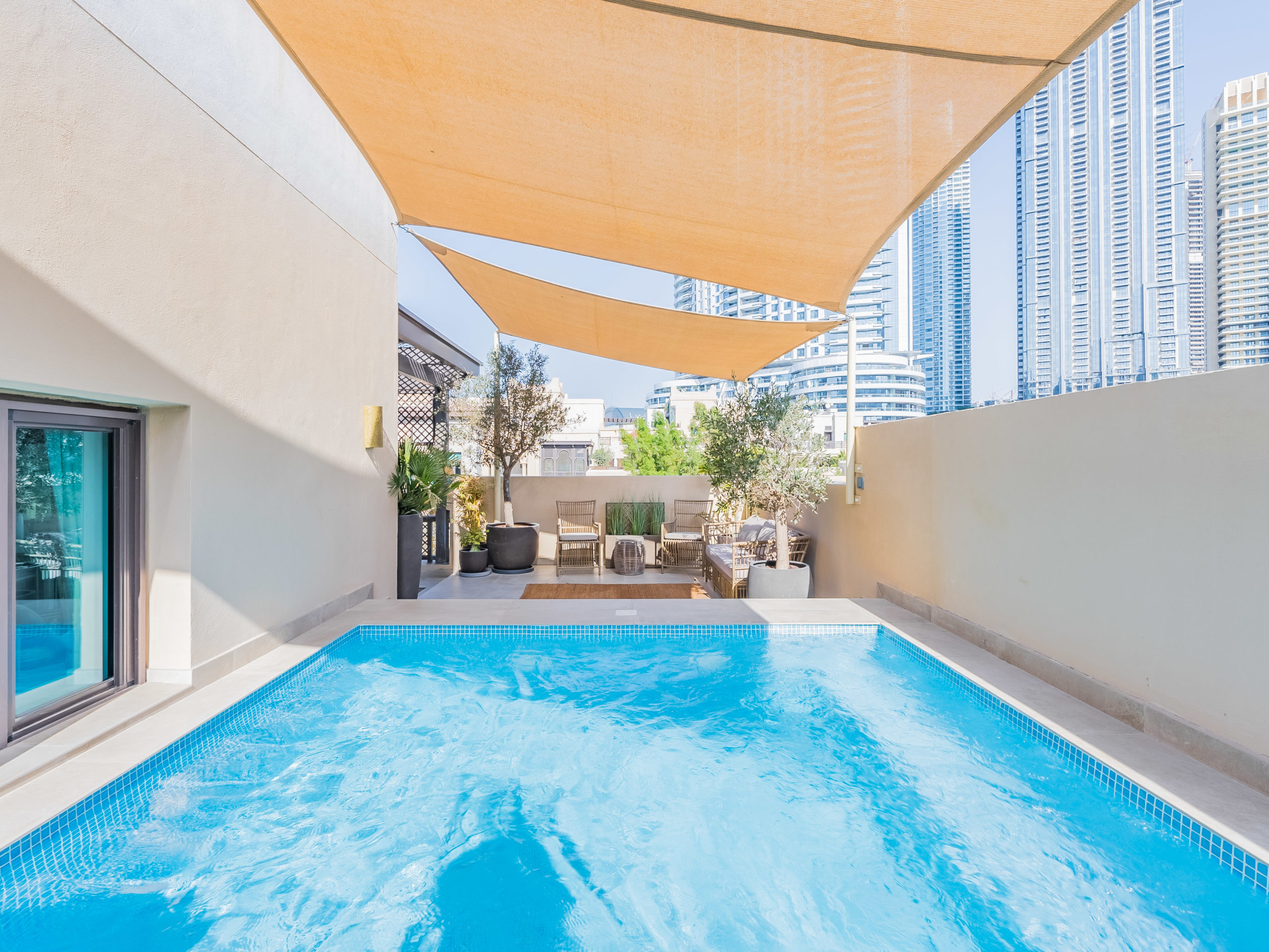 Discover a rare gem in the heart of Old Town Dubai, a luxurious 2.5-bedroom apartment that blends historic charm with contemporary elegance. Nestled in the prestigious Souk Al Bahar, this exquisite residence offers a truly unique experience—a private pool in the heart of Downtown Dubai, providing an oasis of relaxation amidst the city’s vibrant energy.