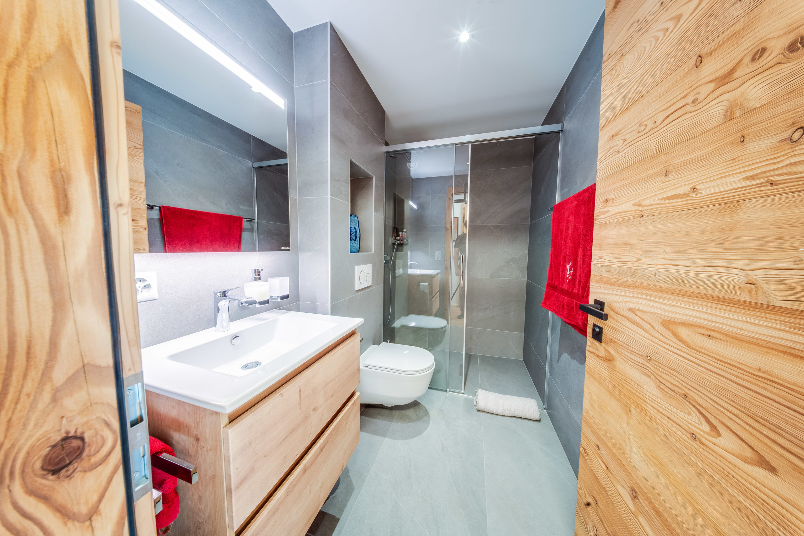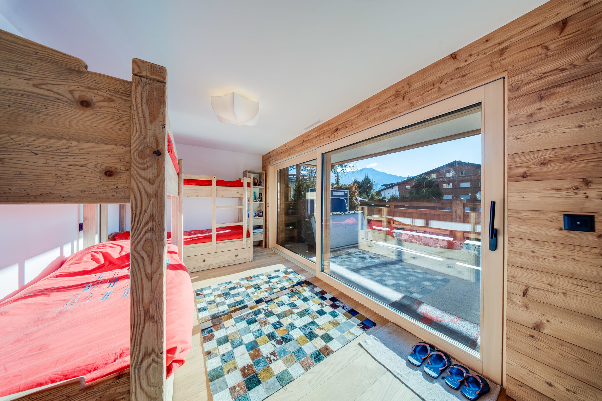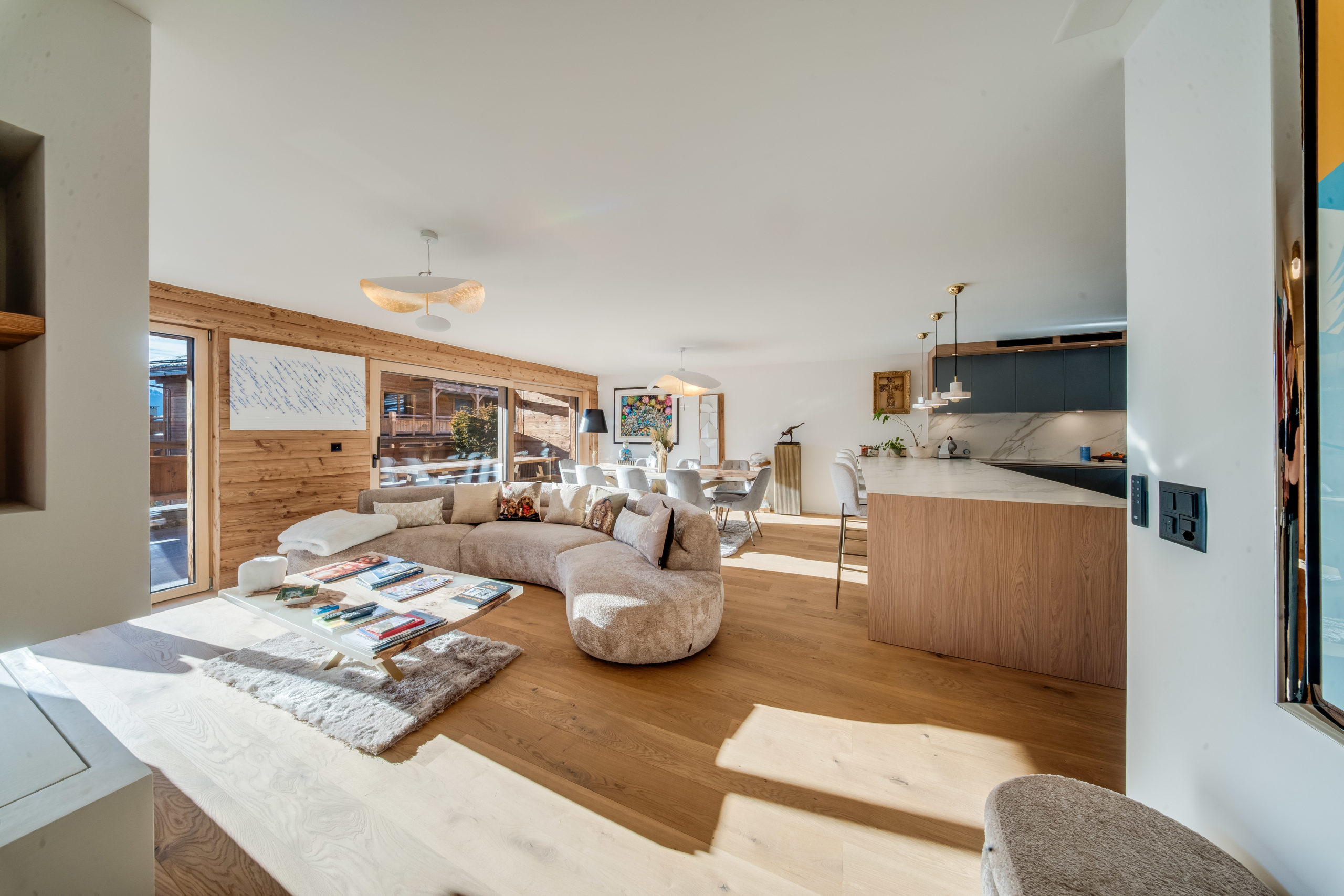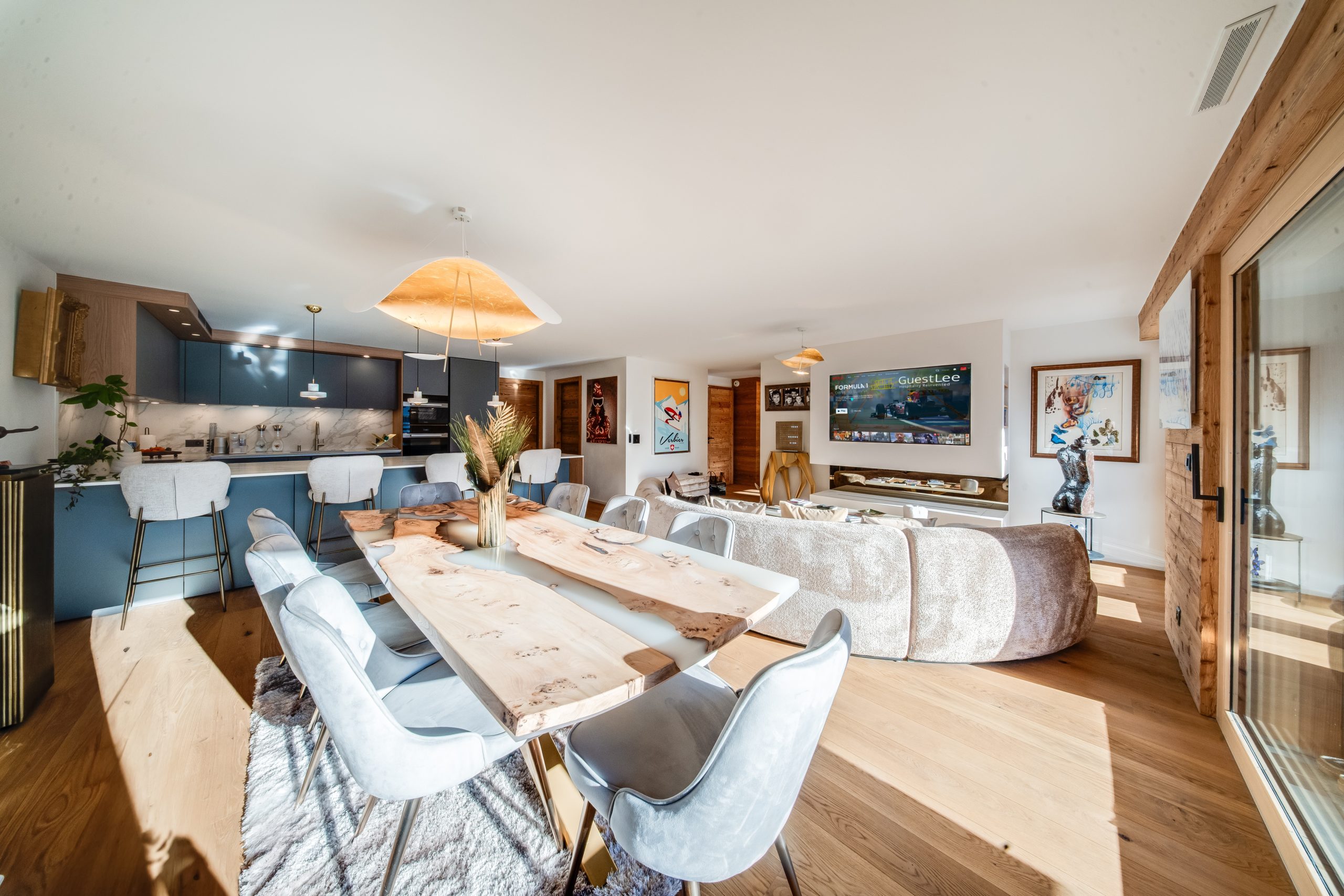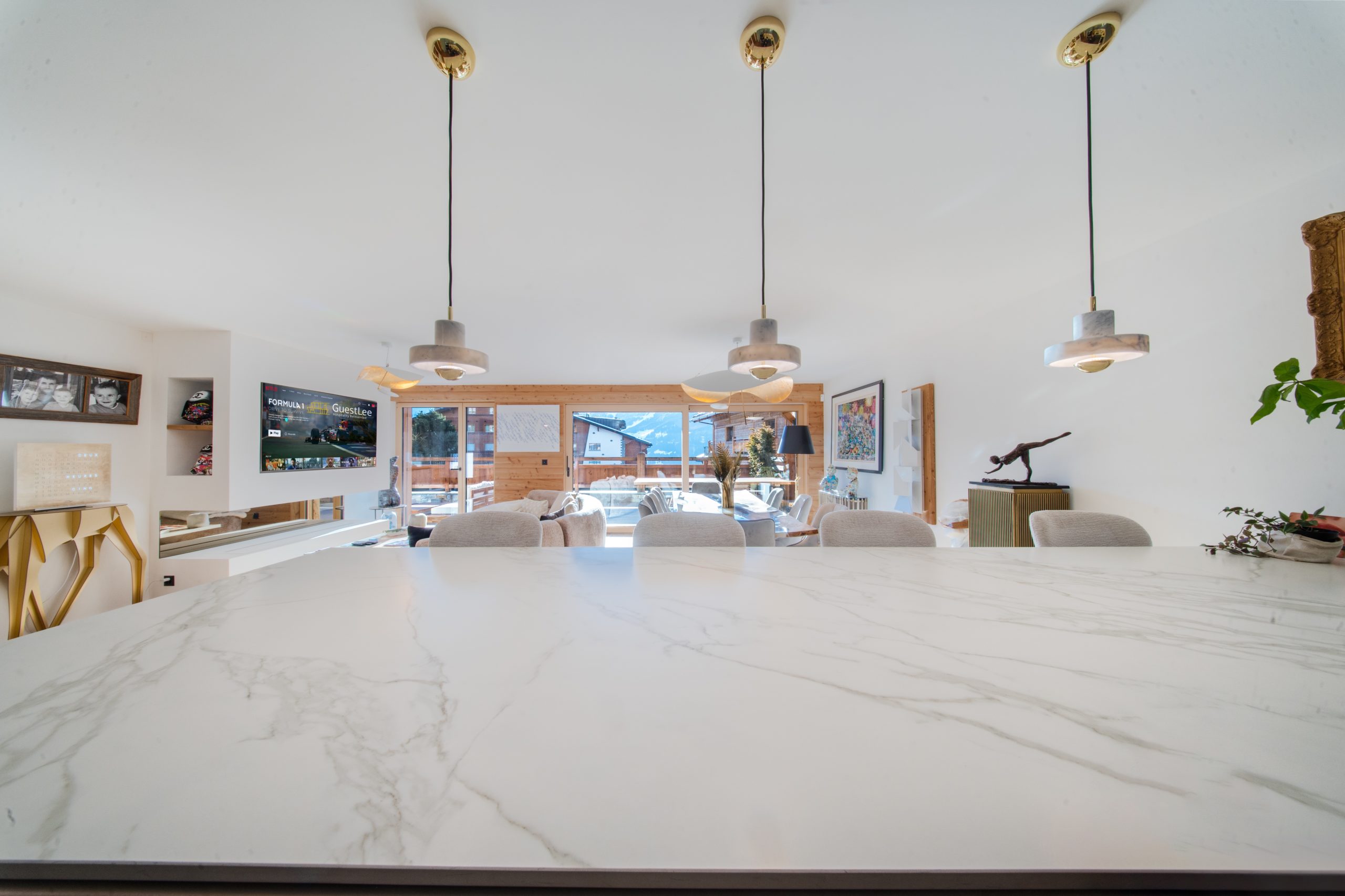 All on one level, with elevator access and generous living spaces, the apartment is perfect for families, groups, or wellness retreats looking for a premium stay in Switzerland’s most iconic mountain resort.
