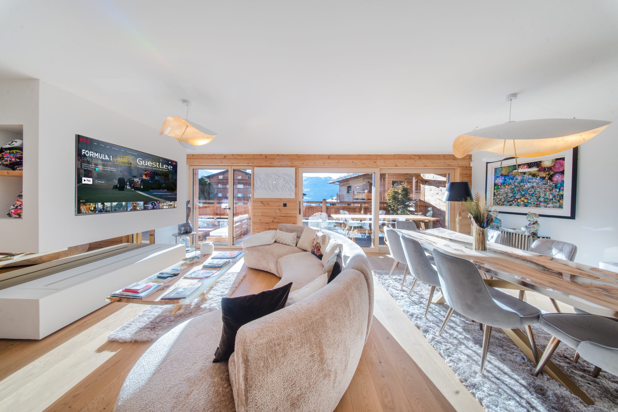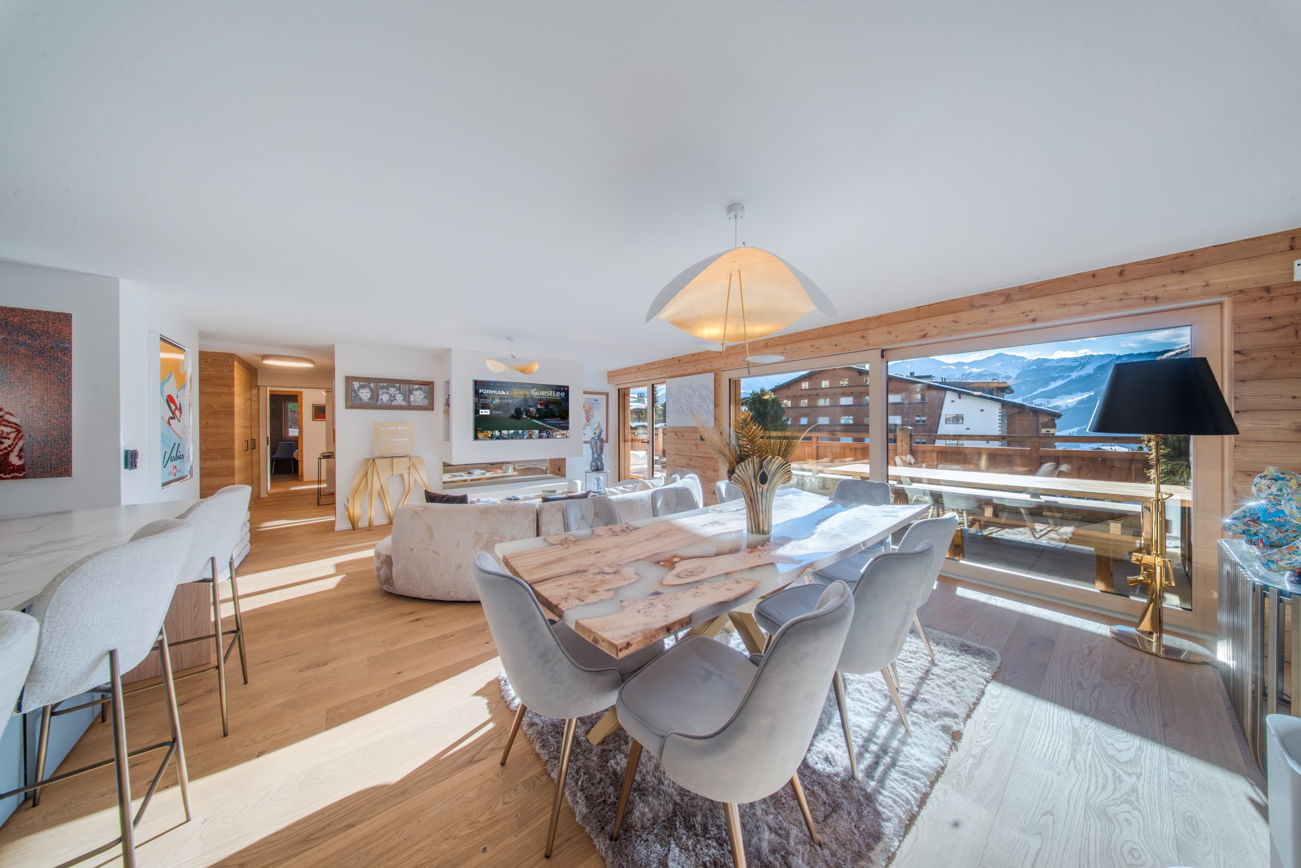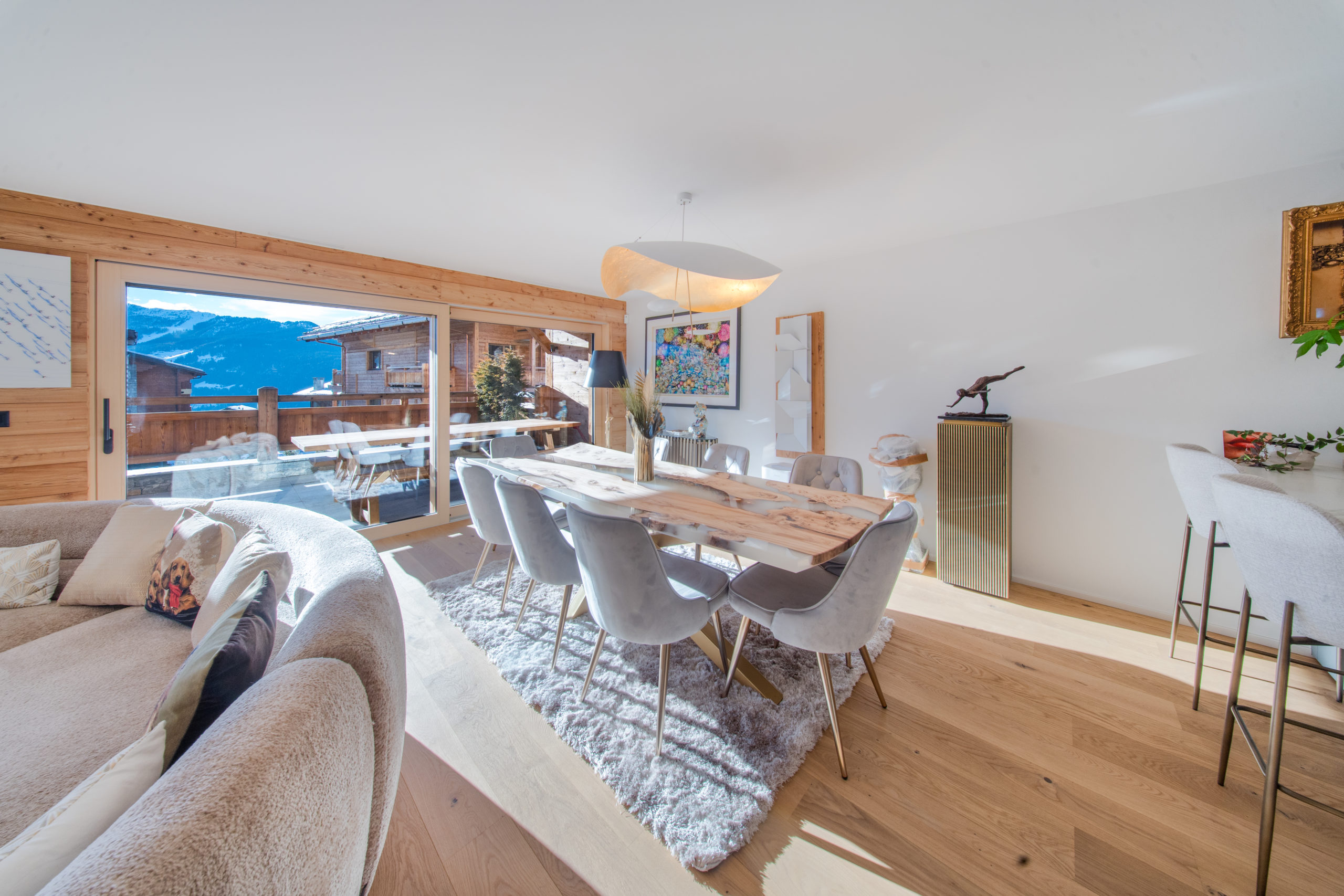 A rare opportunity to stay in a brand-new 200 m² alpine residence, ideally located in the center of Verbier village—just steps from the Médran lifts, shops, restaurants, and all the action. Designed for both ski lovers and design enthusiasts, this 4-bedroom, 2-bathroom chalet apartment combines contemporary alpine architecture with warmth, comfort, and a stunning 60 m² panoramic terrace featuring a private jacuzzi, outdoor dining, and breathtaking mountain views.