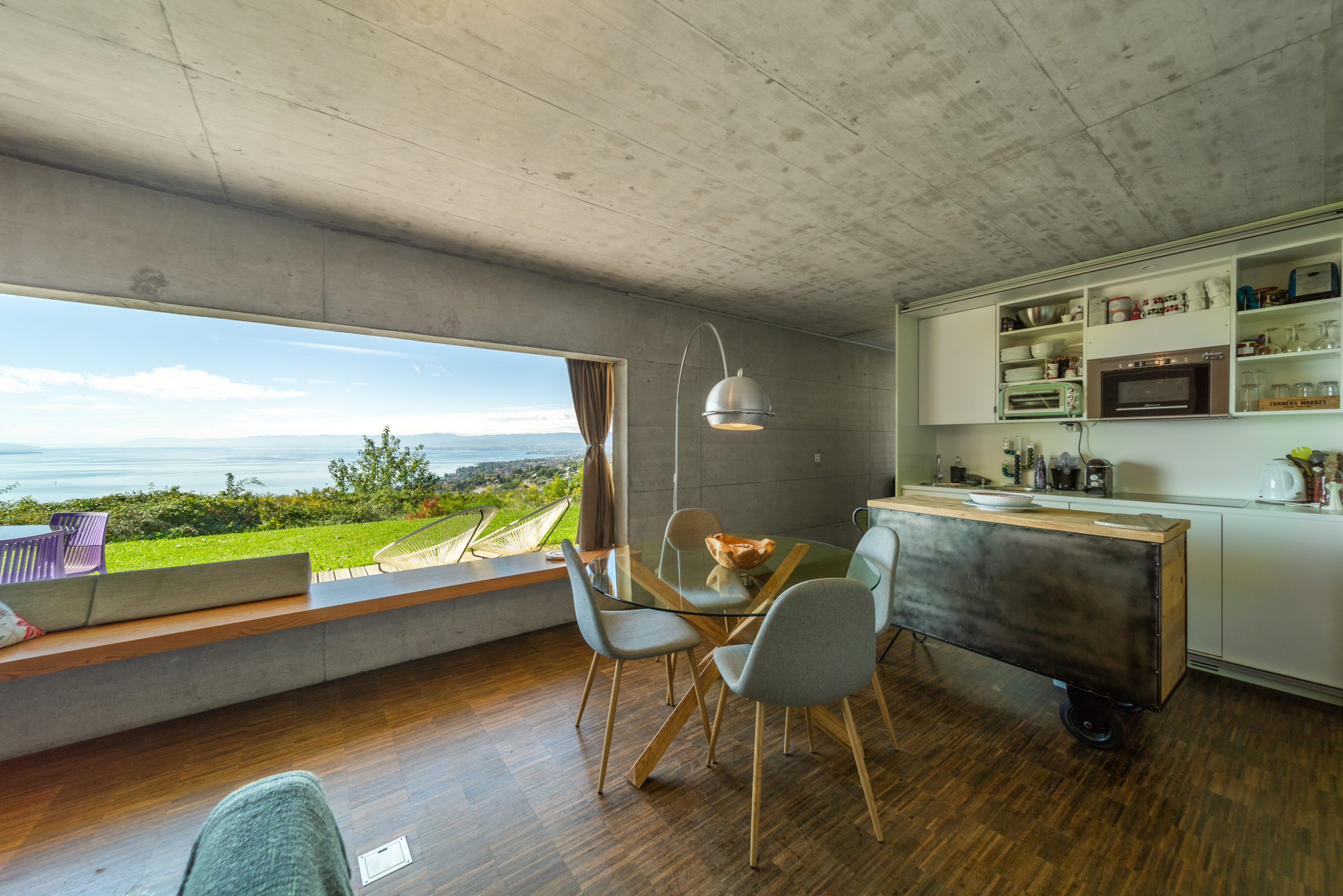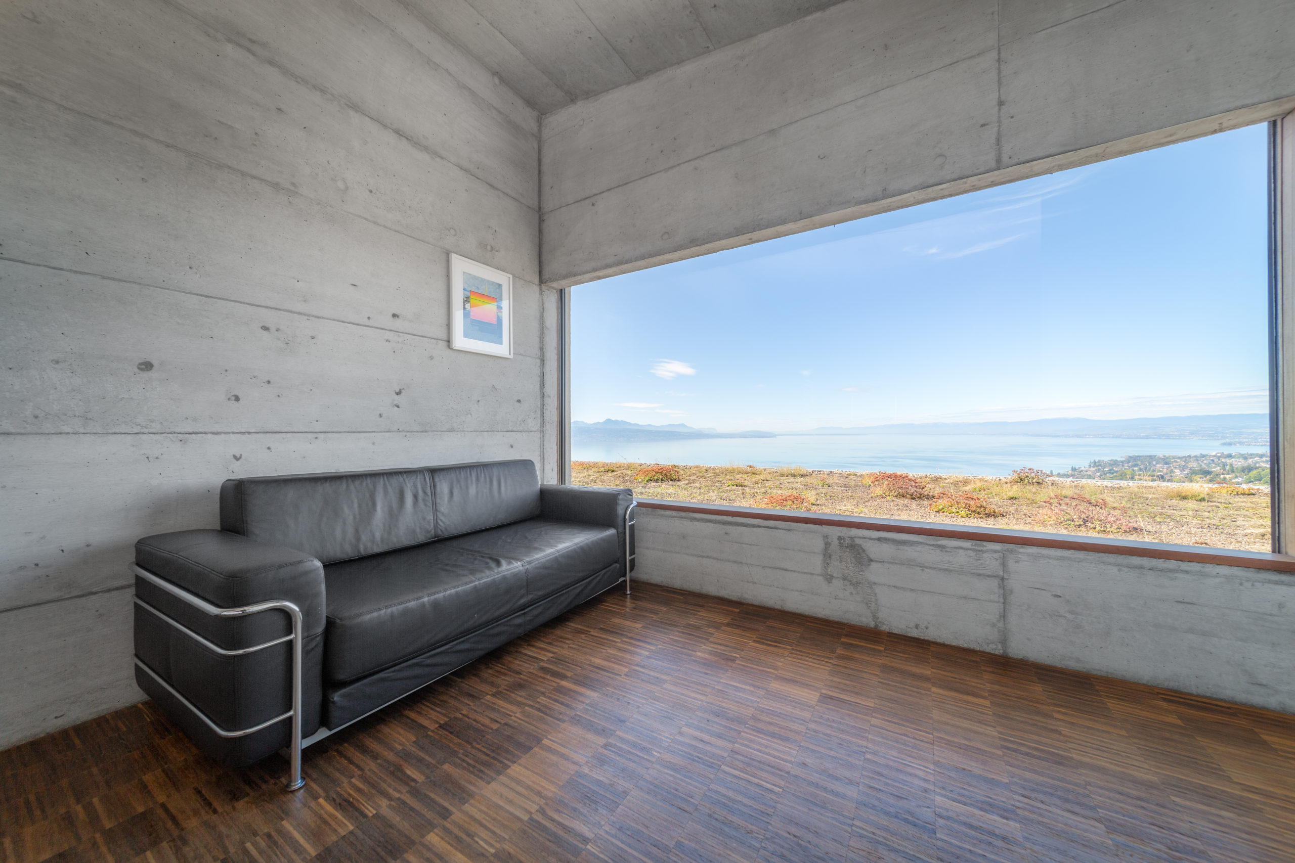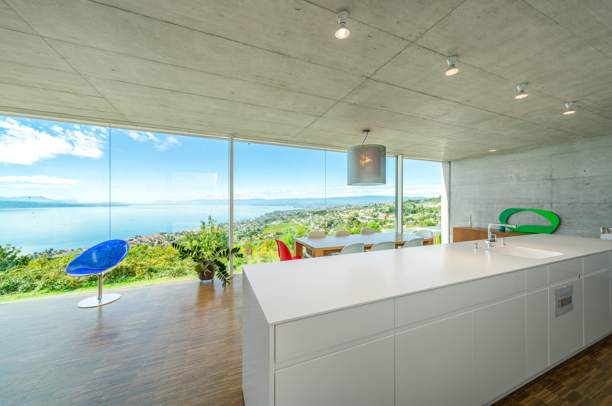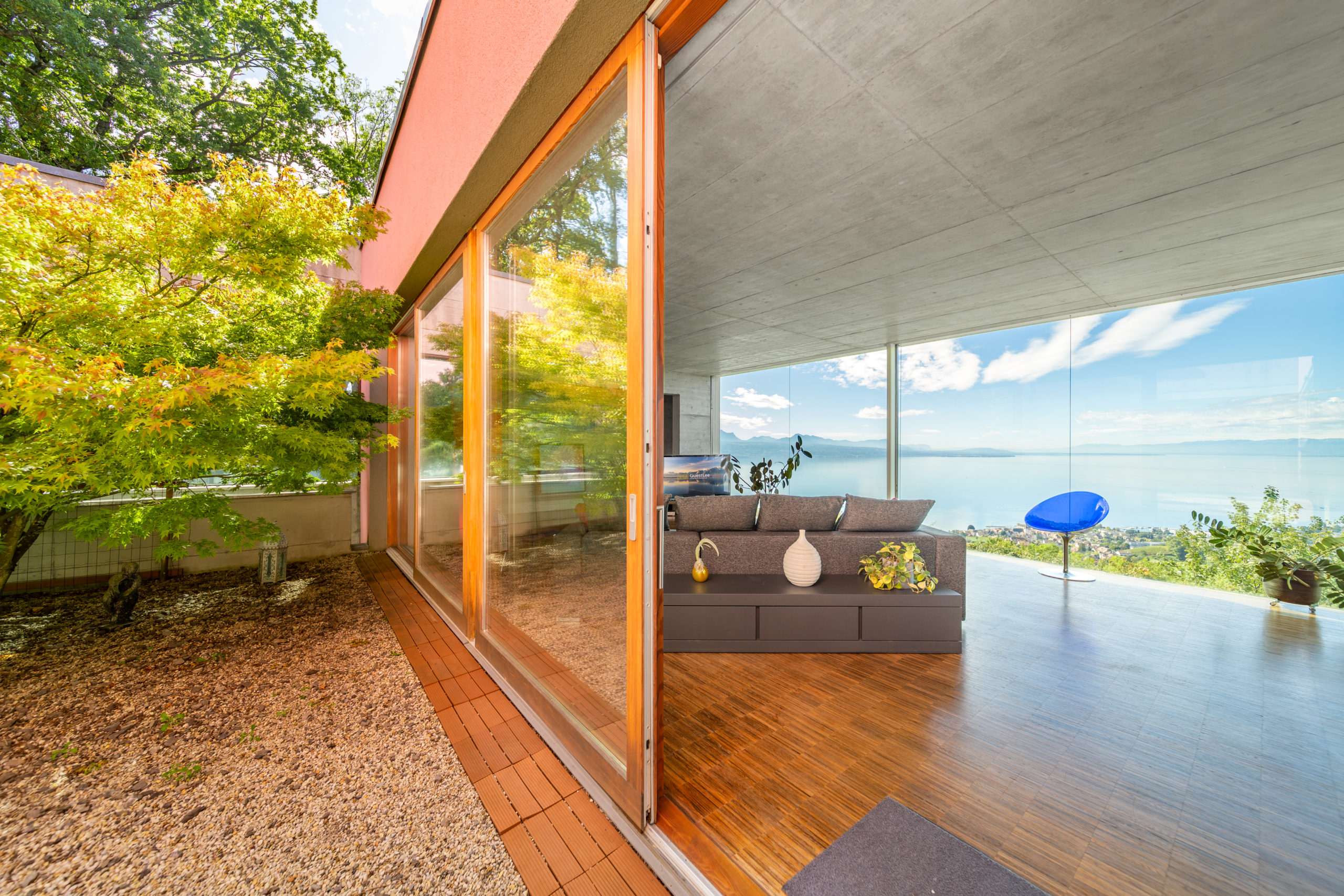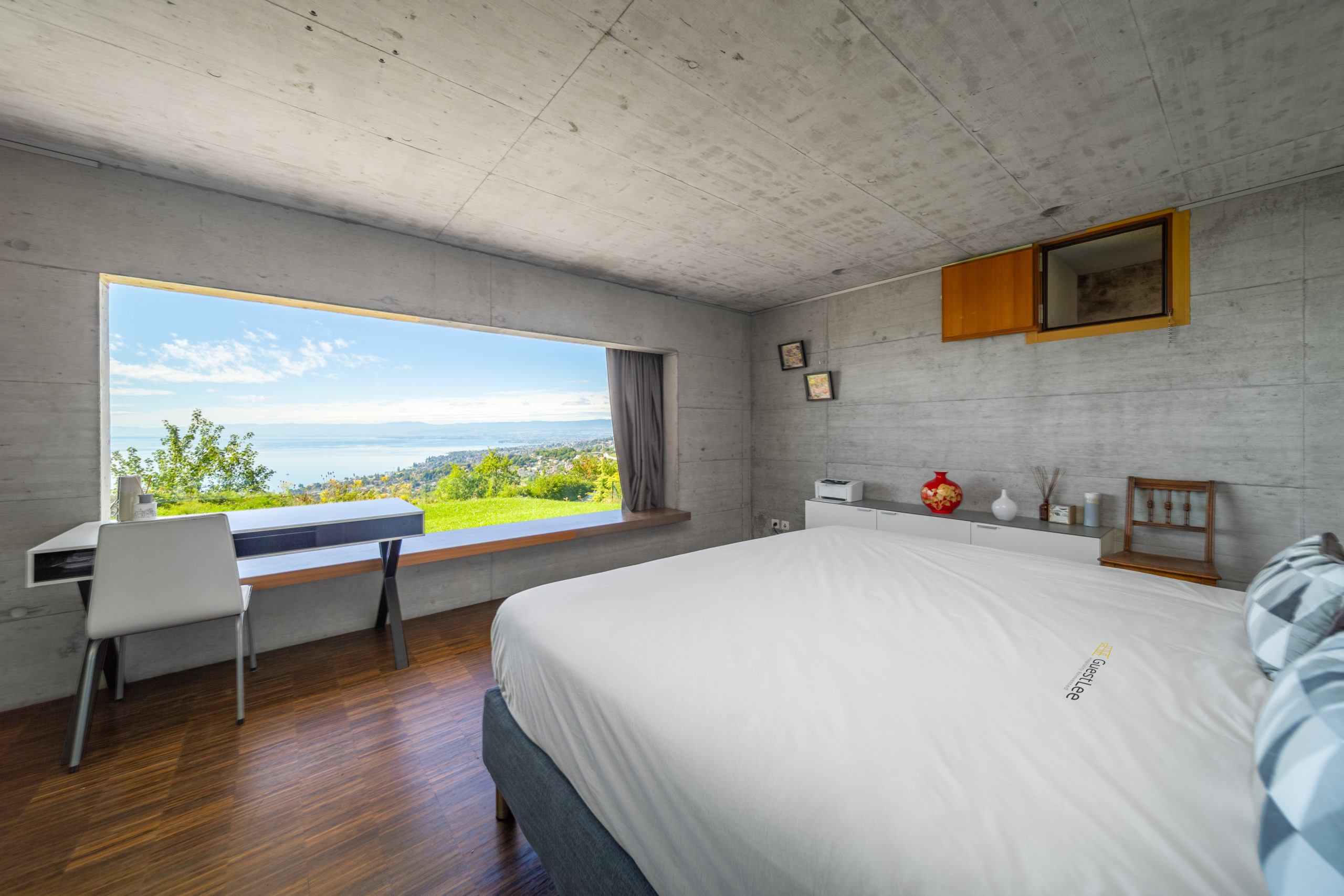 On the same floor, you have access to the large private garden with a panoramic view of the Lake and the Swiss Alps. There is also a garage that can accommodate between 3 and 5 vehicles.