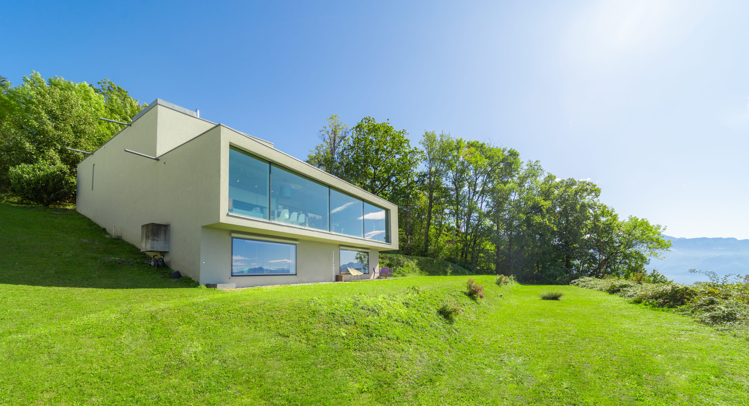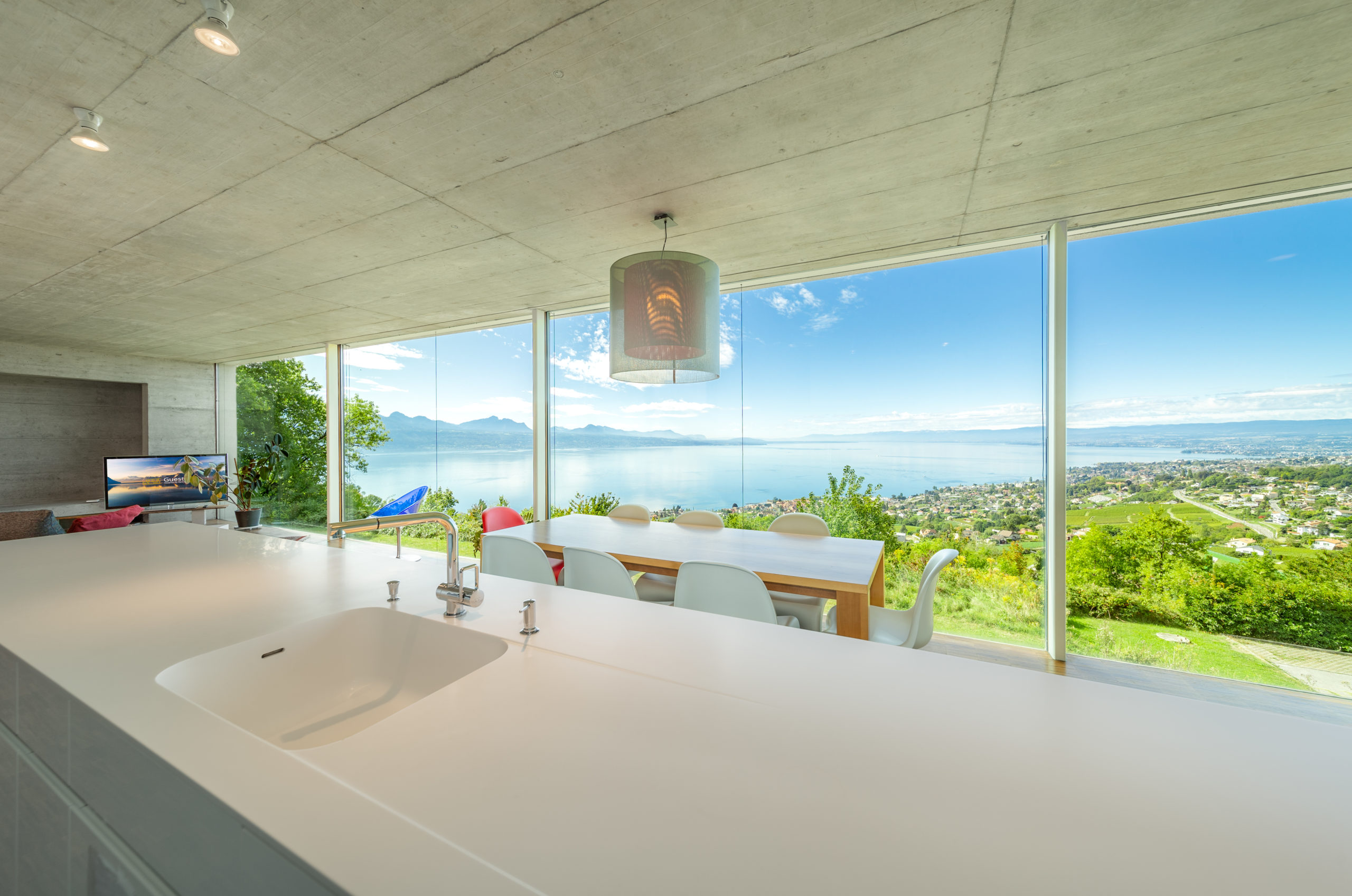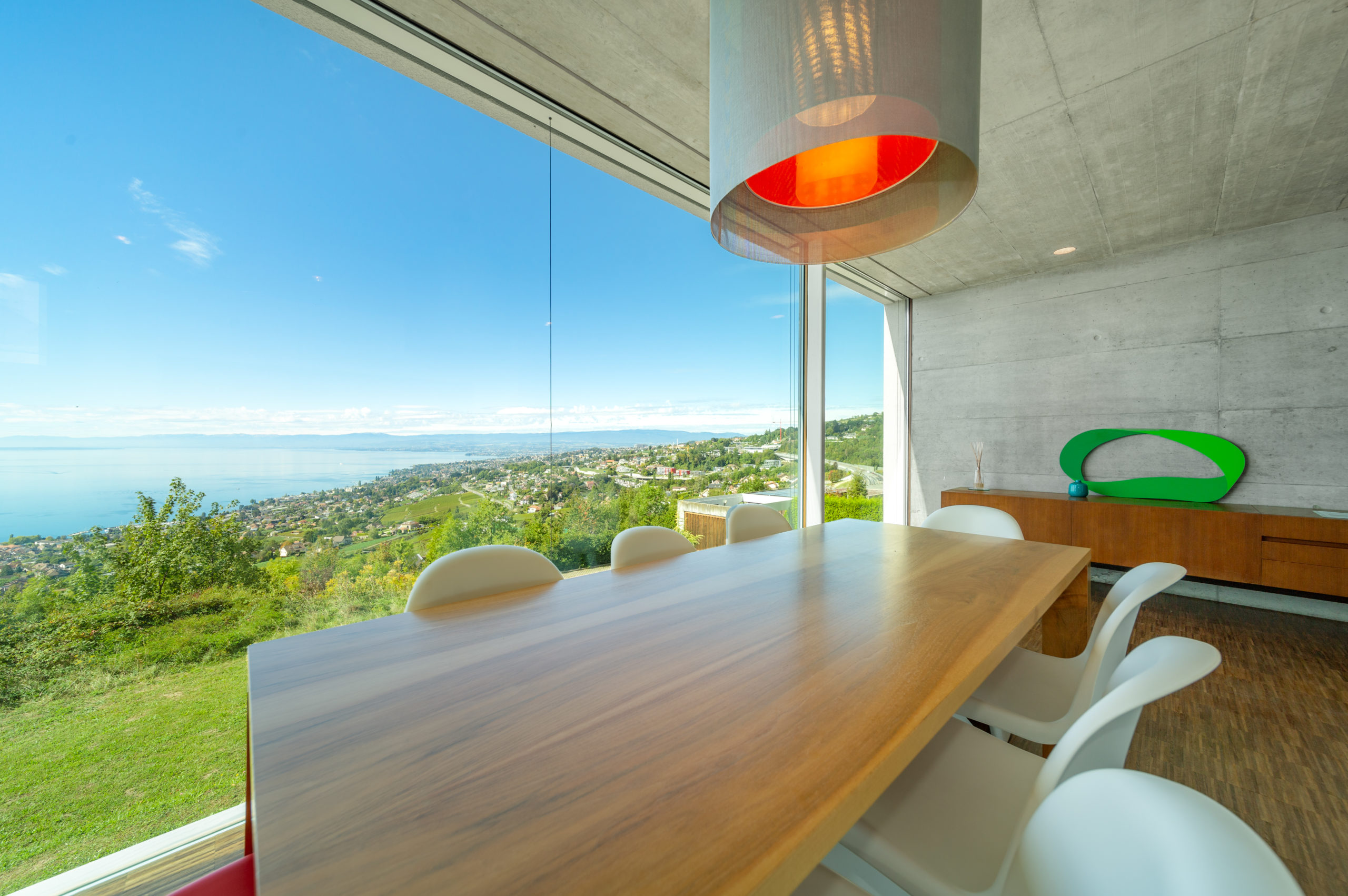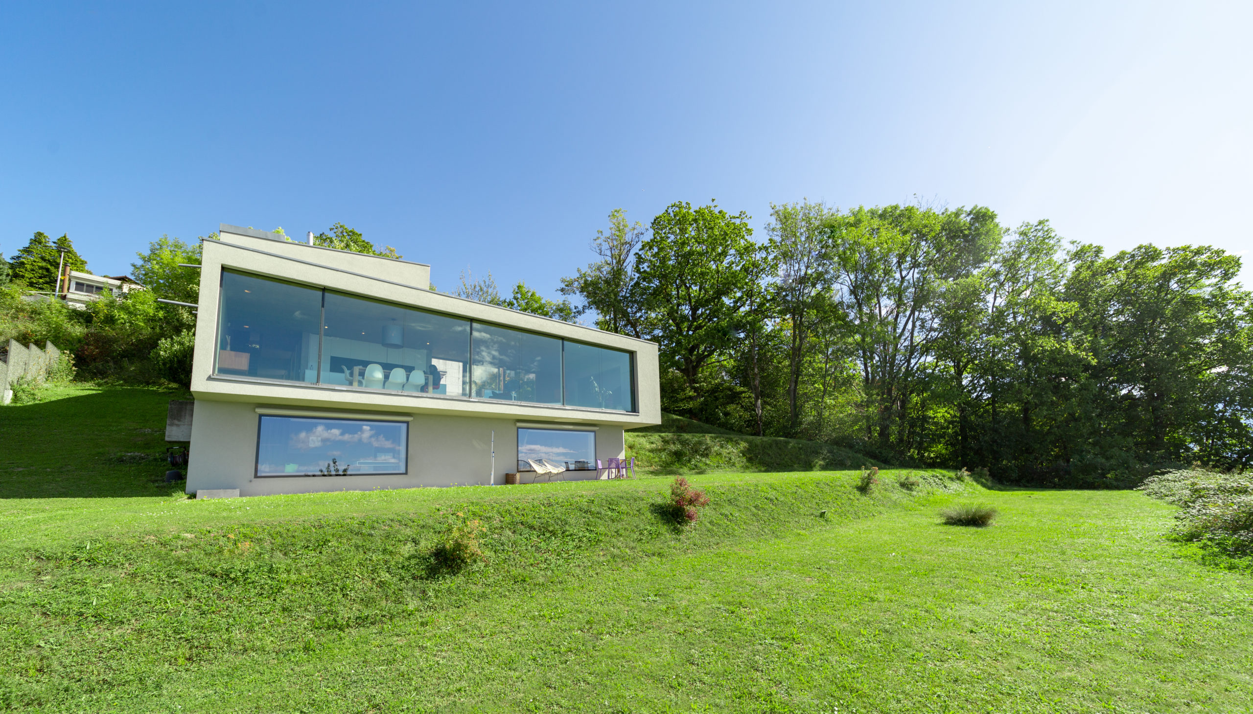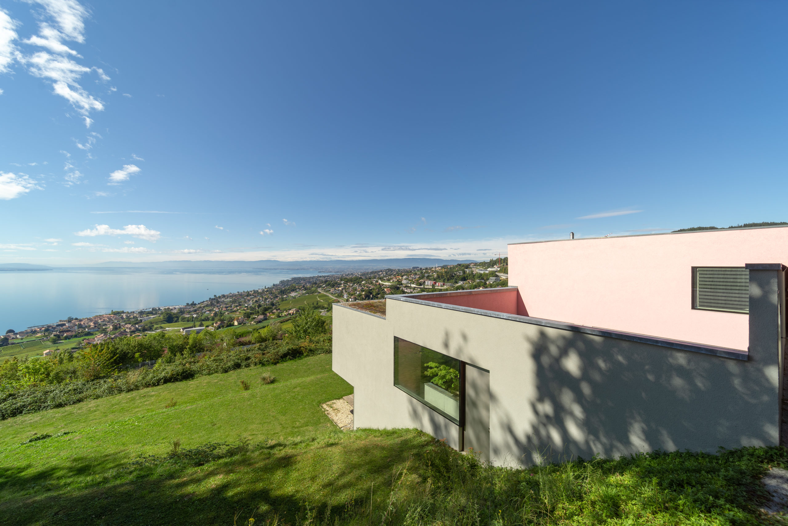Situated on a hillside surrounded by vineyards, the property offers one of the most beautiful views of the lake and the Alps.