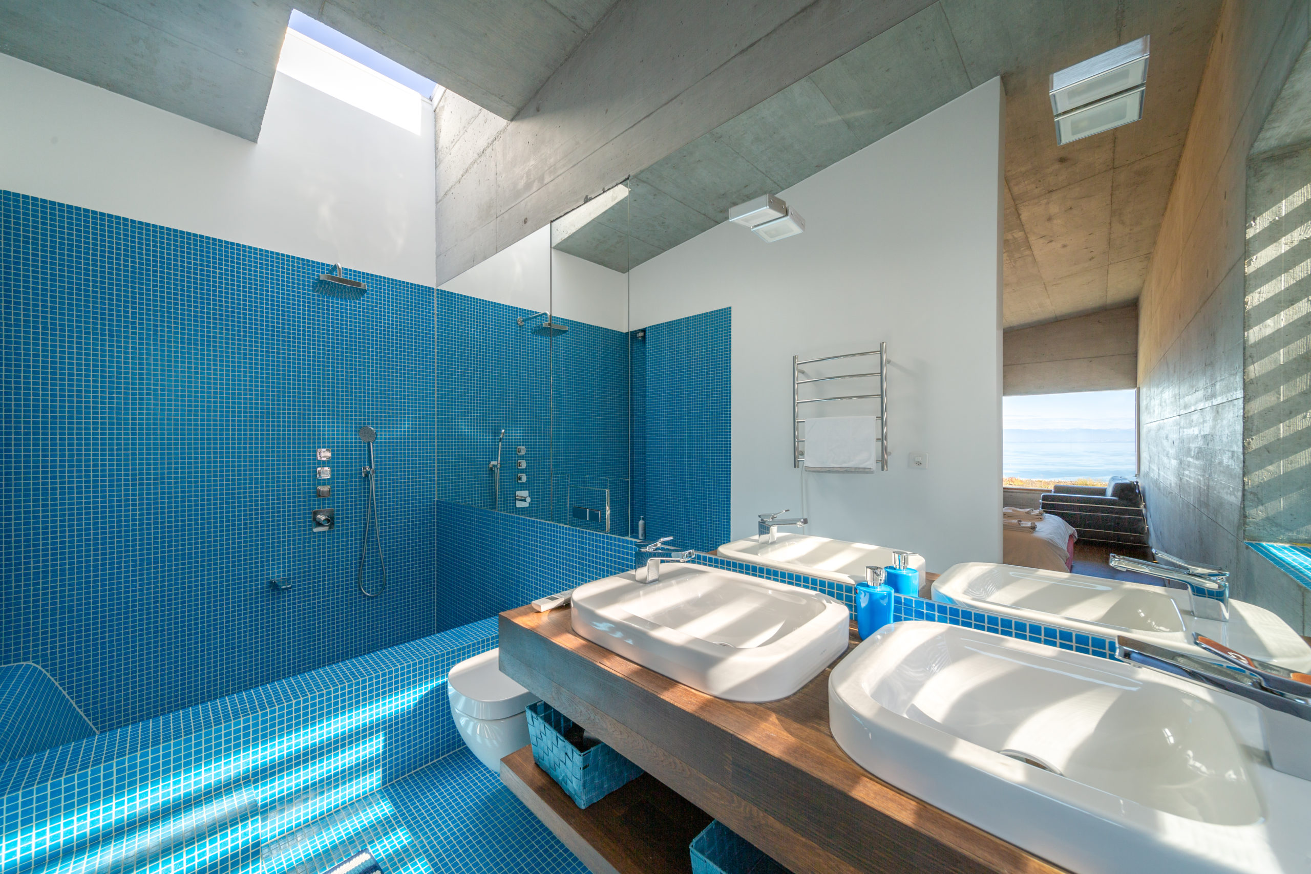 On the lower floor, you can access an entire apartment floor with the fourth ensuite bedroom with a kitchen and a living room.