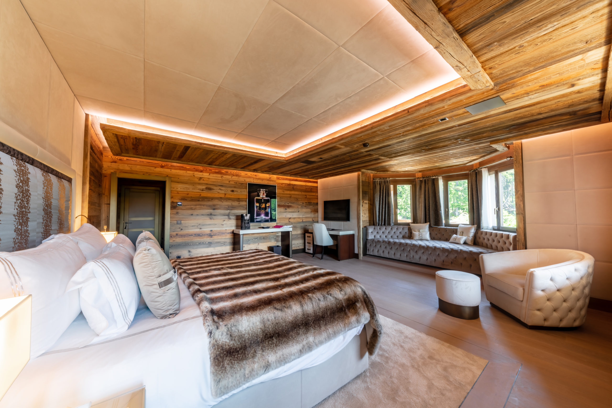 Ultima Crans-Montana features two exclusive chalets, available together or individually. Chalet One spans 3,850m², offering eight rooms, each with a dressing area, bathroom, and balcony, while children can enjoy two spacious dormitories. Chalet Two, covering 820m², includes six luxurious rooms, also equipped with private dressing areas, bathrooms, and balconies. Accommodating up to 38 guests, this luxury vacation rental in Switzerland is truly in a class of its own.
