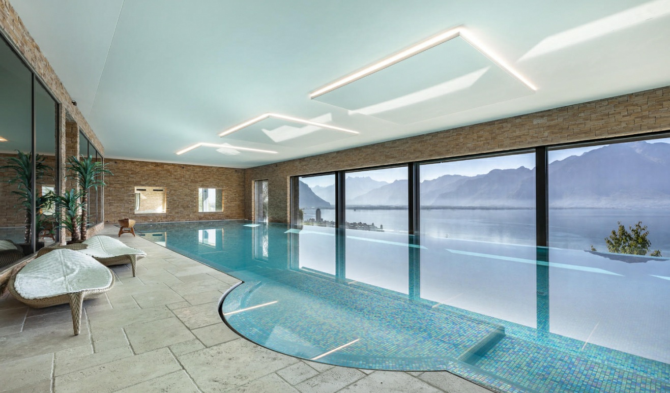 Designed with Feng Shui principles for optimal energy flow, light, and harmony, this villa provides an unparalleled experience of tranquility, wellness, and opulence. From its state-of-the-art wellness area with a 20-meter indoor infinity pool, jacuzzi, steam room, and spa to its yacht-inspired interiors, every aspect of this property has been meticulously crafted for those seeking the ultimate luxury lifestyle in Montreux.