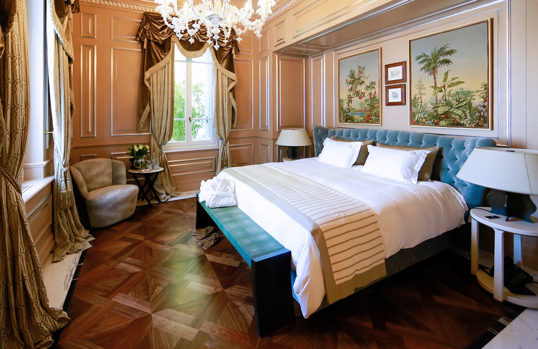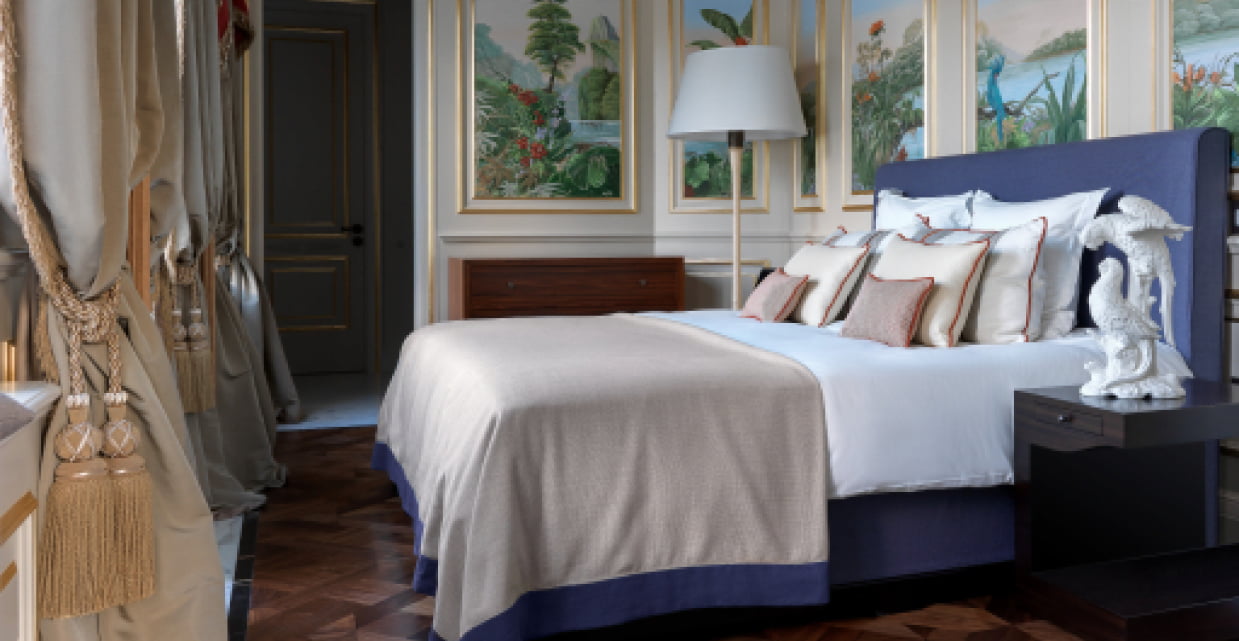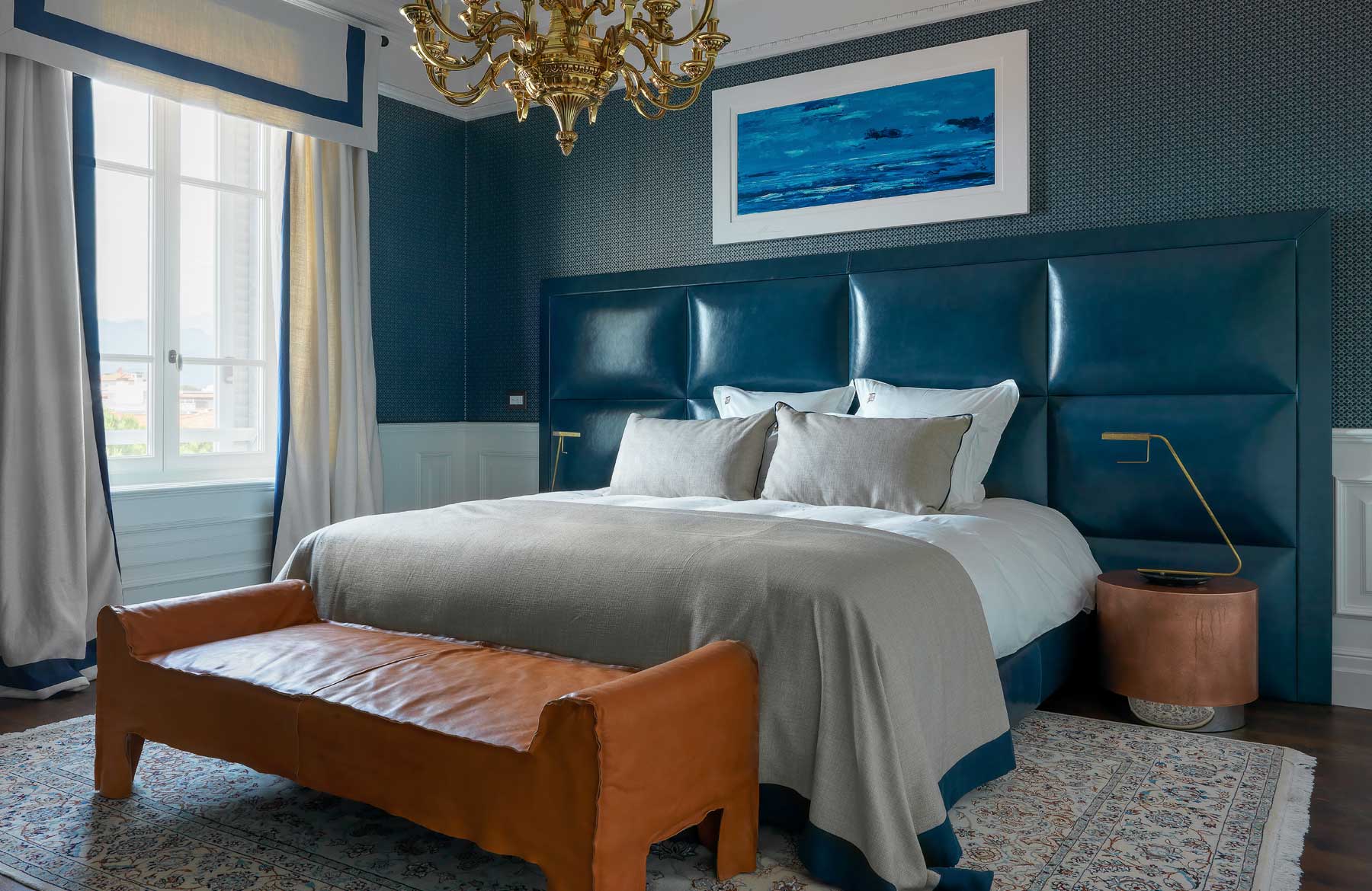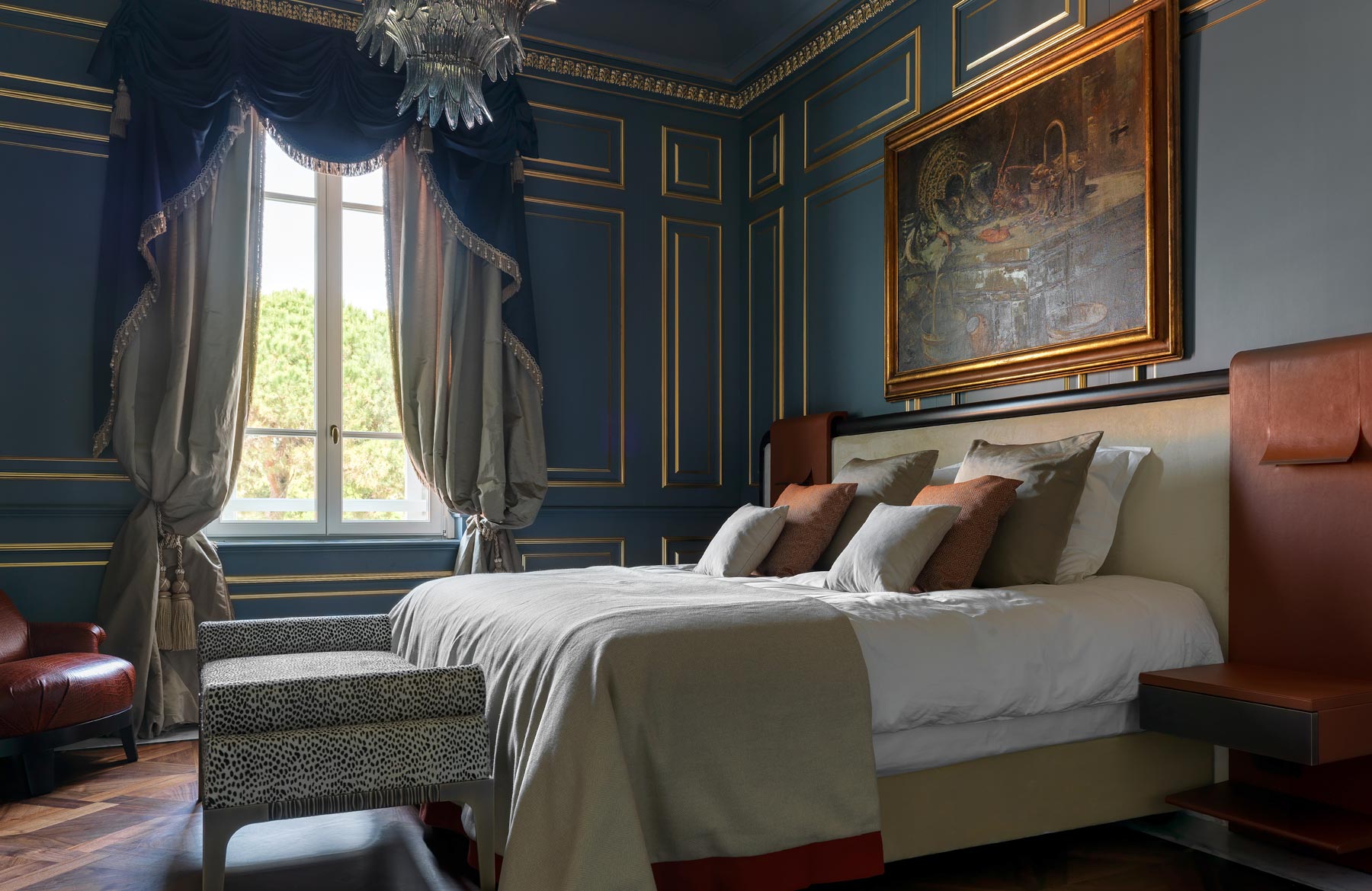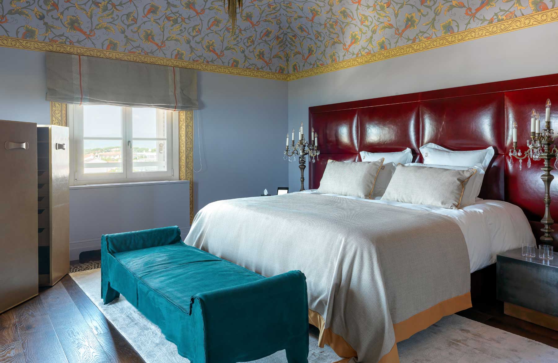 L’étage supérieur accueille les chambres et une terrasse extérieure avec jardin, des transats, des fauteuils et un bar, offrant l’endroit idéal pour savourer un verre de vin de la collection personnelle, « La Datcha ». Le palais ne peut être loué que dans son intégralité, offrant un refuge intime et privé pouvant accueillir jusqu’à 20 invités.