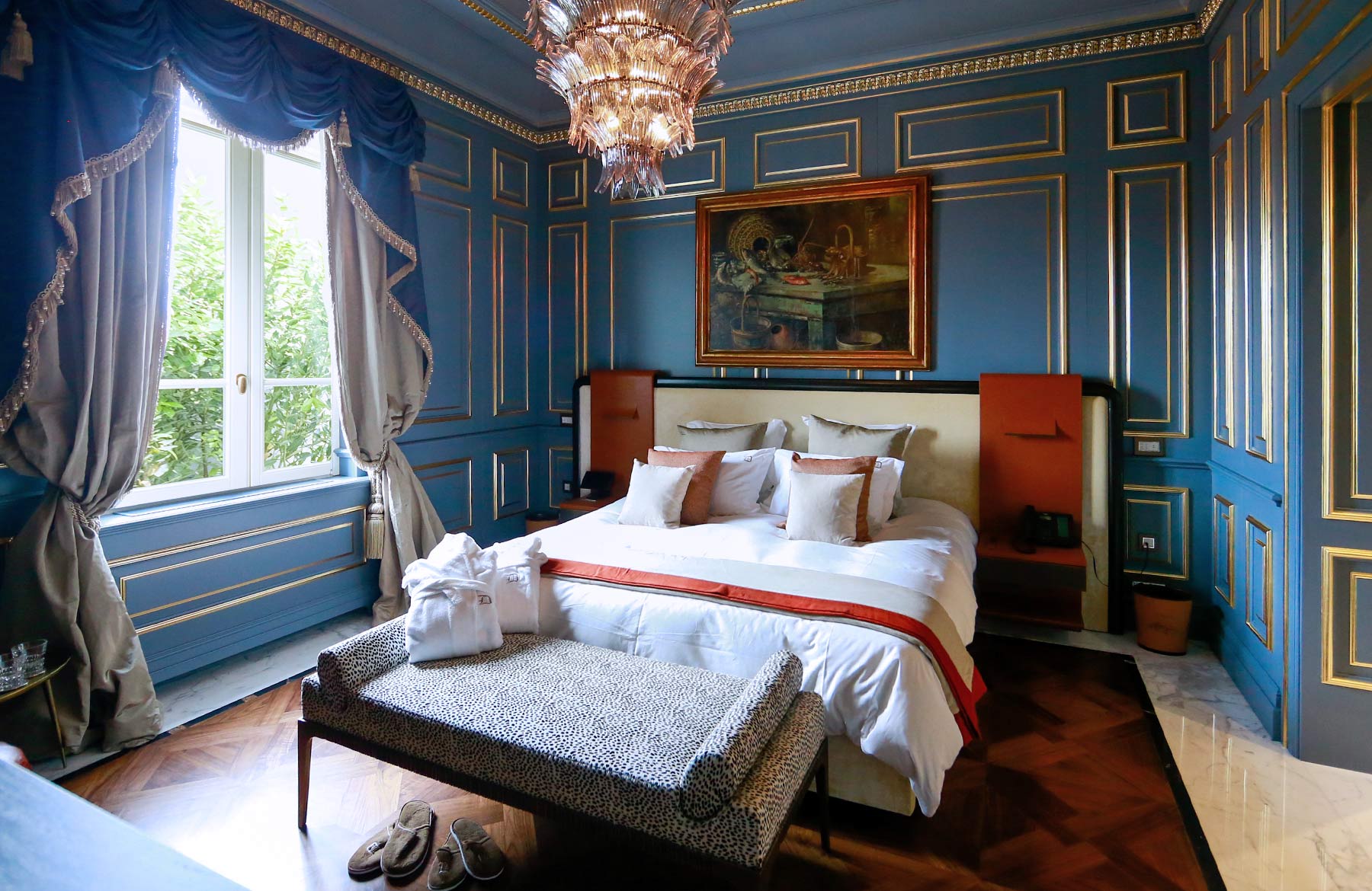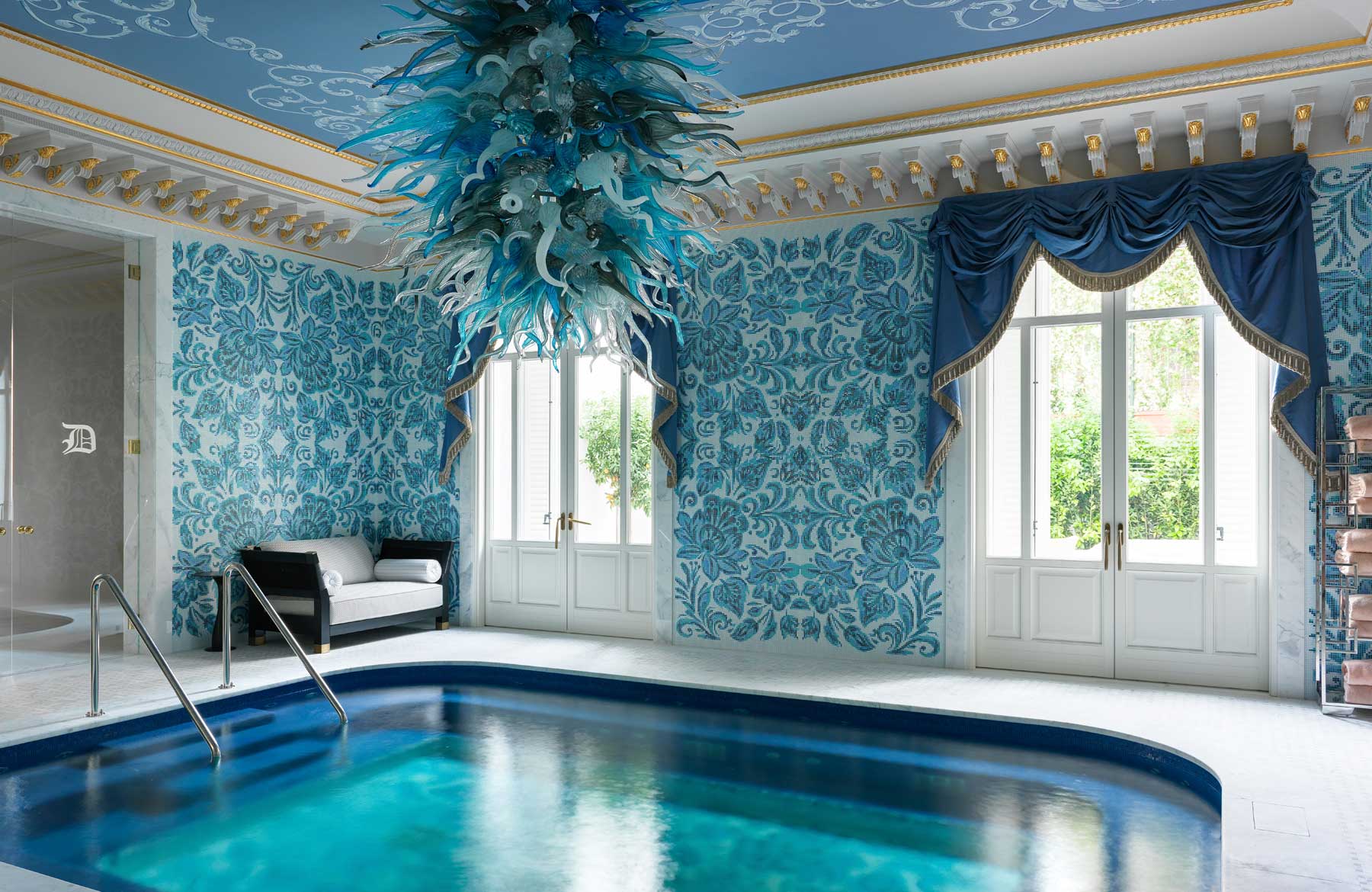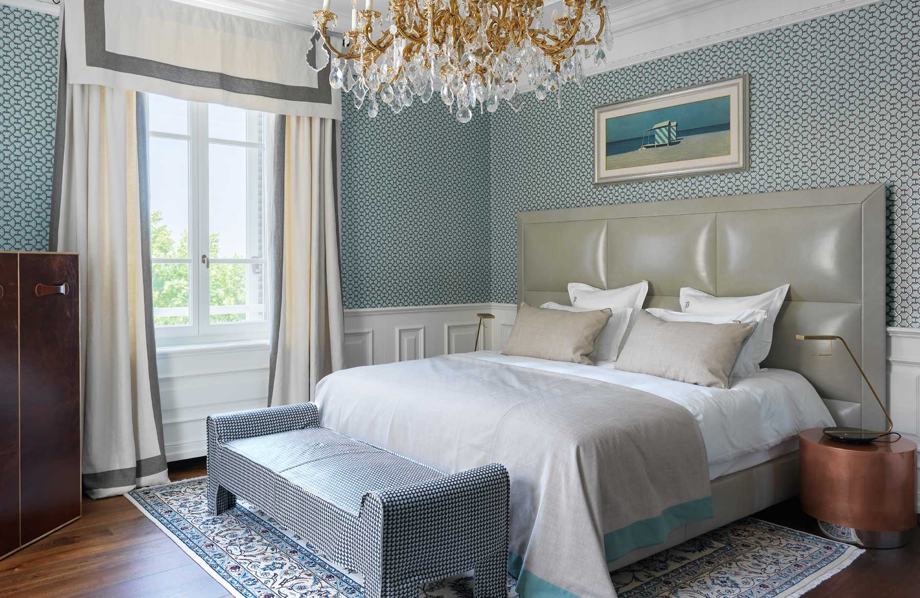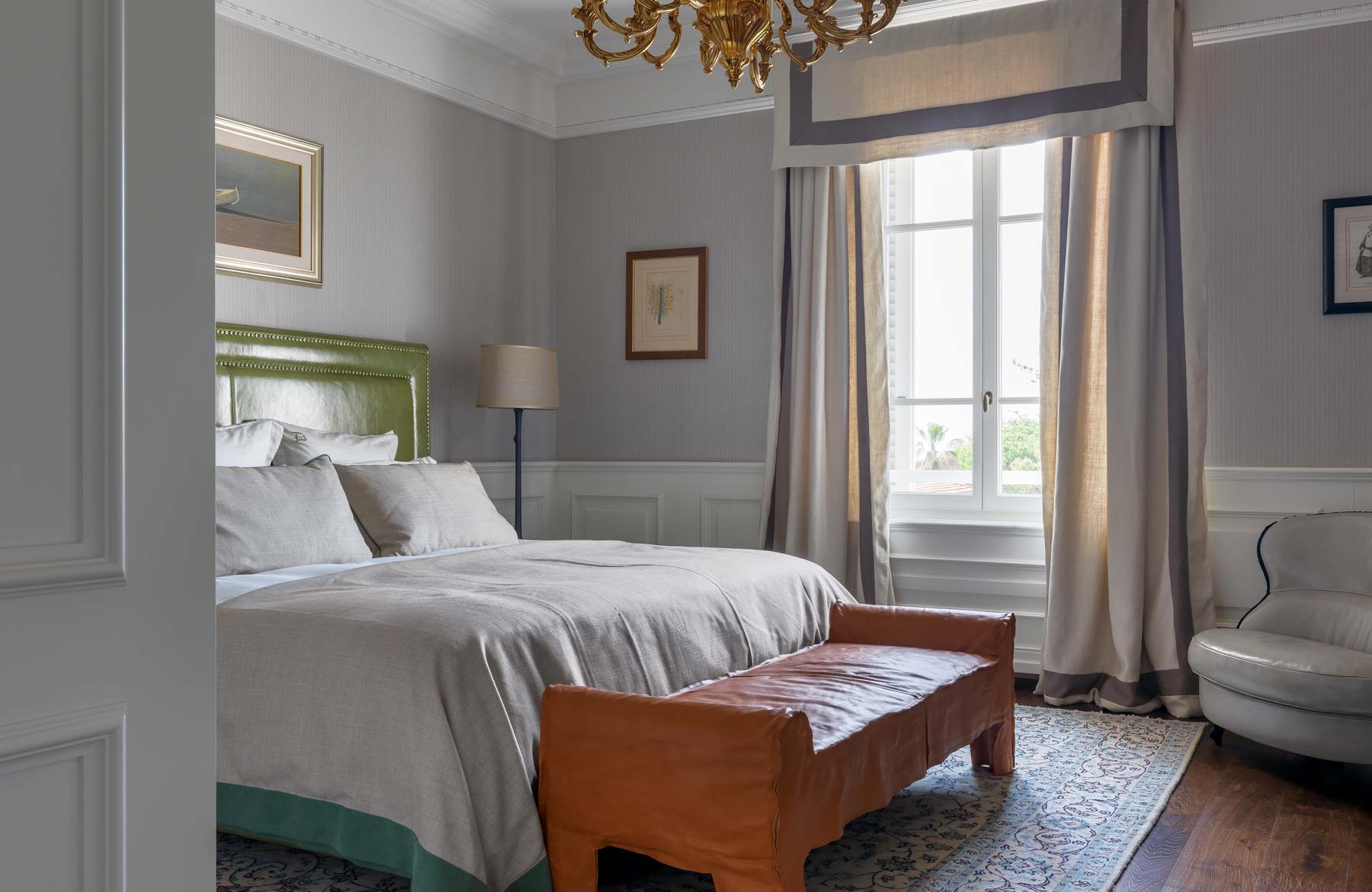 L’étage supérieur accueille les chambres et une terrasse extérieure avec jardin, des transats, des fauteuils et un bar, offrant l’endroit idéal pour savourer un verre de vin de la collection personnelle, « La Datcha ». Le palais ne peut être loué que dans son intégralité, offrant un refuge intime et privé pouvant accueillir jusqu’à 20 invités.