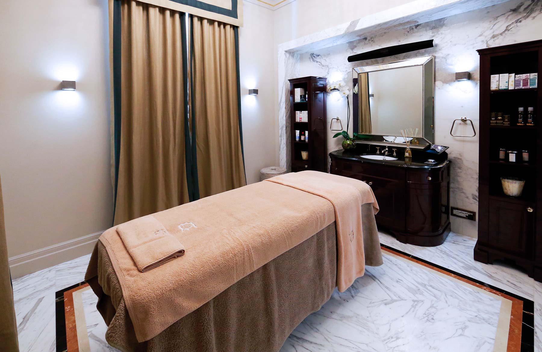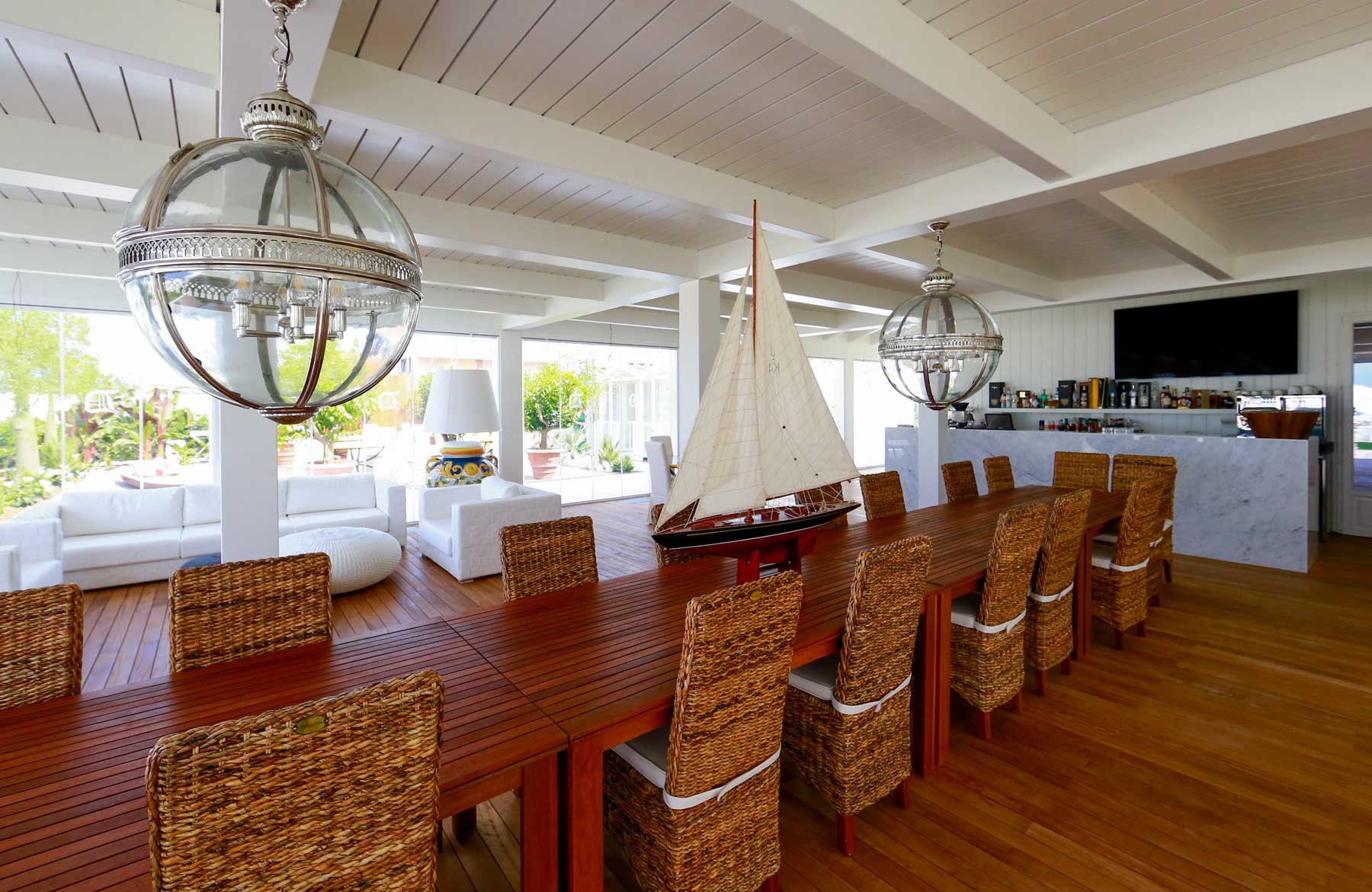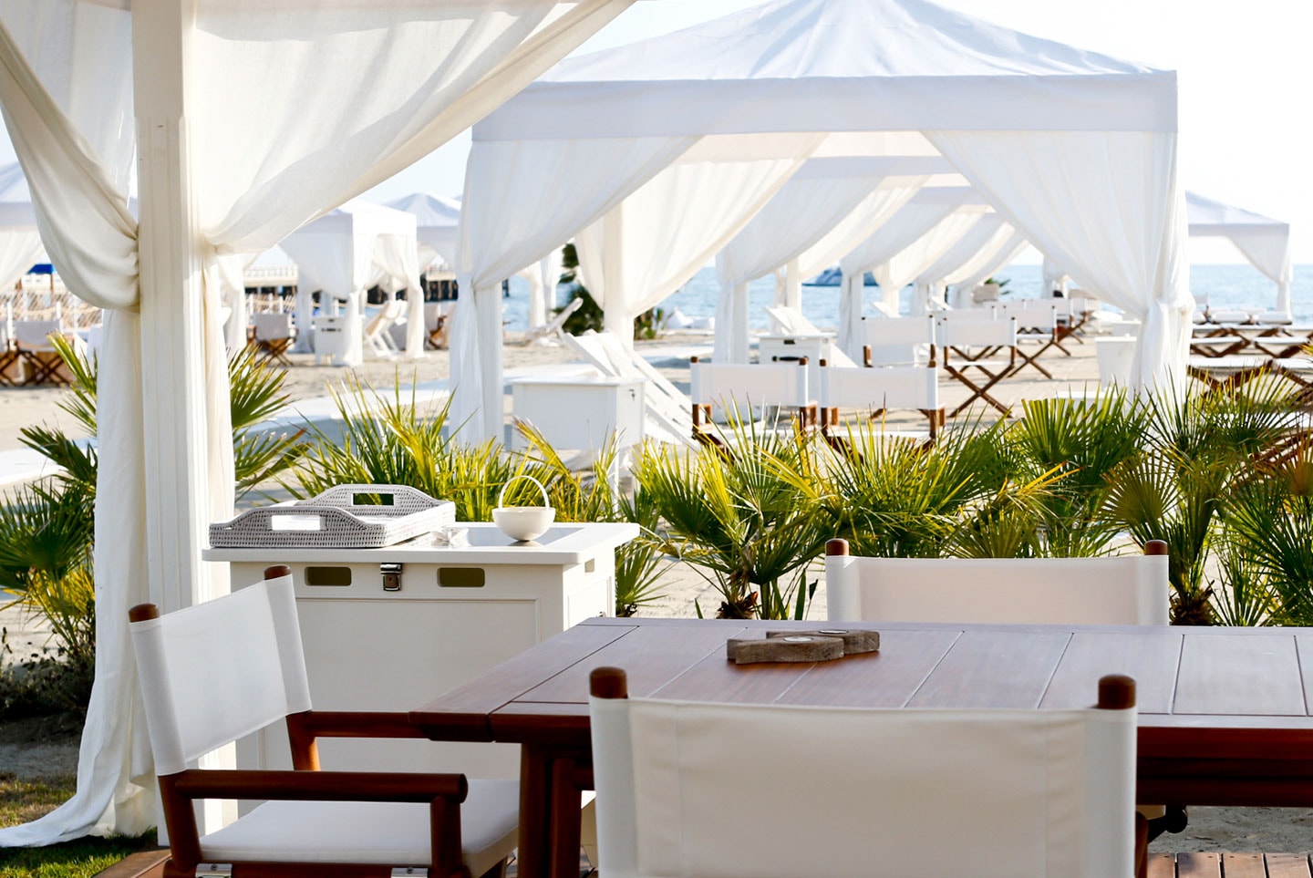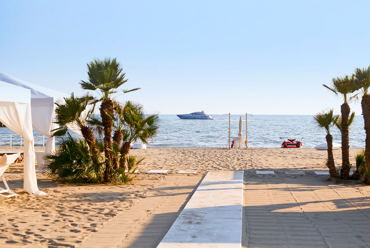 L’étage supérieur accueille les chambres et une terrasse extérieure avec jardin, des transats, des fauteuils et un bar, offrant l’endroit idéal pour savourer un verre de vin de la collection personnelle, « La Datcha ». Le palais ne peut être loué que dans son intégralité, offrant un refuge intime et privé pouvant accueillir jusqu’à 20 invités.