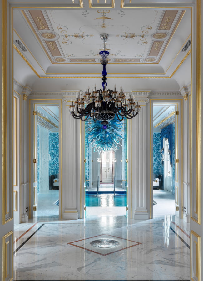 S’étendant sur quatre étages, le palais offre un espace vaste et des équipements luxueux. Le rez-de-chaussée comprend deux salons, une salle à manger, un espace cocktail, un bar, deux espaces de travail, un cinéma et un centre spa équipé d’une piscine, d’un sauna, d’un bain turc et d’une terrasse pour bronzer. Chaque recoin de cette villa de luxe en location de vacances est conçu pour offrir un confort et une détente absolus.