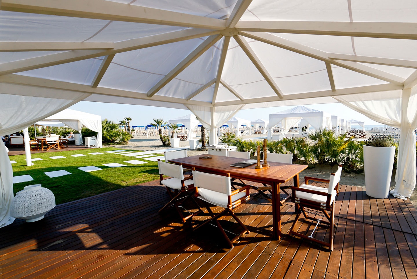 La cuisine méditerranéenne est au cœur de l’expérience de cette location de vacances de luxe, proposant des fruits de mer frais, du poisson, des volailles, ainsi que des fruits et légumes de saison. La propriété comprend également une plage privée clôturée, une découverte rare à Forte dei Marmi, et une piscine de 24 mètres carrés. Les clients peuvent profiter d’un jacuzzi rafraîchissant, de promenades dans le jardin en bord de mer, de cours de yoga au bord de la piscine, ou de boissons fraîches et de snacks au bar. Cette villa de luxe en location de vacances offre le meilleur de la détente et du luxe au bord de la mer.