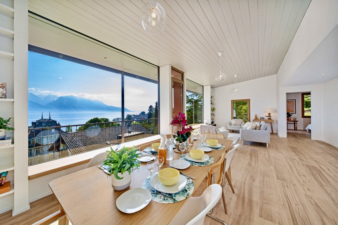Welcome to the brand new Villa Rose, situated in the heart of Montreux. Nestled in an exclusive neighborhood, this remarkable property features breathtaking views of Lake Geneva and the Swiss Alps, spread elegantly across three impressive floors. Therefore, it’s ideal for families or groups seeking a luxurious retreat. Villa Rose offers both elegance and comfort for a truly memorable stay.