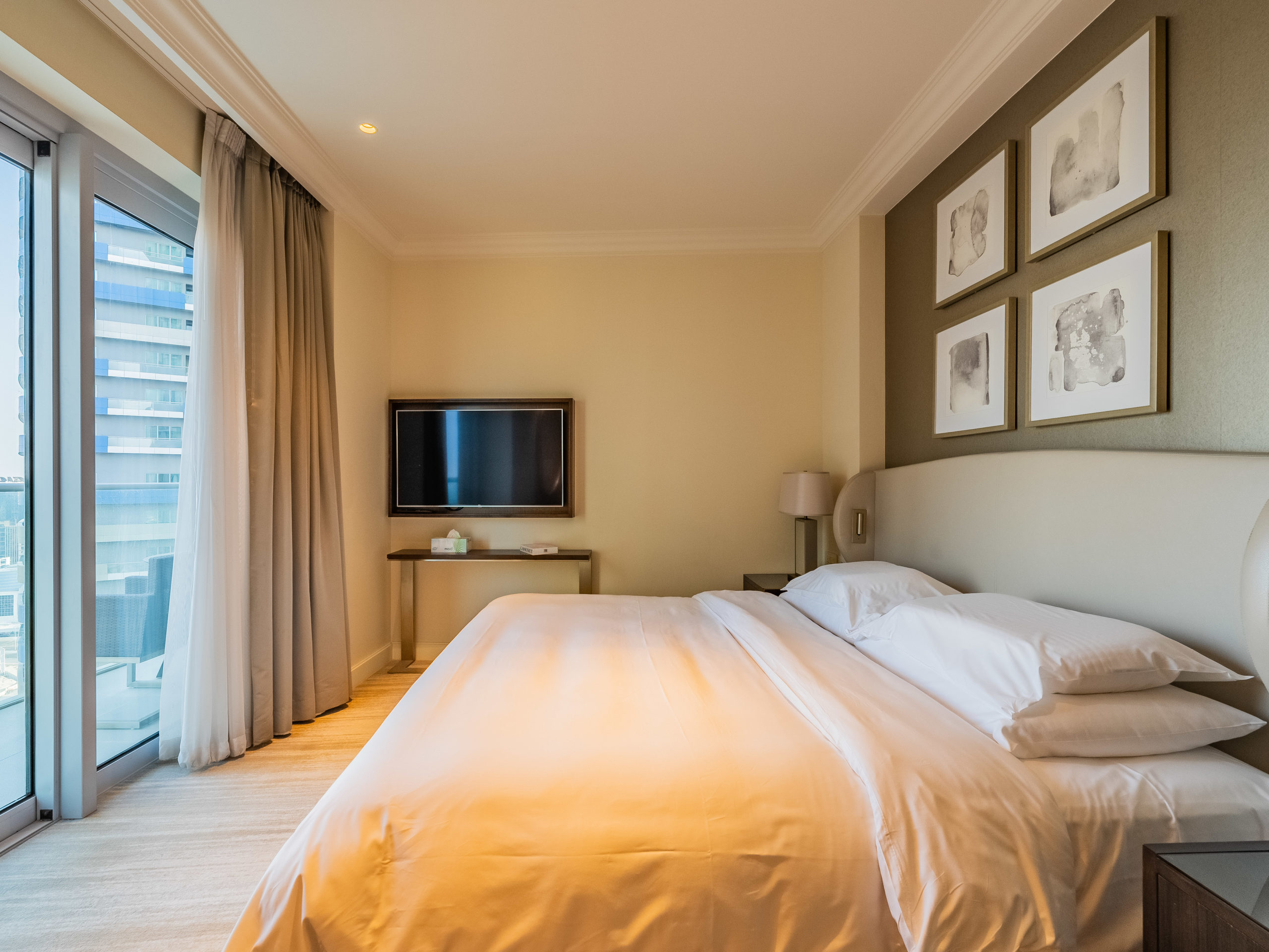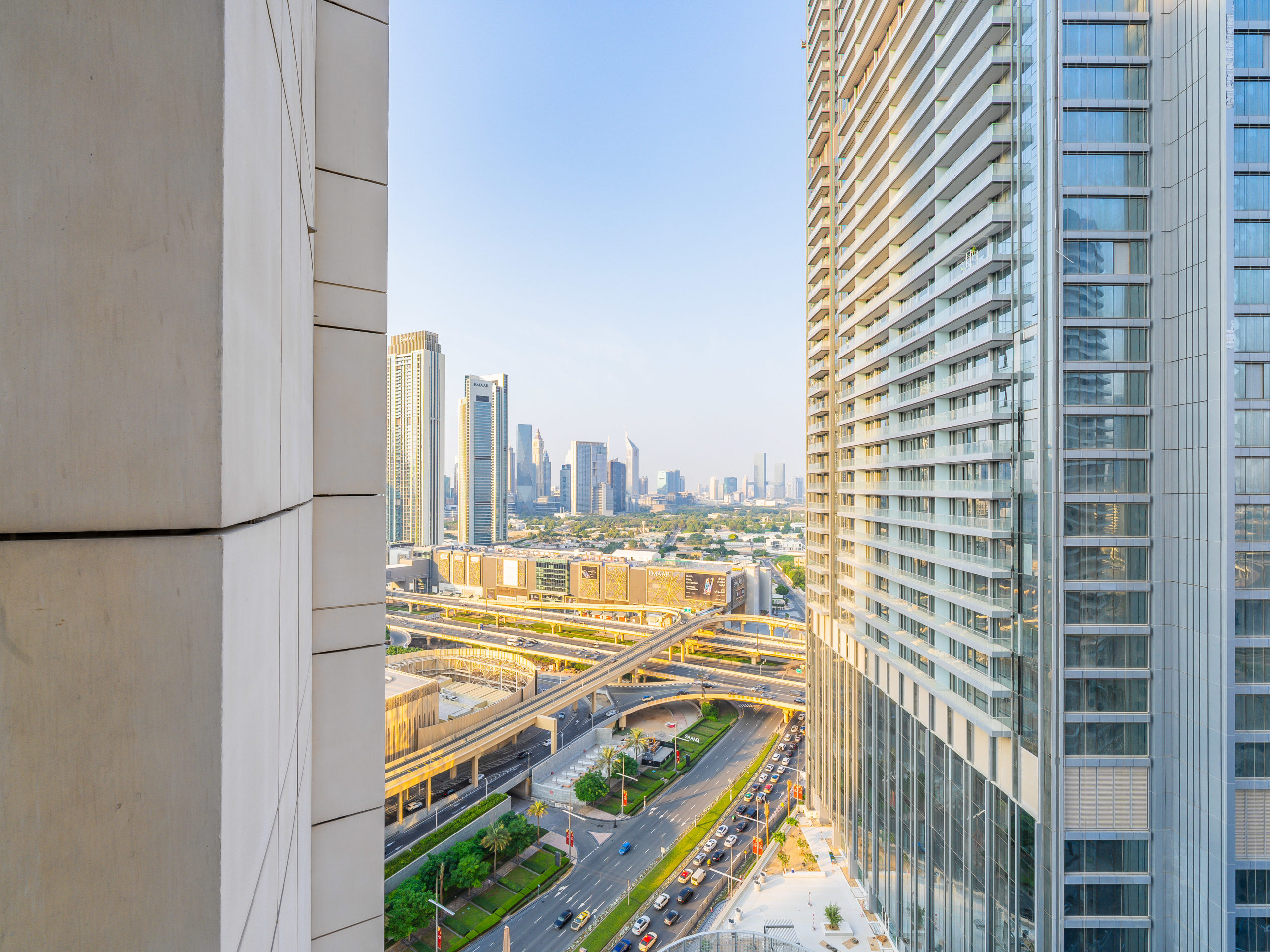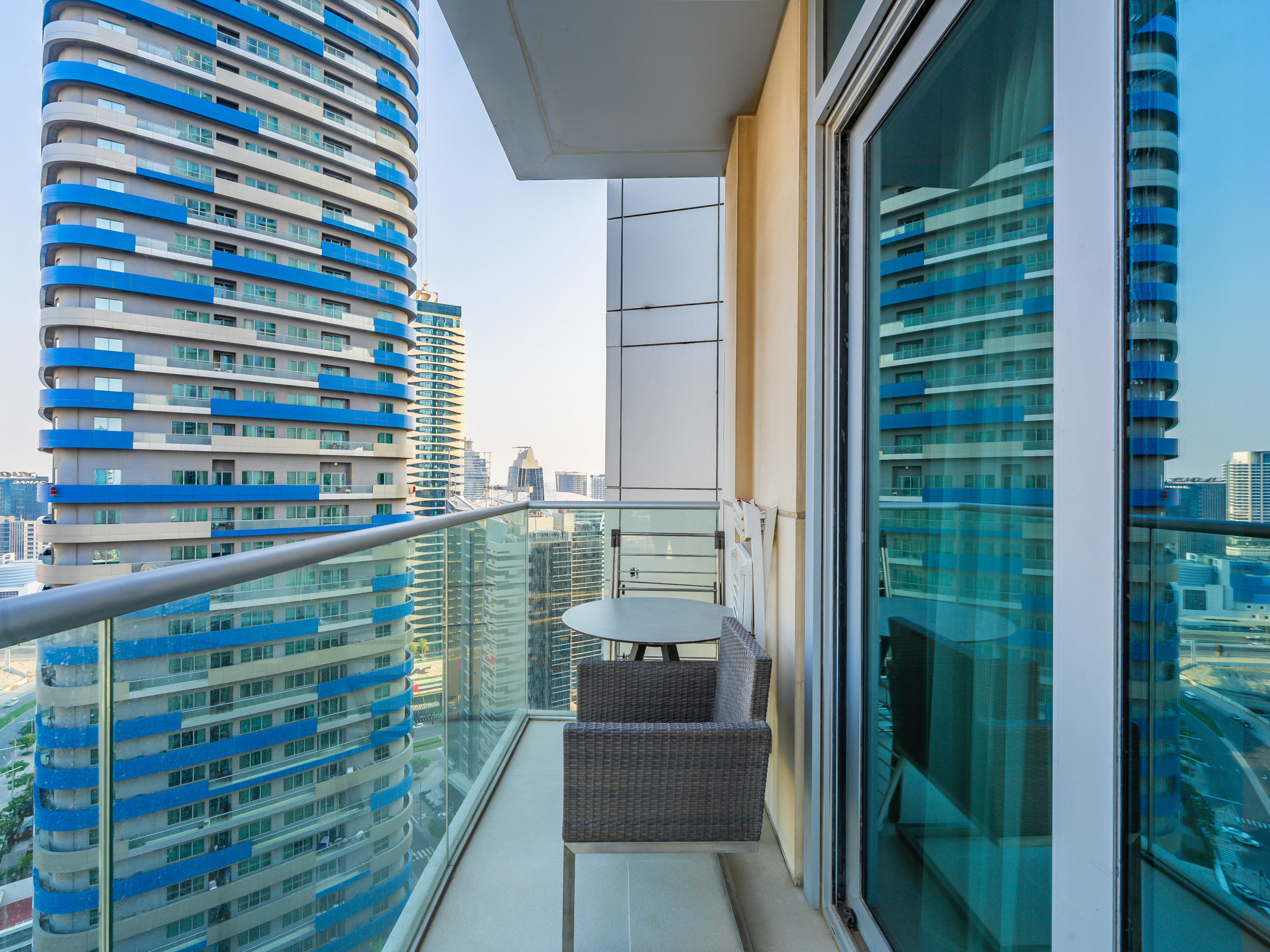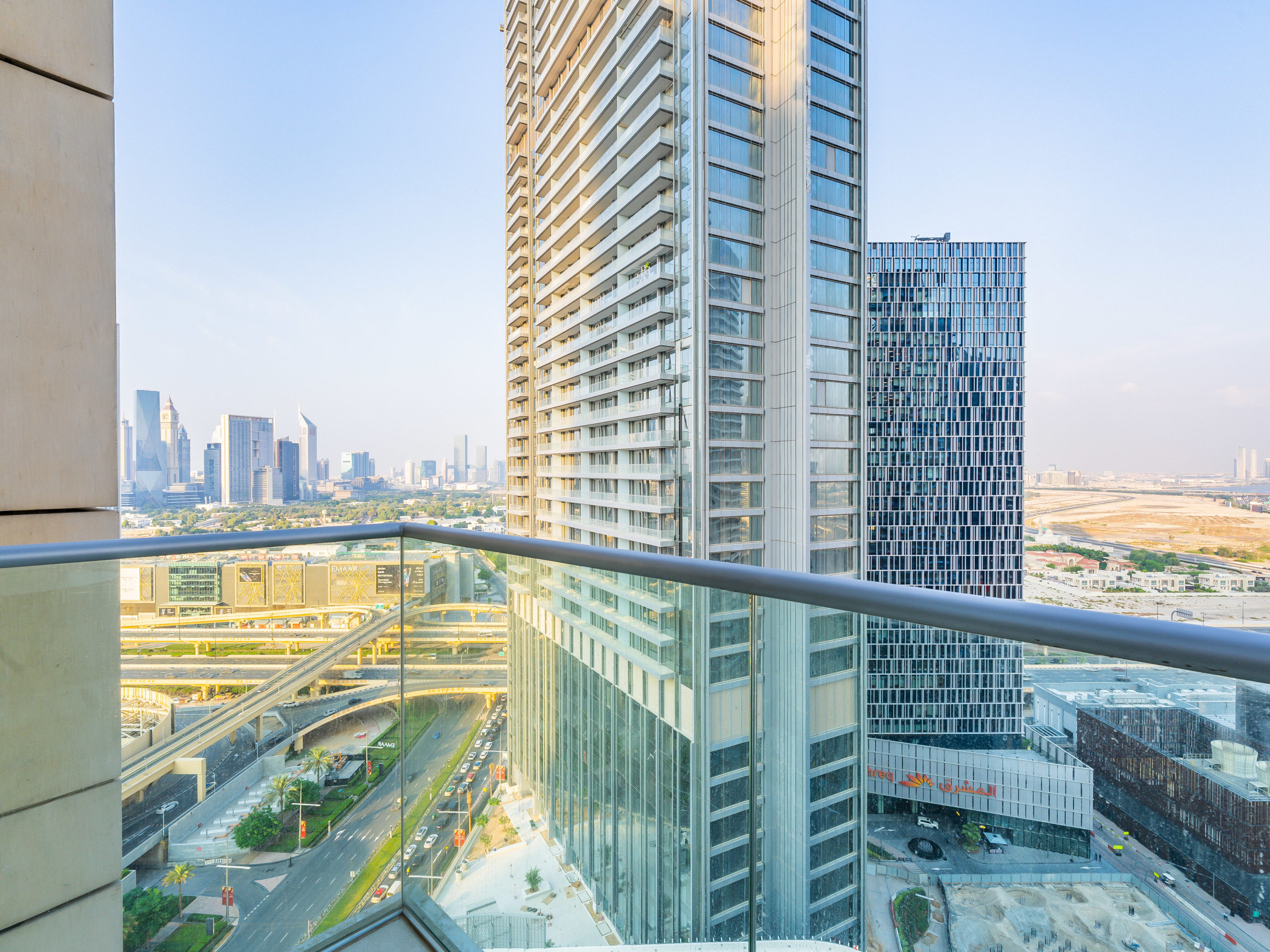 Enjoy panoramic views of Dubai’s skyline, the Burj Khalifa, and the Dubai Fountain from your apartment.