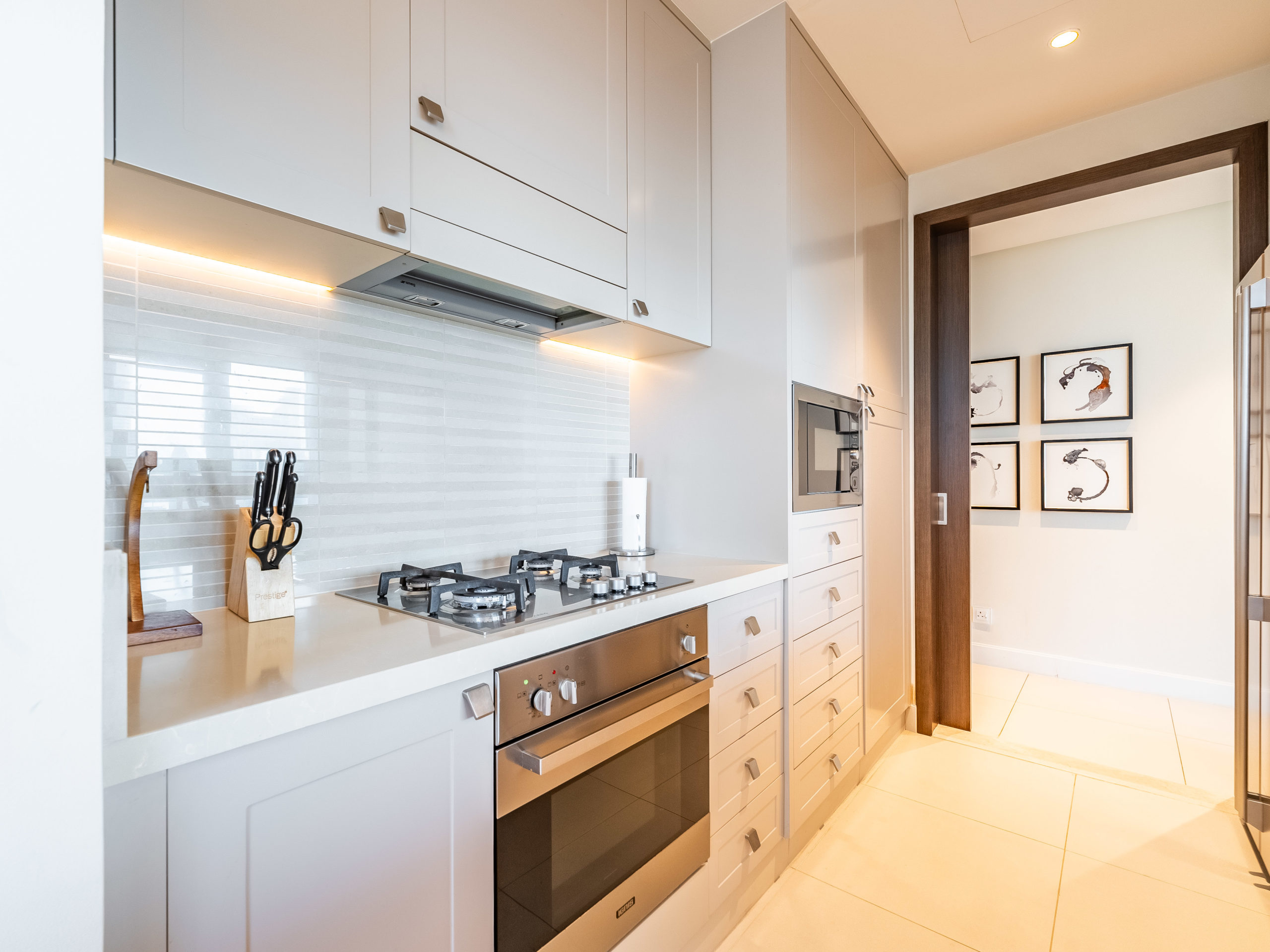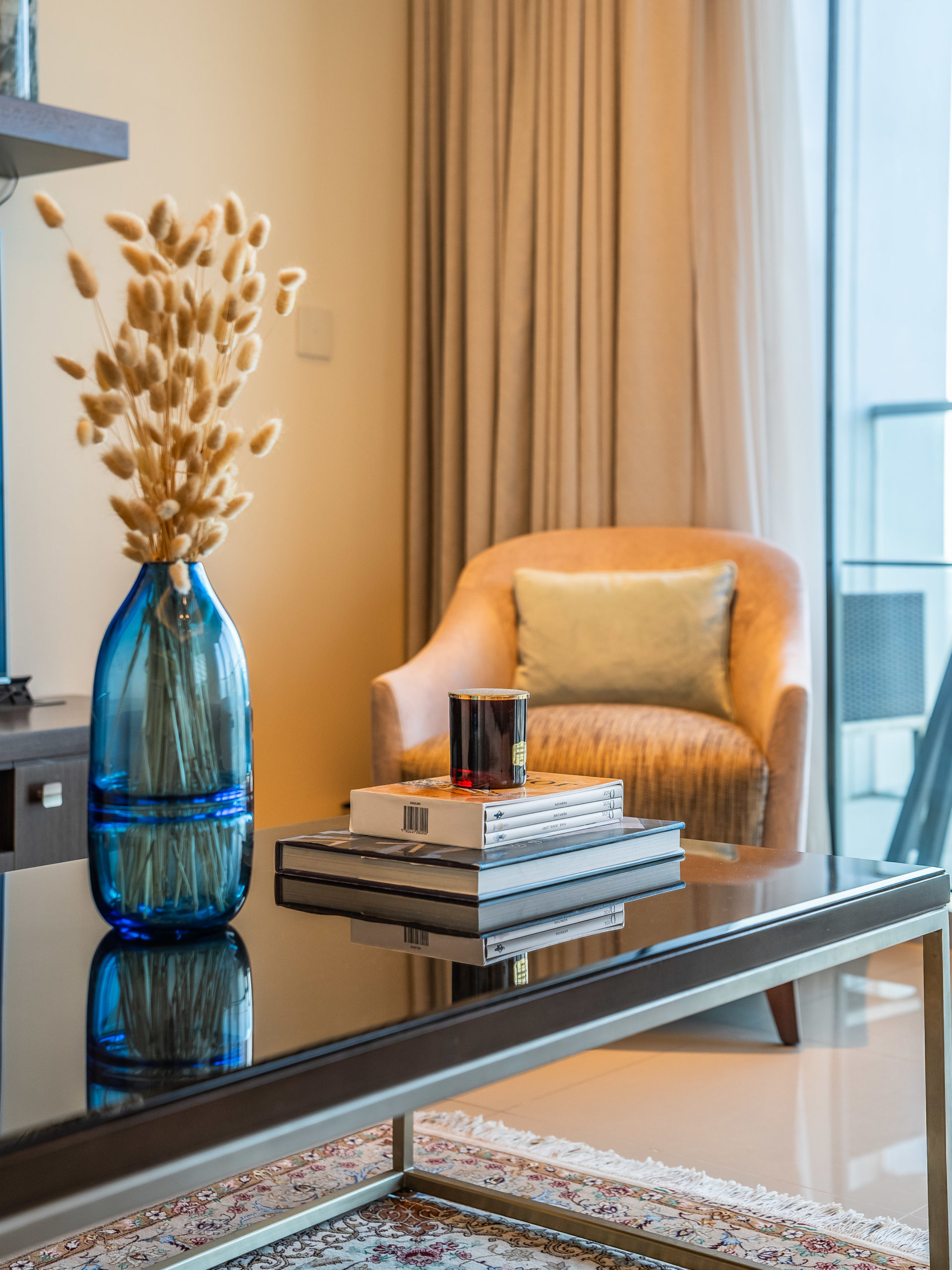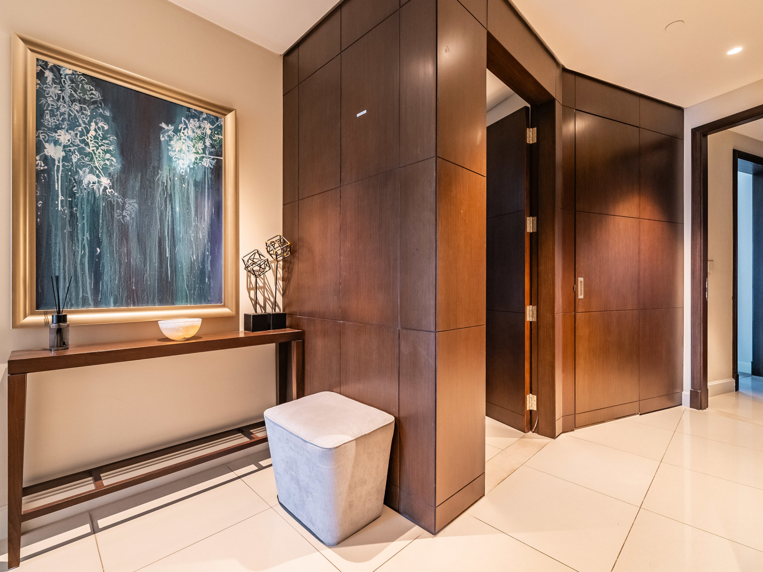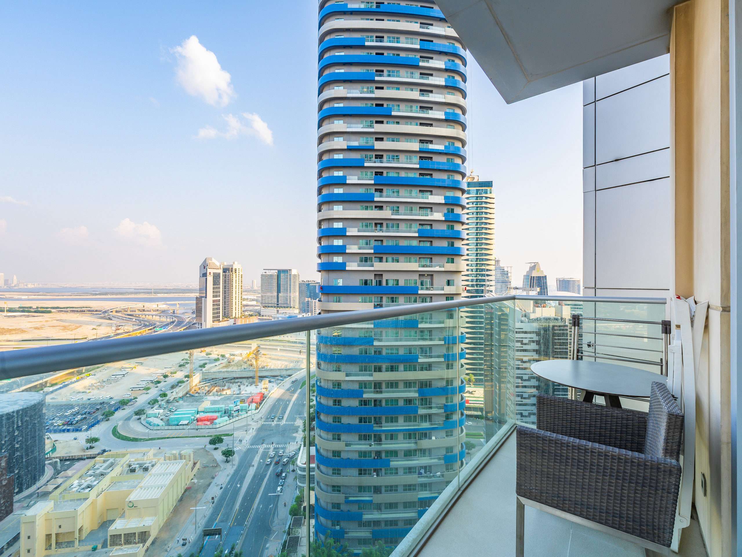 Enjoy panoramic views of Dubai’s skyline, the Burj Khalifa, and the Dubai Fountain from your apartment.