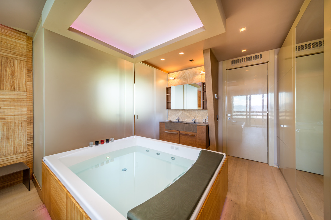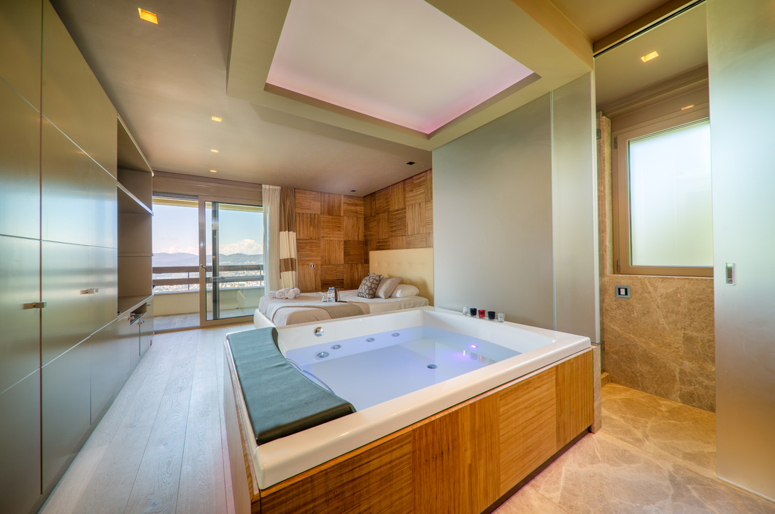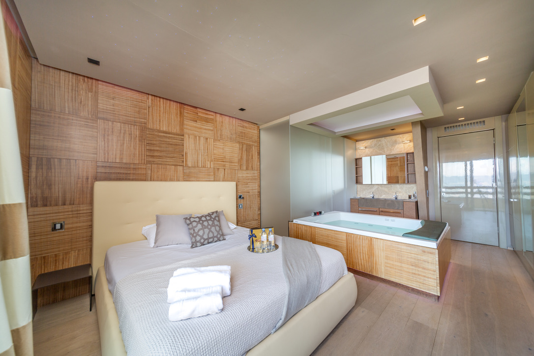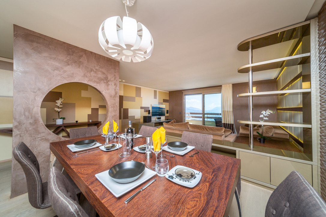 The Apartment offers a luxury design accommodation for up to 4 guests (4 adults or families with 2 kids), providing a cozy open space living area with well equipped kitchen, two double bedrooms (with AirCon) and two bathrooms with shower. and one jacuzzi. Additional features are the private terrace with stunning lake view and free parking inside the residence.