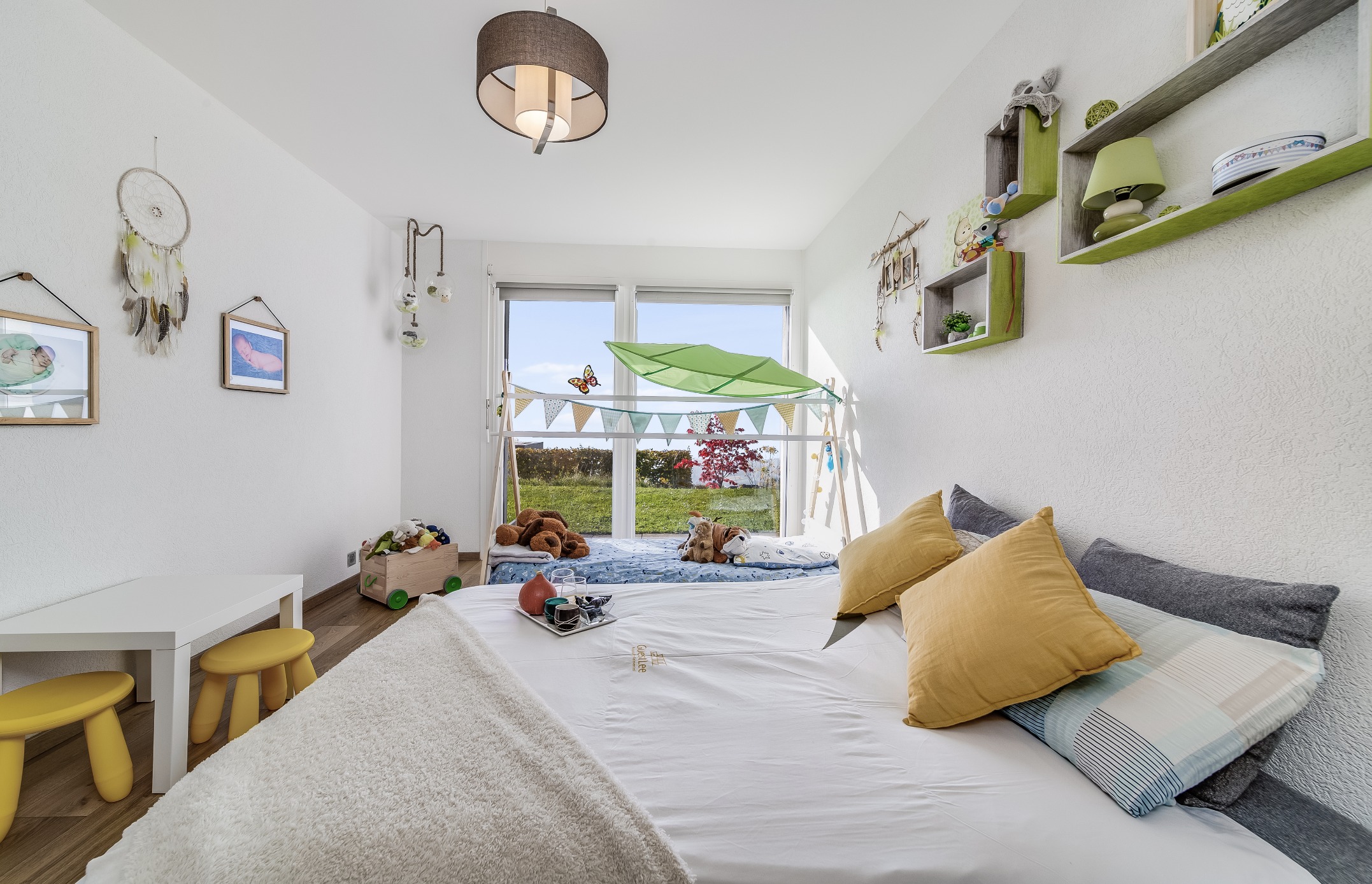 Direct access to the garden area for the ultimate relaxing experience the lounge area, and playground for children.