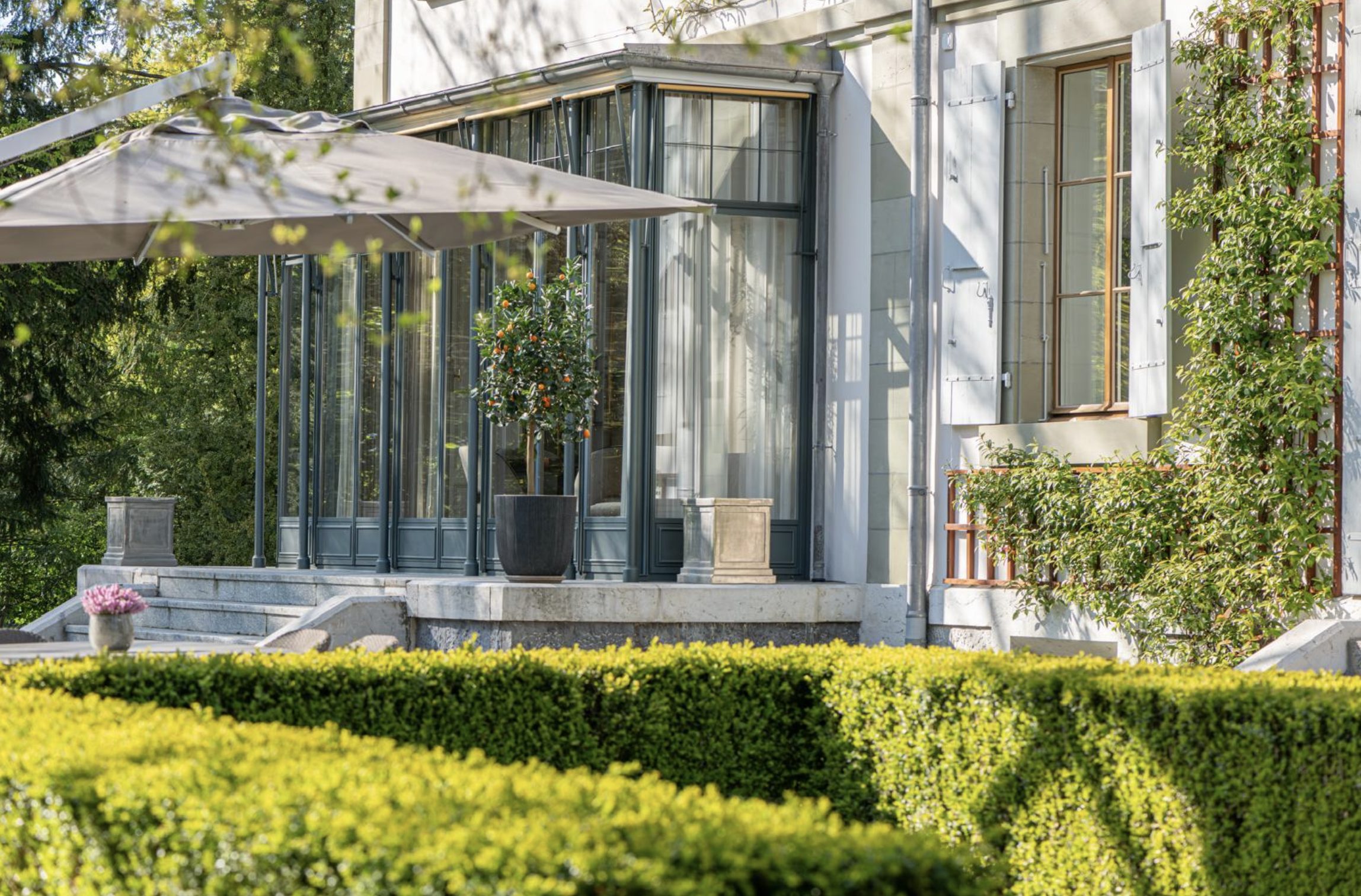 Located just 3 km (10 minutes) from downtown Geneva, Villa Oasis is close to luxury shopping, international schools, medical centers, embassies, and the lakeshore. Yet its tranquil, green surroundings feel worlds away.