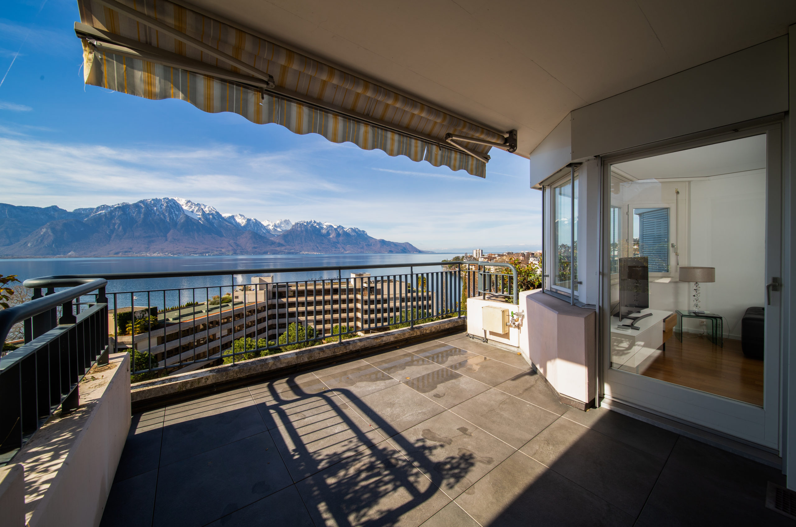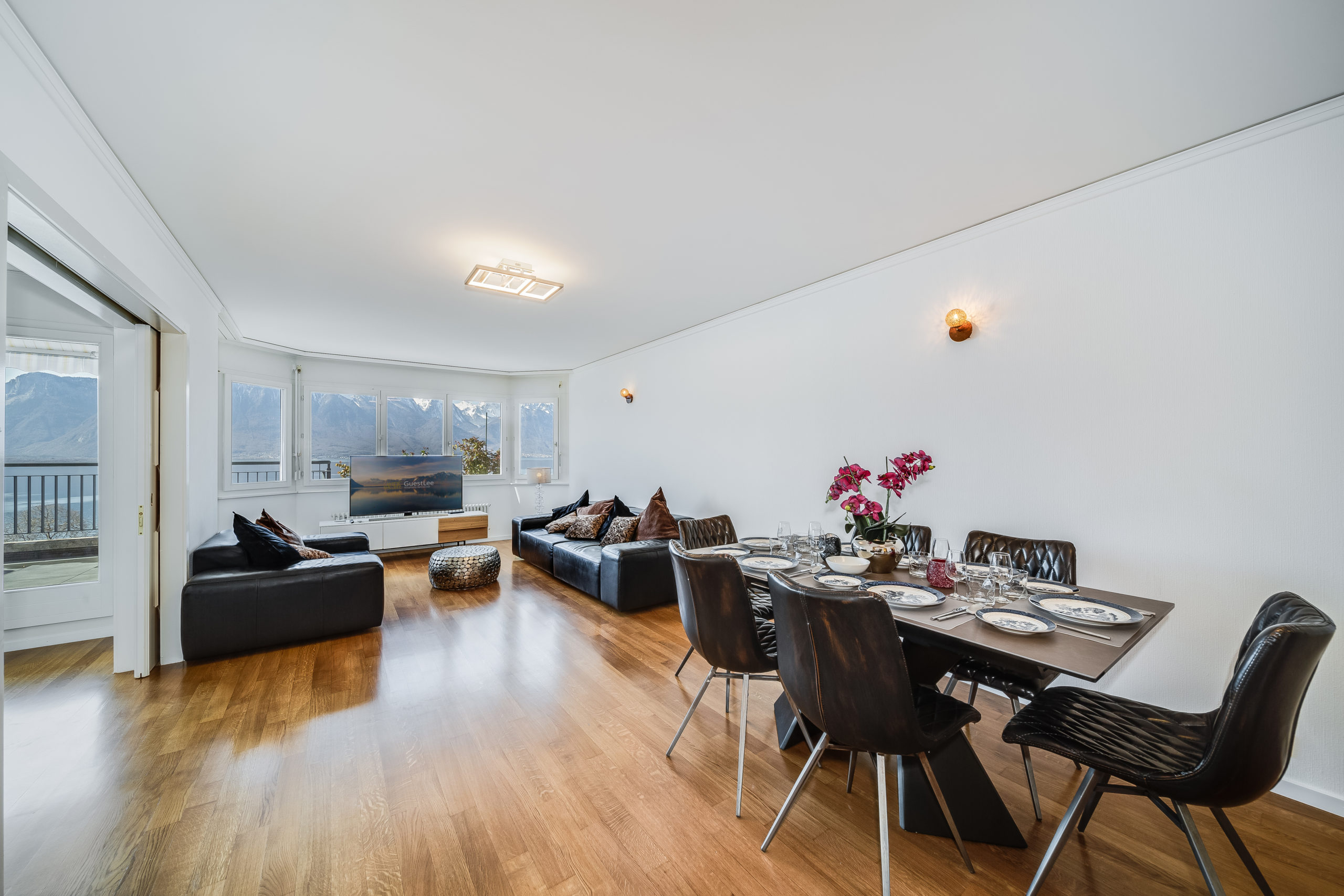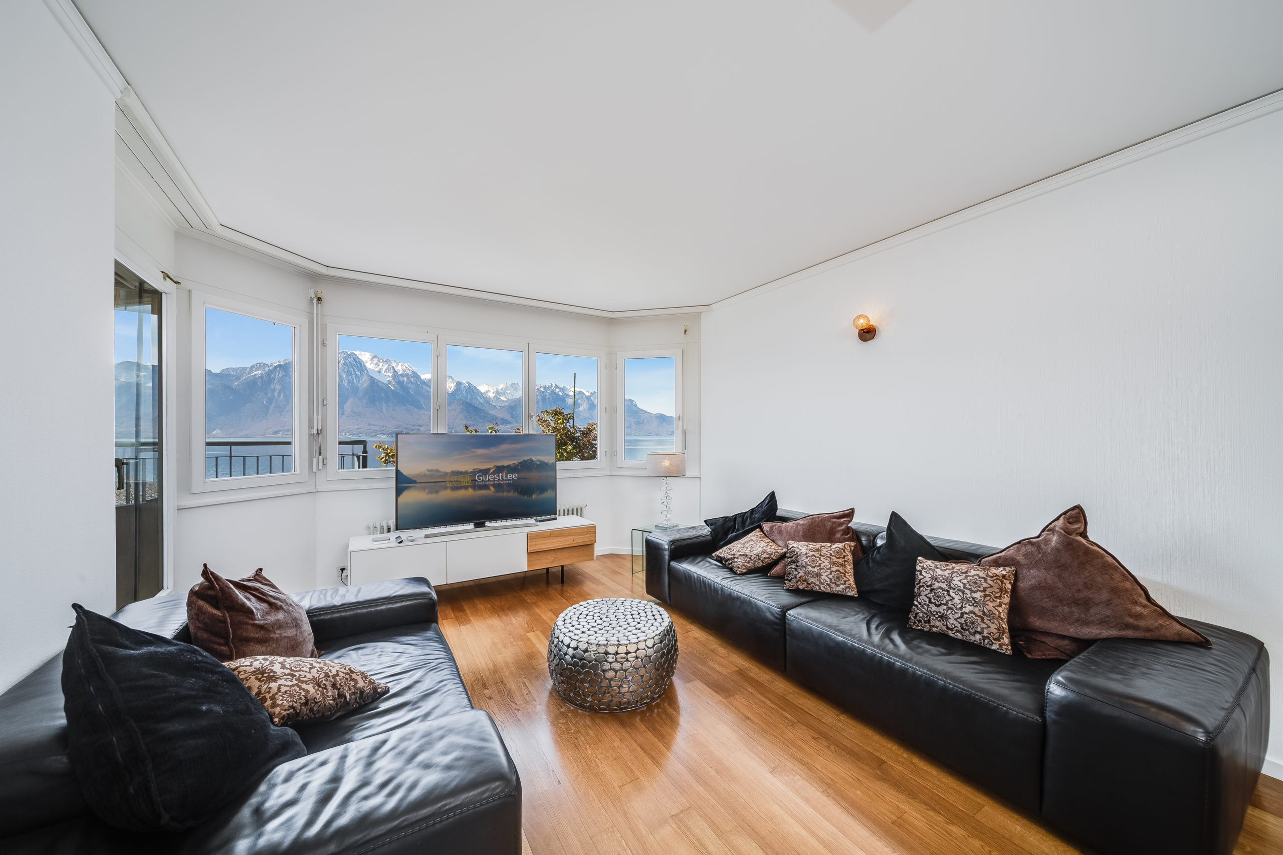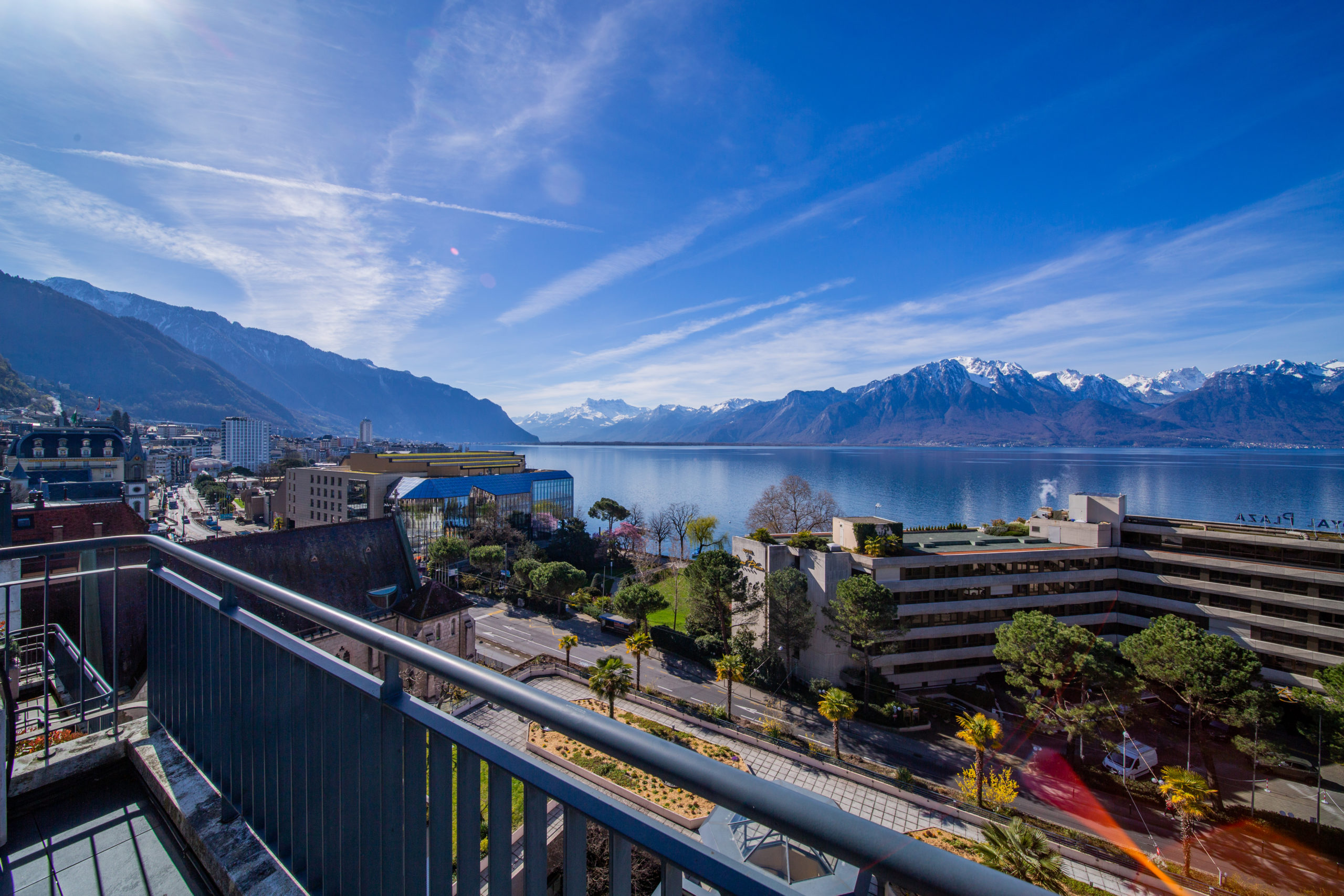 A stunning and spacious 2-bedroom apartment located on the top floor of the building (9th floor) with a perfect location (located in front of the Royal Plaza Hotel) and ideal to provide a family home in the heart of Montreux and the Swiss Riviera with panoramic lake and mountain views.