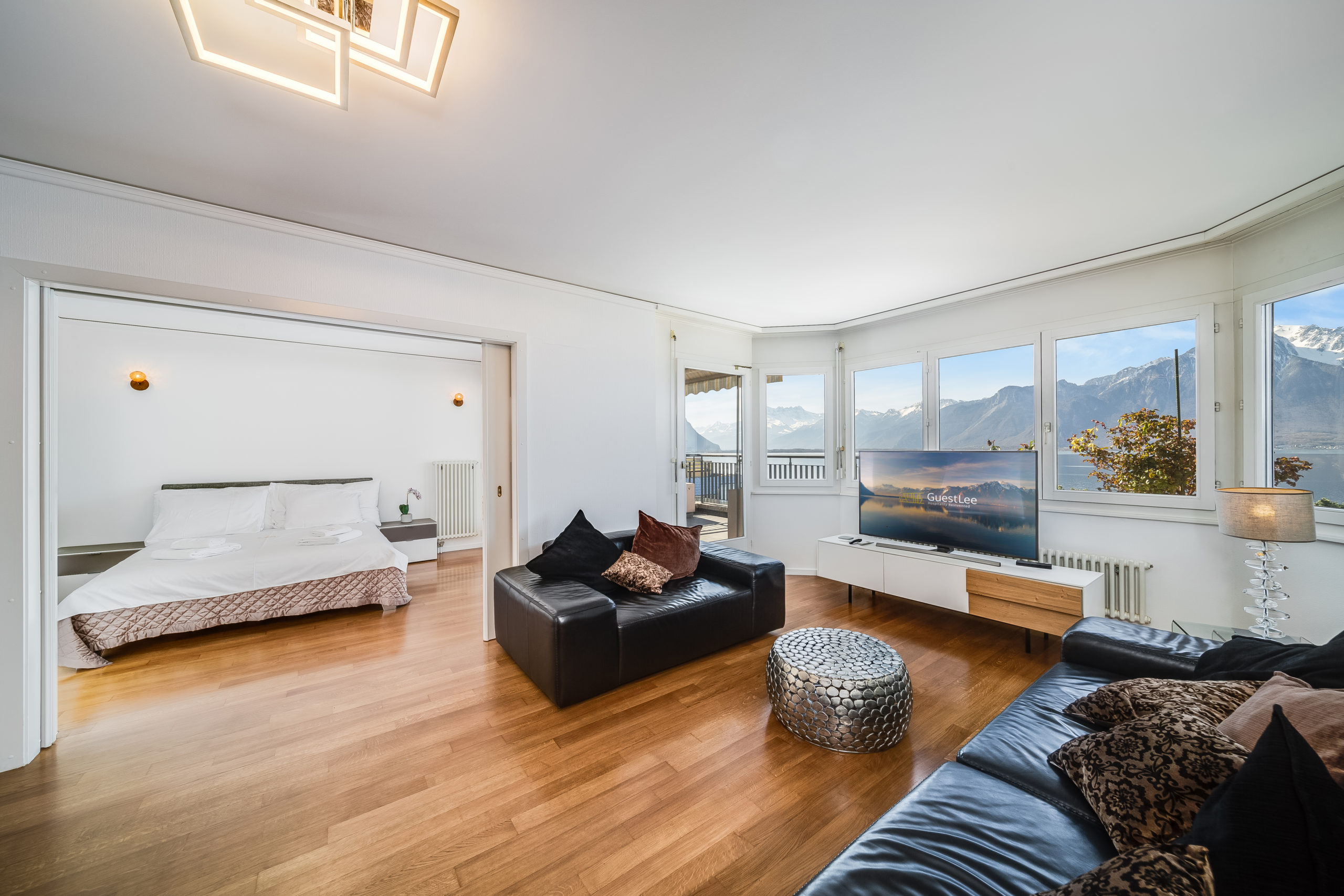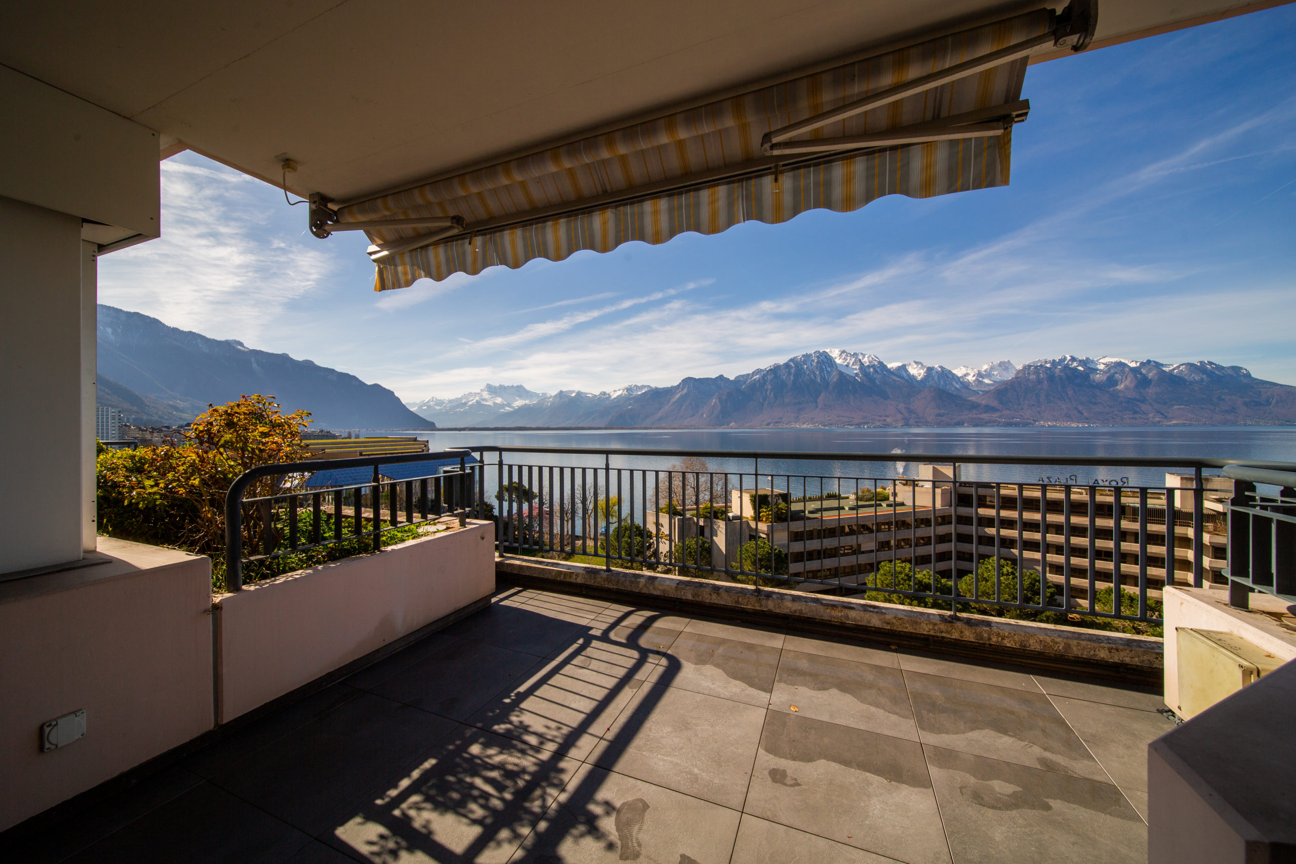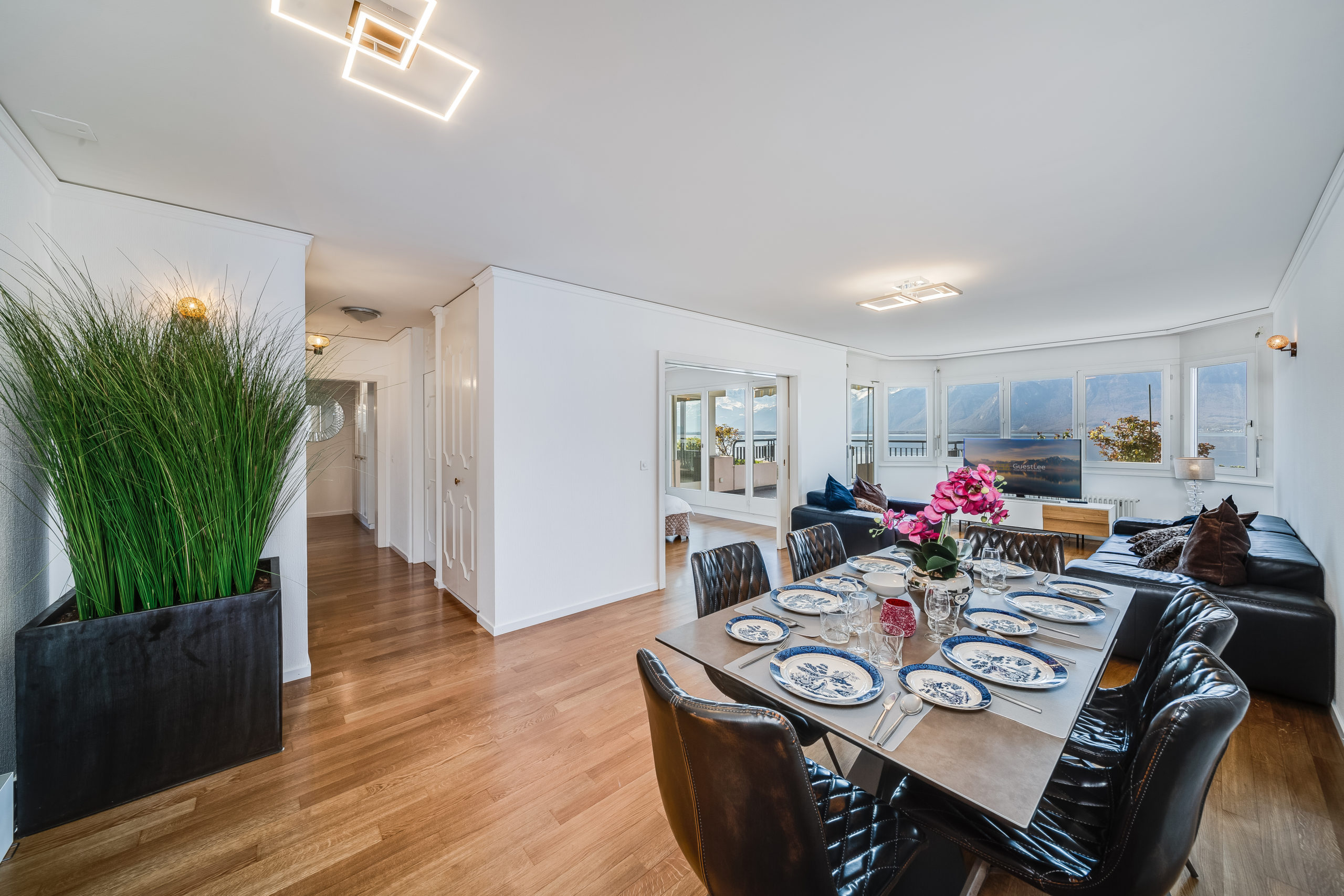 A stunning and spacious 2-bedroom apartment located on the top floor of the building (9th floor) with a perfect location (located in front of the Royal Plaza Hotel) and ideal to provide a family home in the heart of Montreux and the Swiss Riviera with panoramic lake and mountain views.