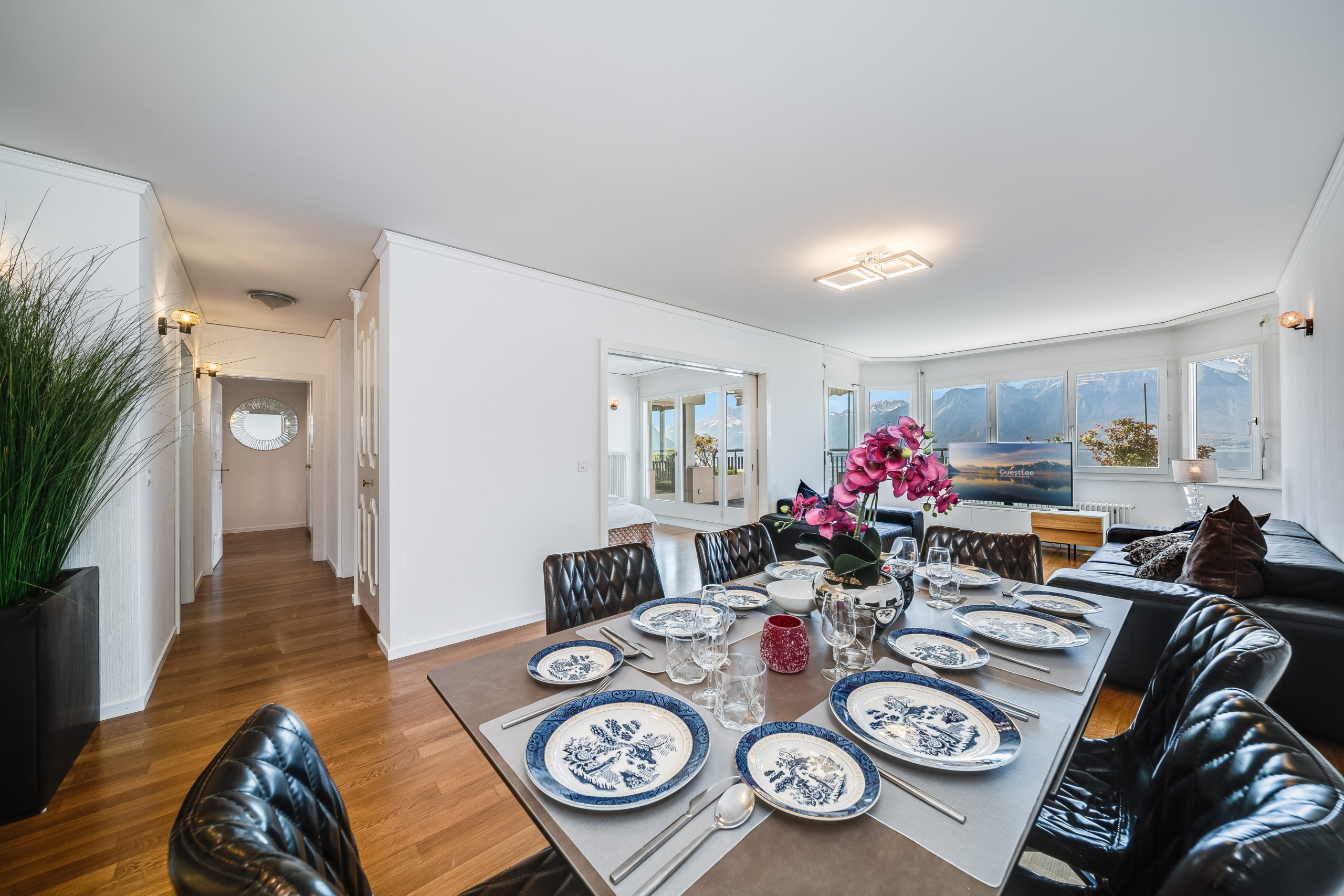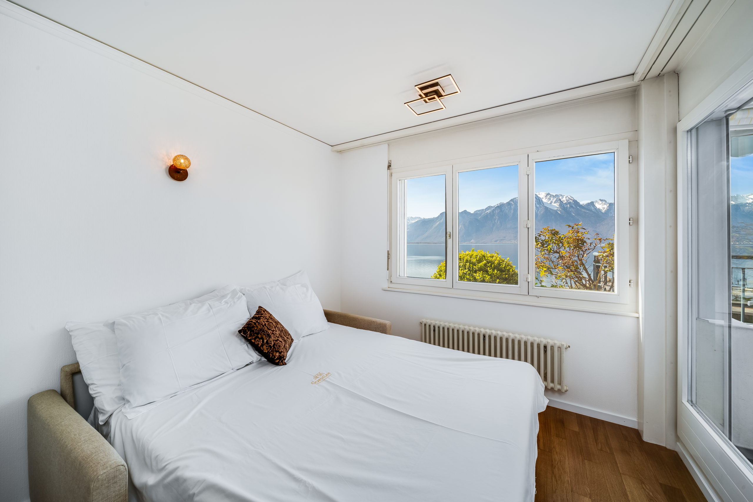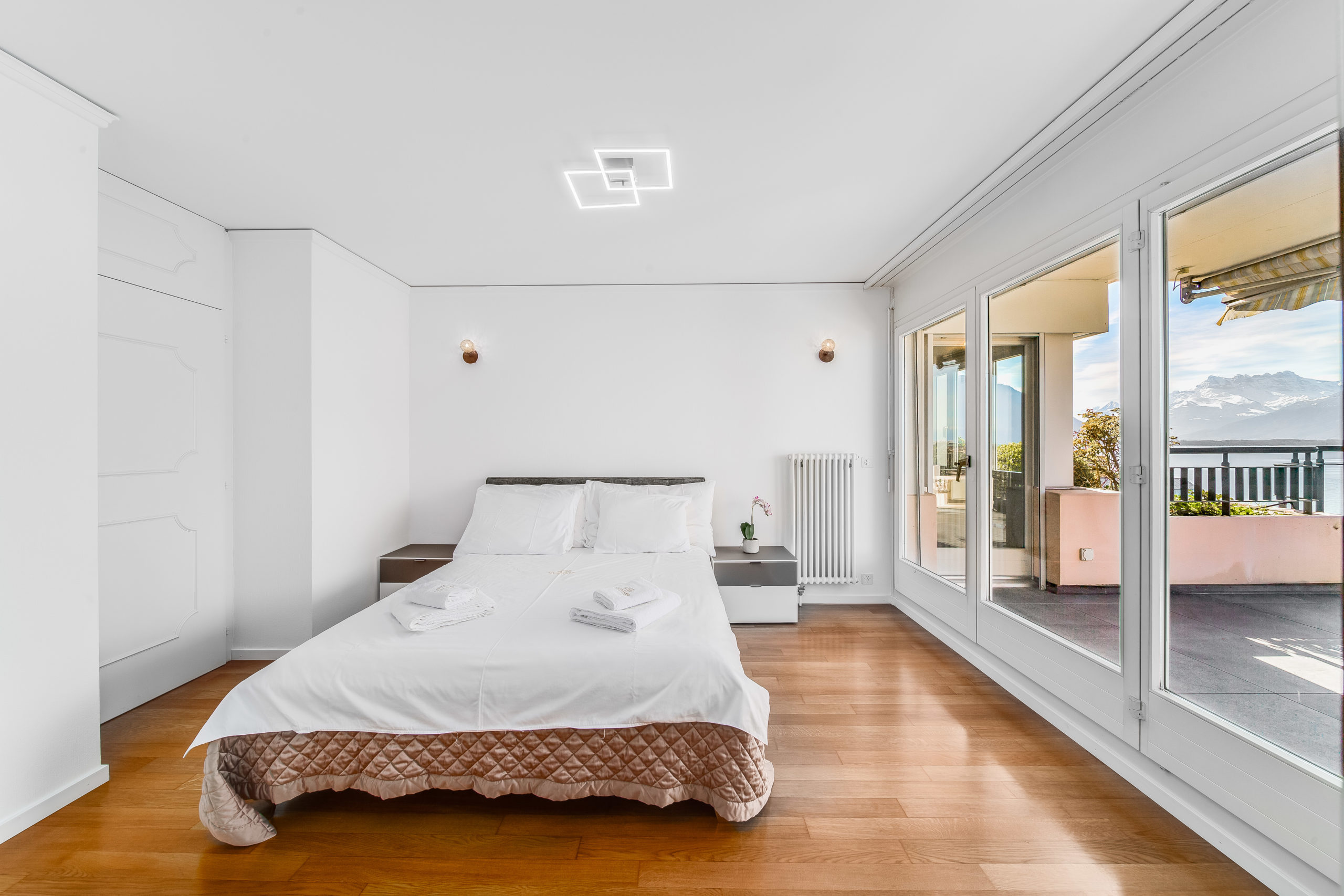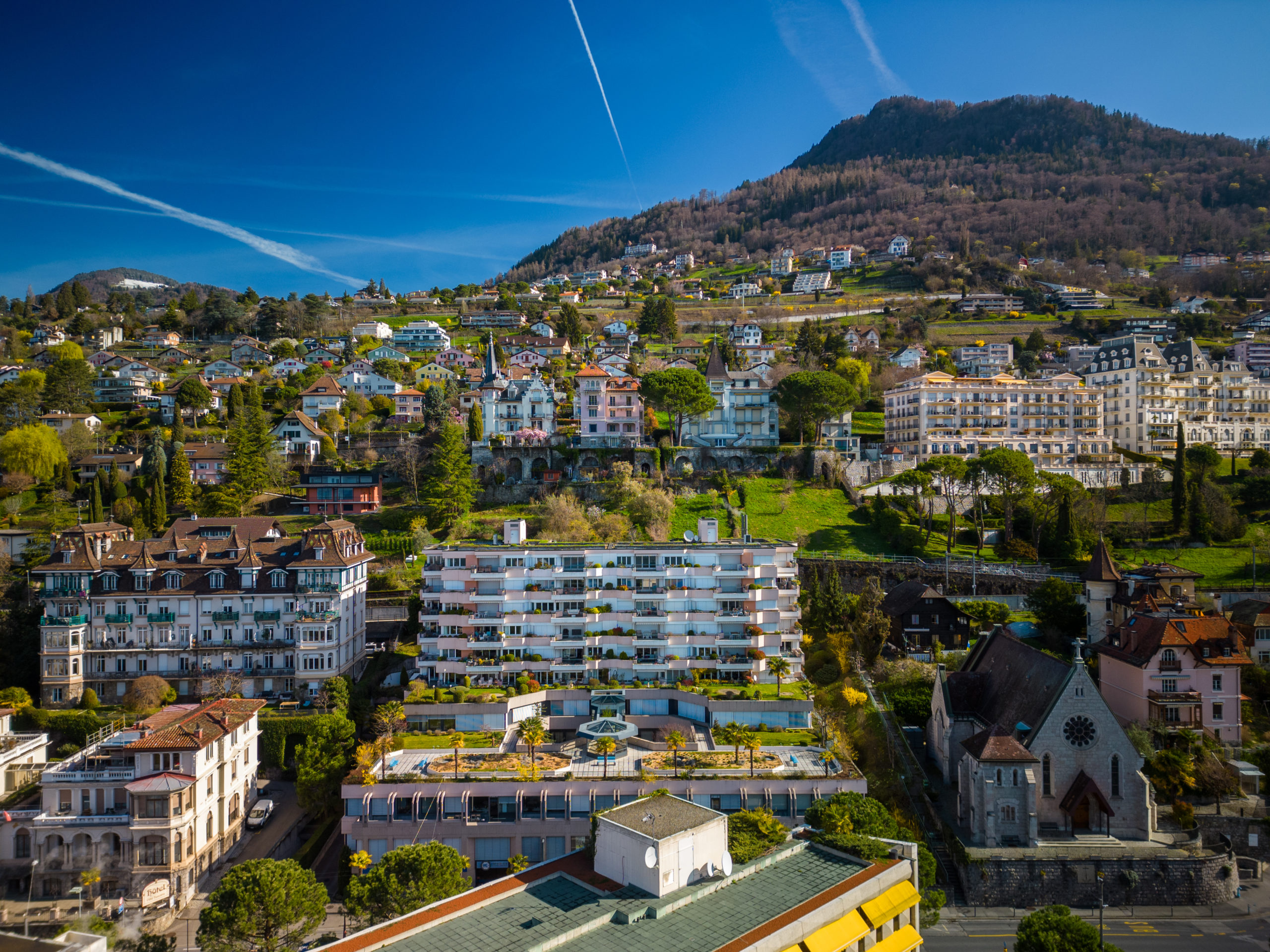 A stunning and spacious 2-bedroom apartment located on the top floor of the building (9th floor) with a perfect location (located in front of the Royal Plaza Hotel) and ideal to provide a family home in the heart of Montreux and the Swiss Riviera with panoramic lake and mountain views.