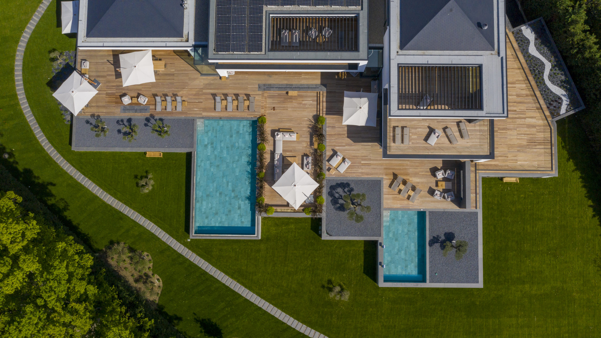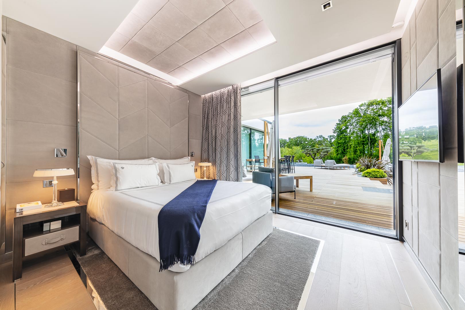 The Concept Ultima Geneva Grand Villa is truly one of a kind. Spanning 2,000m² across three floors, it’s a luxurious high-end property management Geneva marvel. The villa features a master bedroom with a private terrace, seven double bedrooms, a grand cinema, and a state-of-the-art wellness area that includes a Jacuzzi, hammam, sauna, pool, and fitness gymnasium. There’s even a separate villa on the property, perfect for extended guests to enjoy their own privacy.