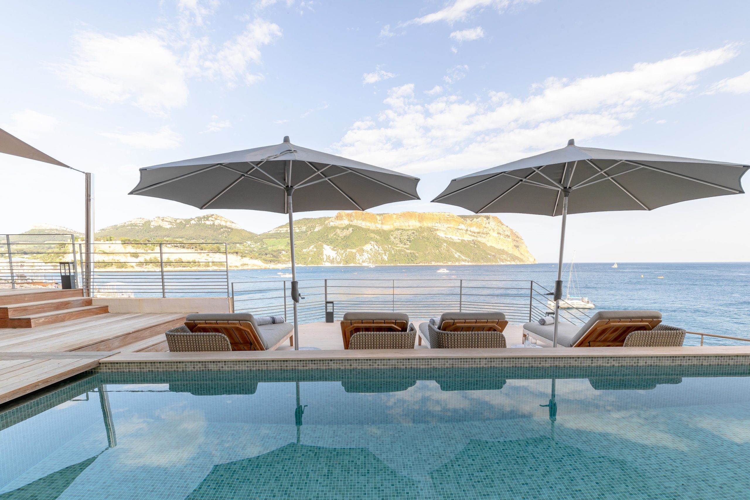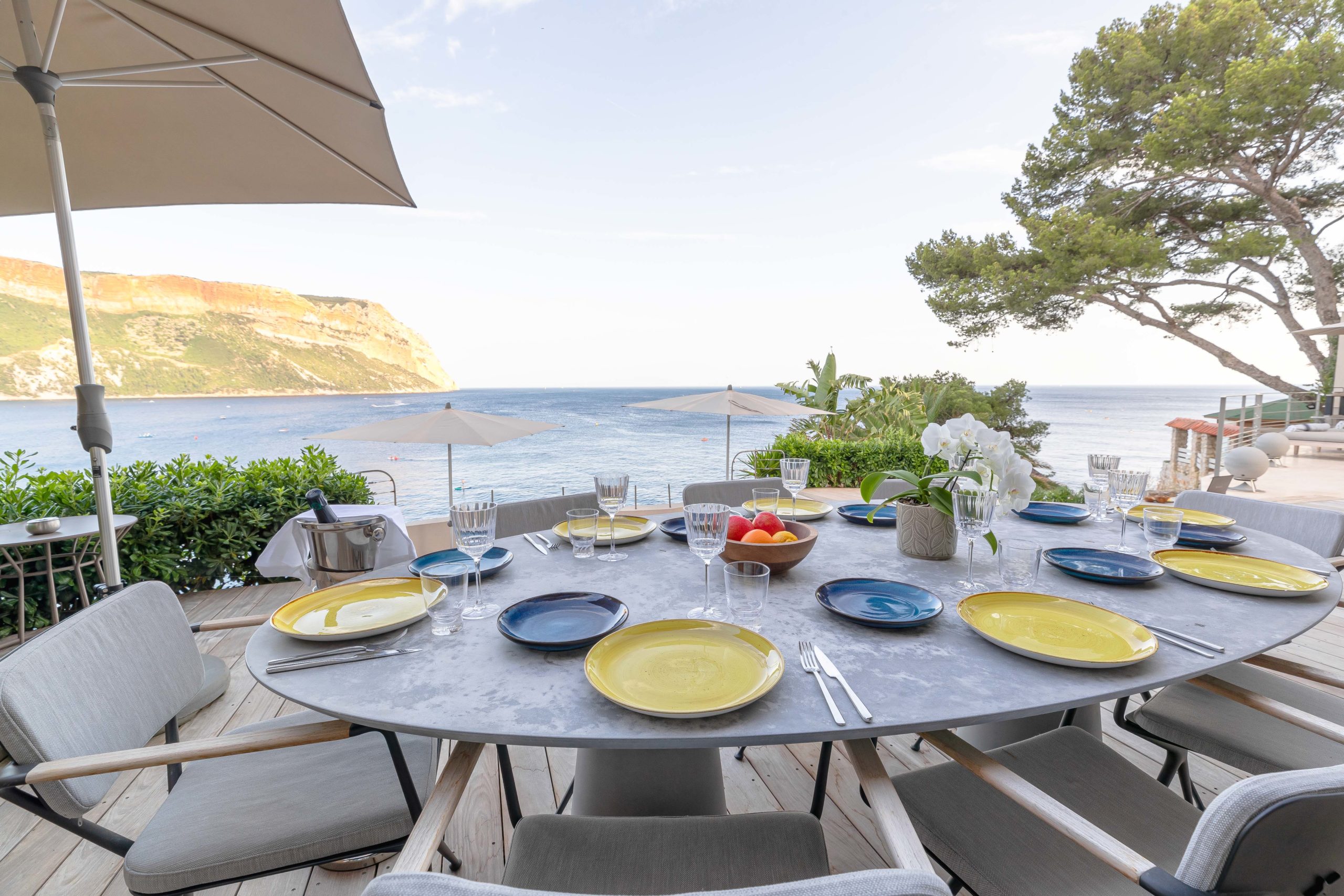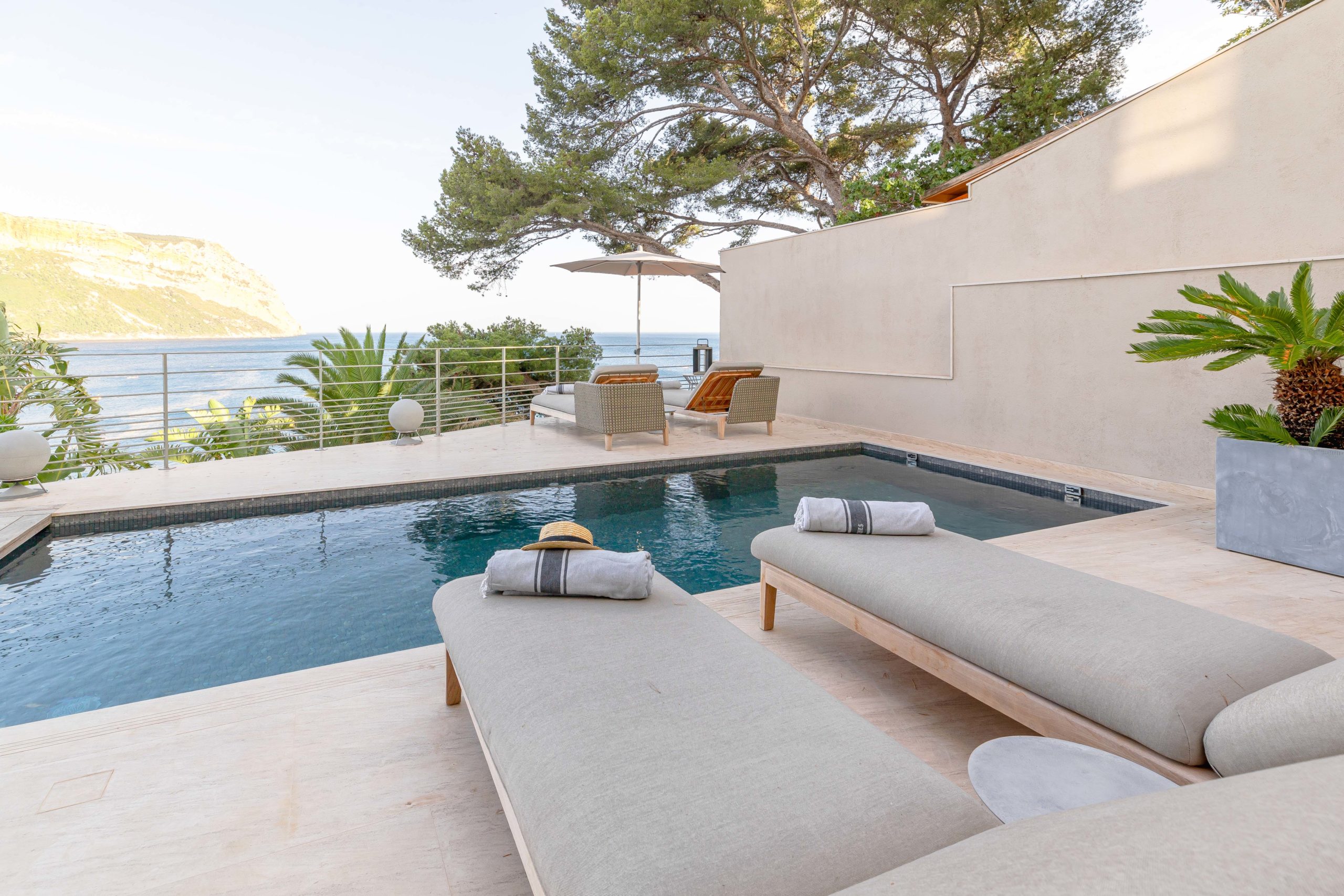 Villa Cala Bianca se trouve à quelques minutes à pied du port de Cassis, cachée derrière Les Roches Blanches — une station légendaire des années 1920 aujourd’hui transformée en hôtel de luxe. De plus, la villa offre un accès privé aux équipements de l’hôtel tout en offrant le confort d’une propriété indépendante. Avec Cap Canaille et la mer Méditerranée en toile de fond, la Villa Cala Bianca mêle parfaitement luxe et élégance.