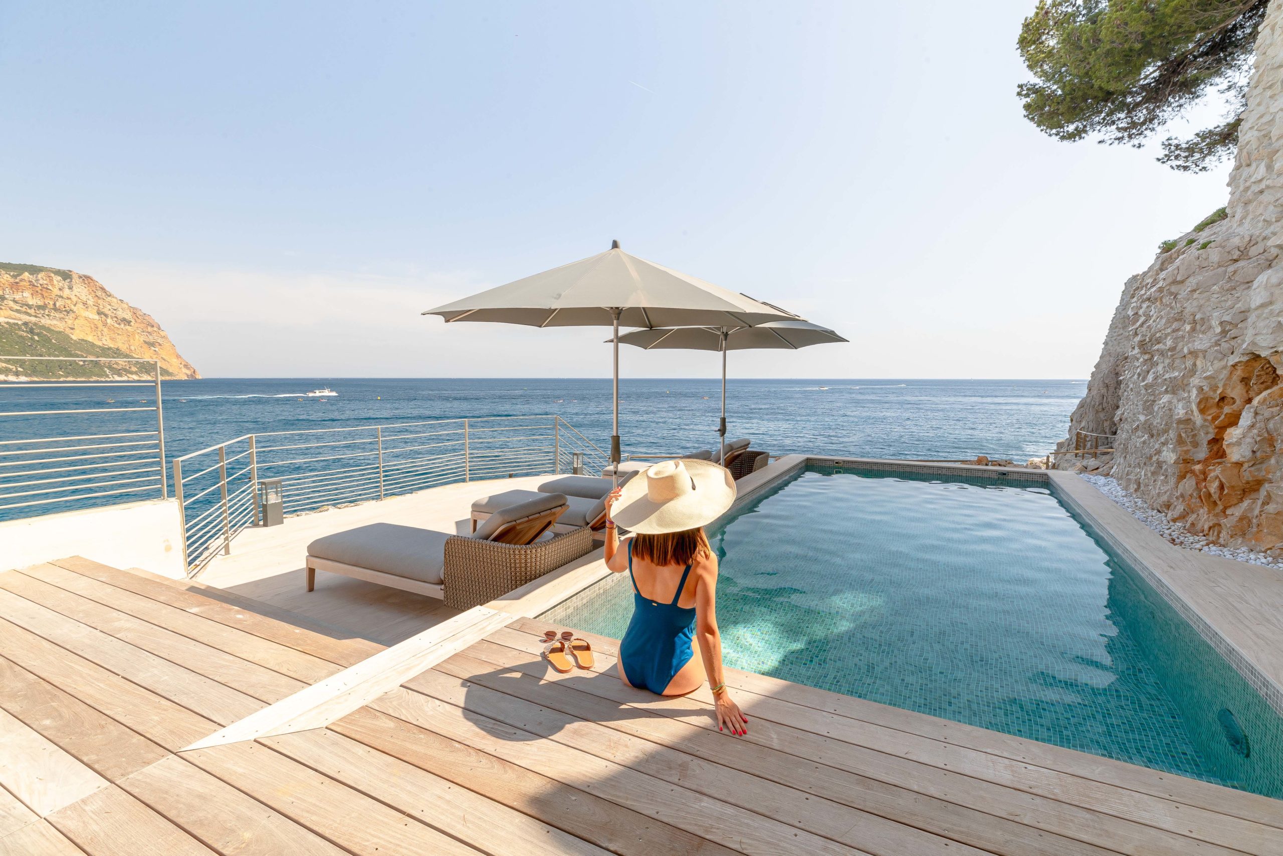 La Villa Cala Bianca offre un accès direct à la mer. Plus précisément, un chemin taillé dans la roche mène à votre port privé, où vous pouvez plonger en Méditerranée ou monter à bord de l’un de nos bateaux privés. Nos skippers expérimentés vous guideront à travers les trésors cachés des Calanques, vous emmèneront sur l’île hypnotisante de Porquerolles, ou navigueront jusqu’à Saint-Tropez.