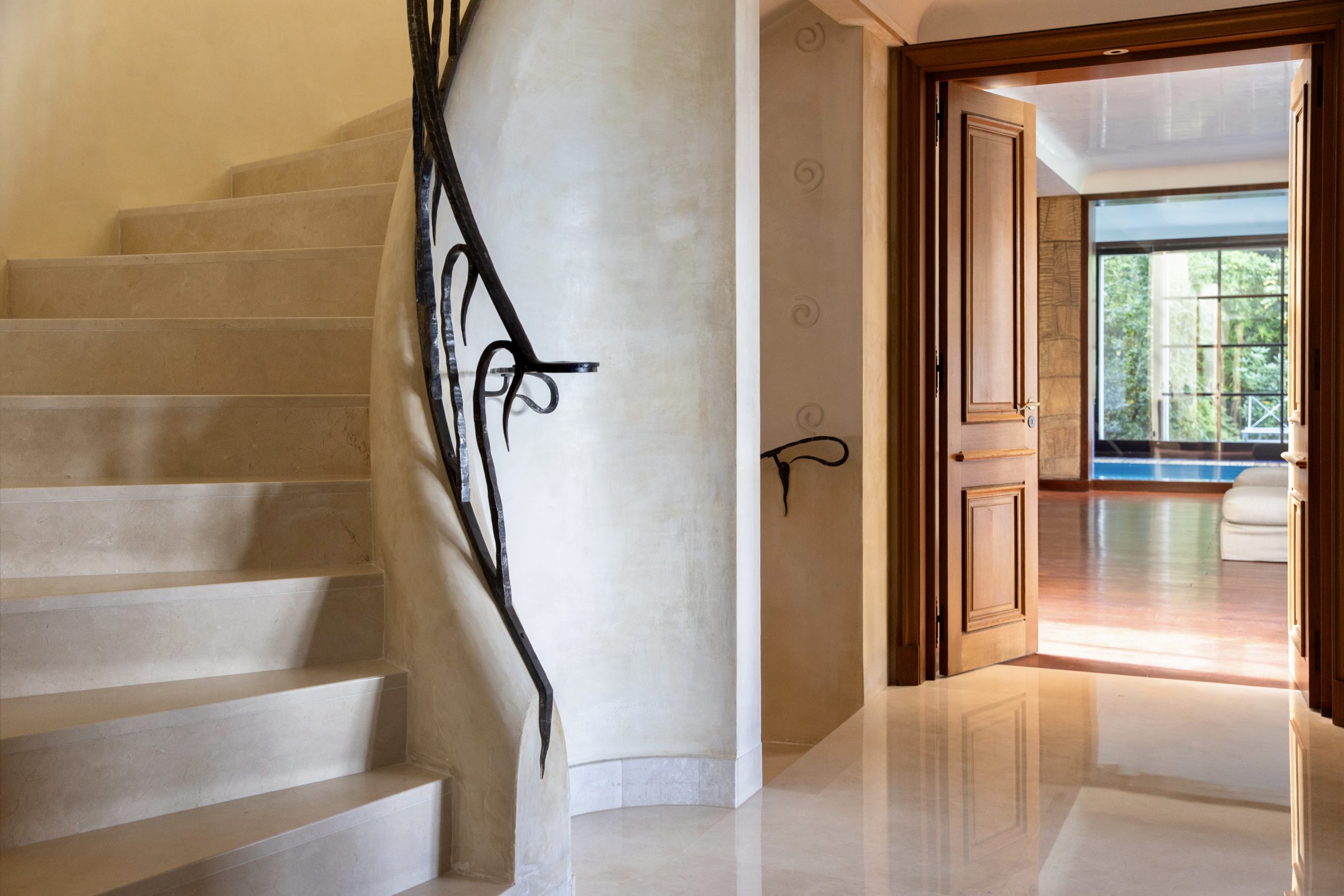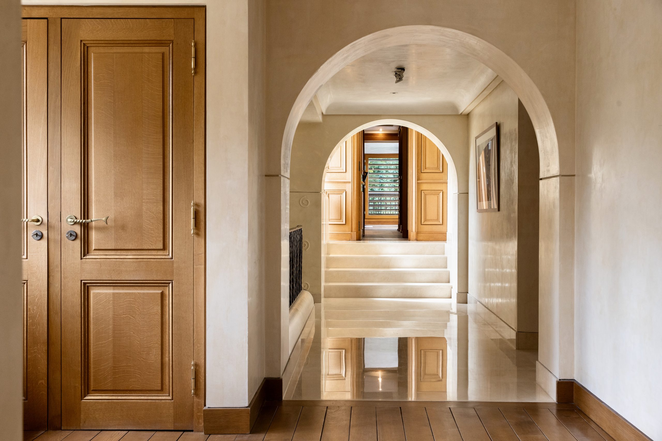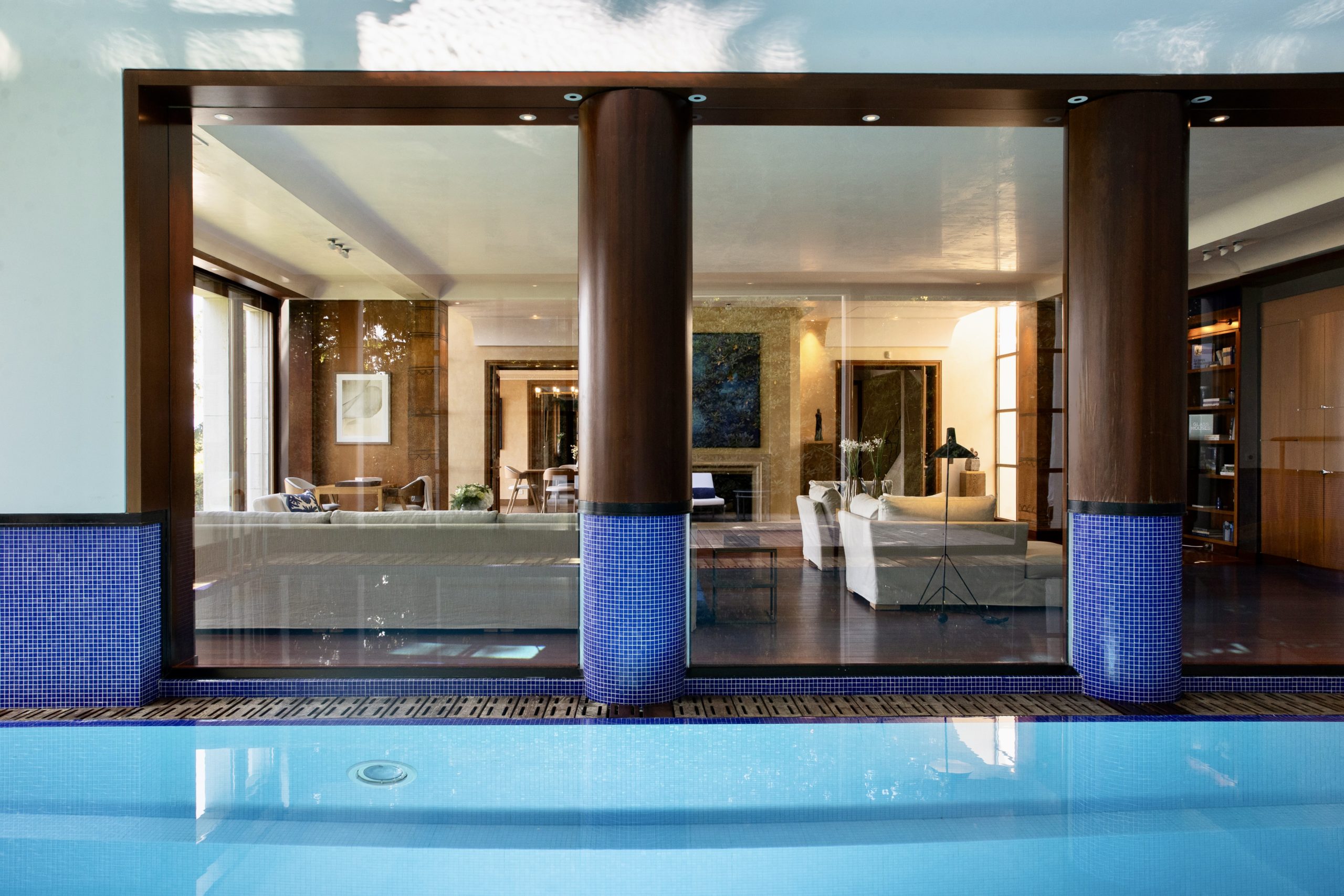 The villa spans approximately 650 sqm, defined by clean architectural lines, natural light, and a refined palette of materials. Subtle Eastern influences appear in the detailing, adding depth without overwhelming the overall sense of balance and restraint. Living spaces are generous yet composed, designed for both entertaining and quiet retreat. Large openings extend onto a landscaped garden and terrace, creating a seamless connection between indoor and outdoor living. An indoor pool, fully openable during warmer months, allows for year-round use while maintaining a direct relationship with the surrounding environment.