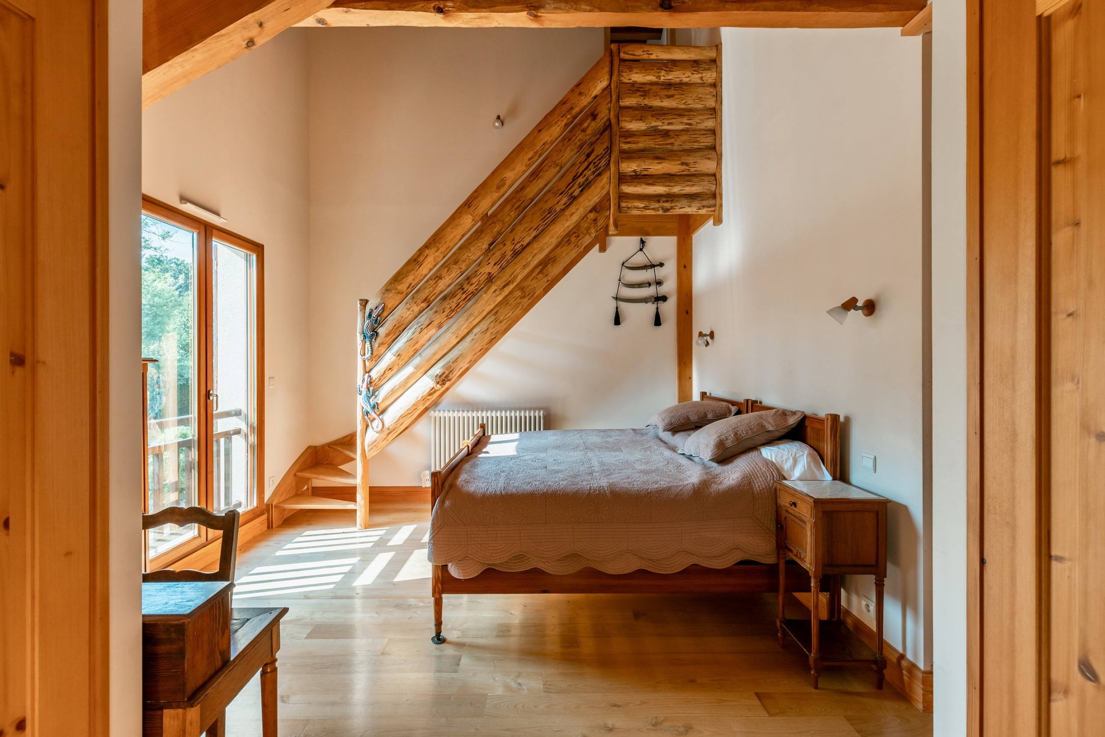 • Underfloor ecological electric heating and double-glazed exotic wood window frames ensure comfort and sustainability