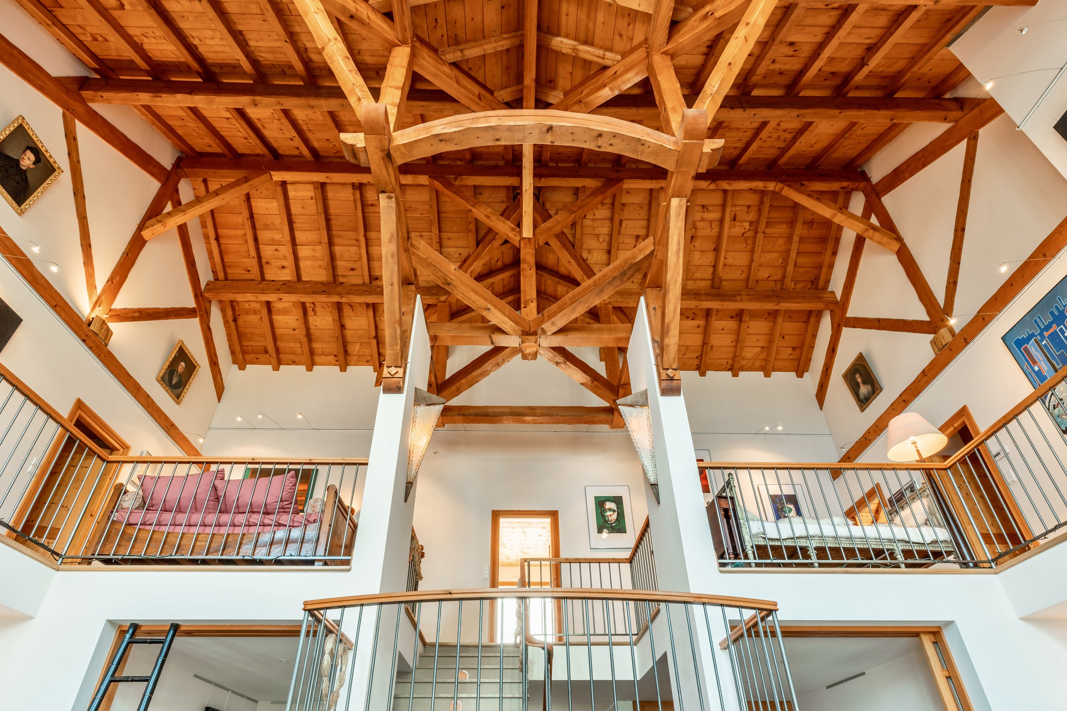 • Two double-height living areas, divided by a stunning central open fireplace, create ambiance and warmth
