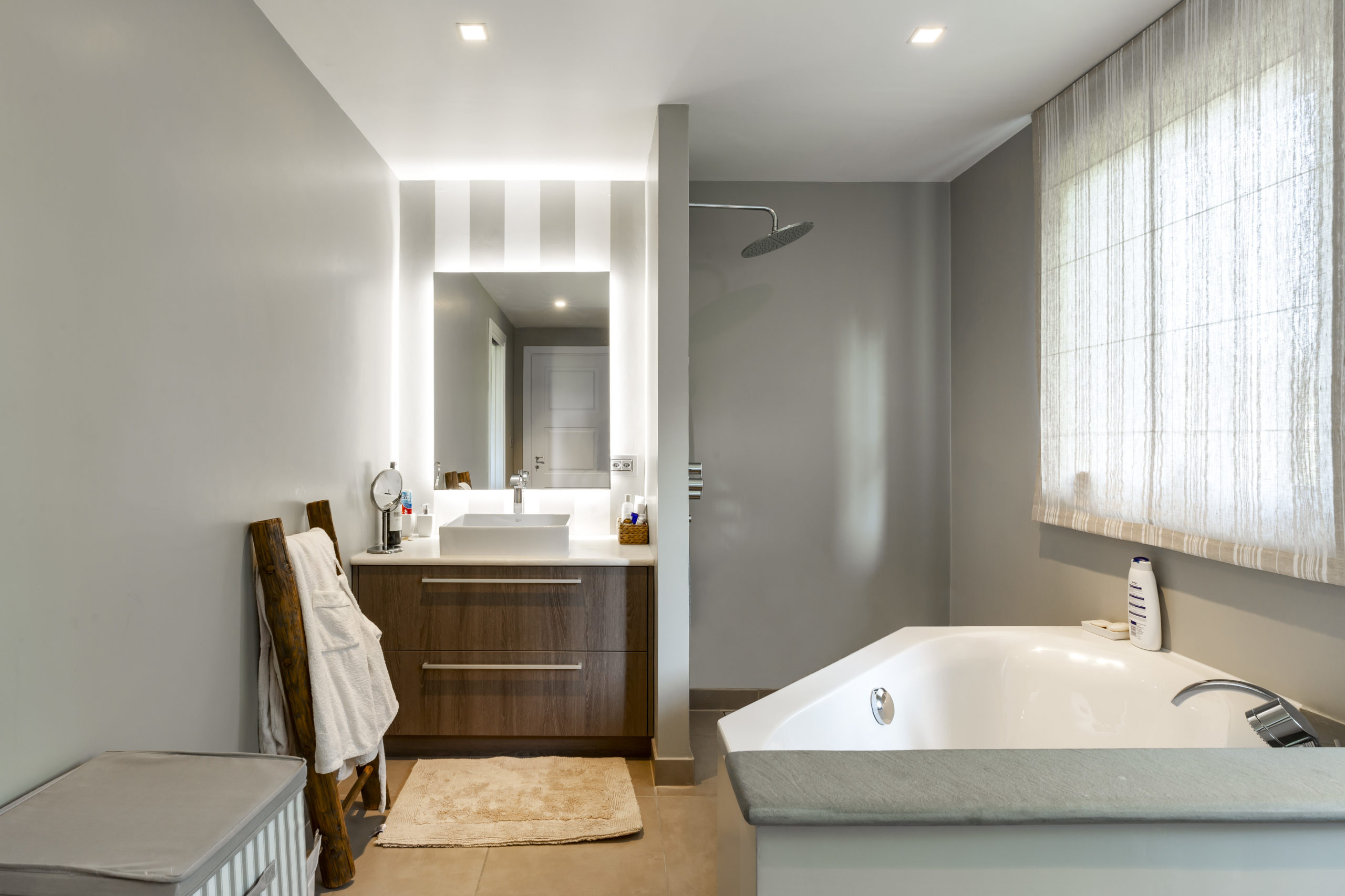 Robes, slippers, and toiletries provided