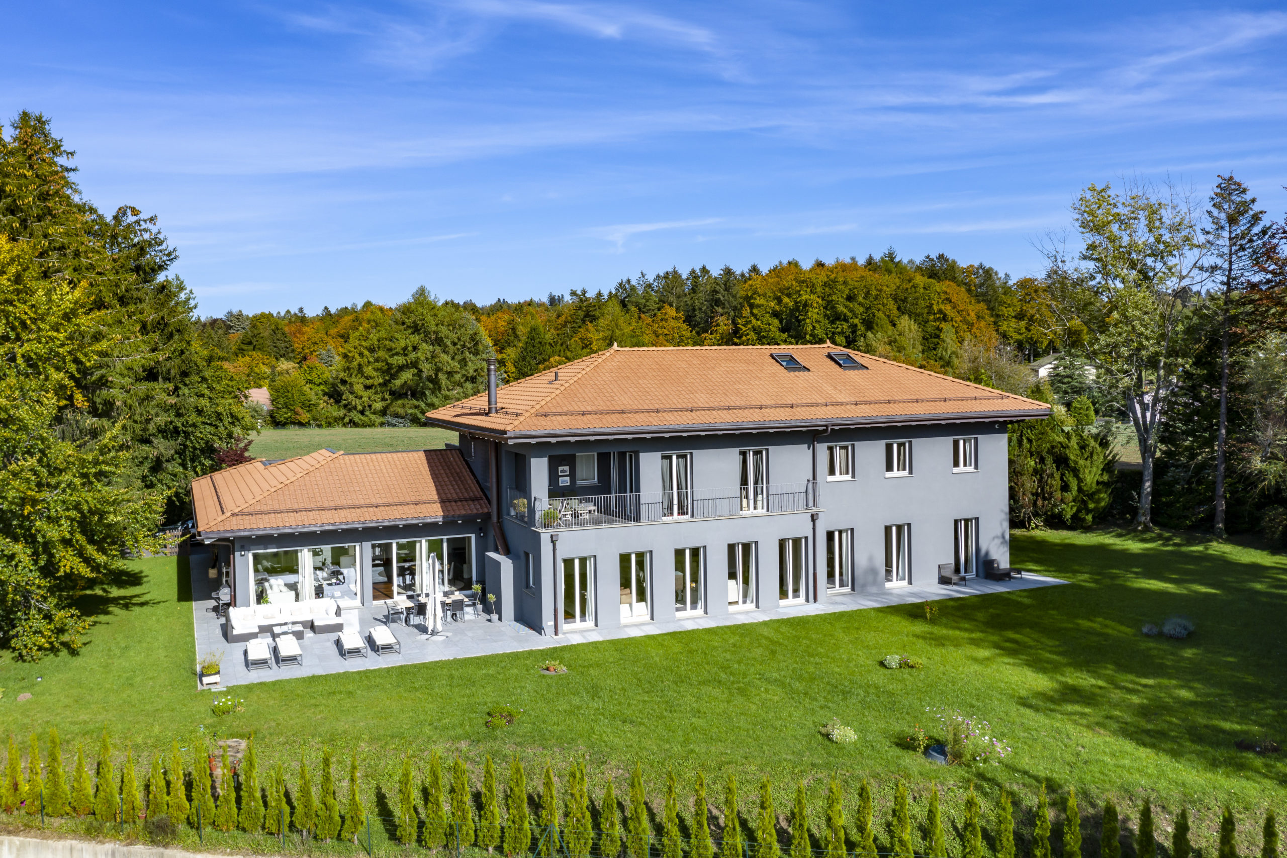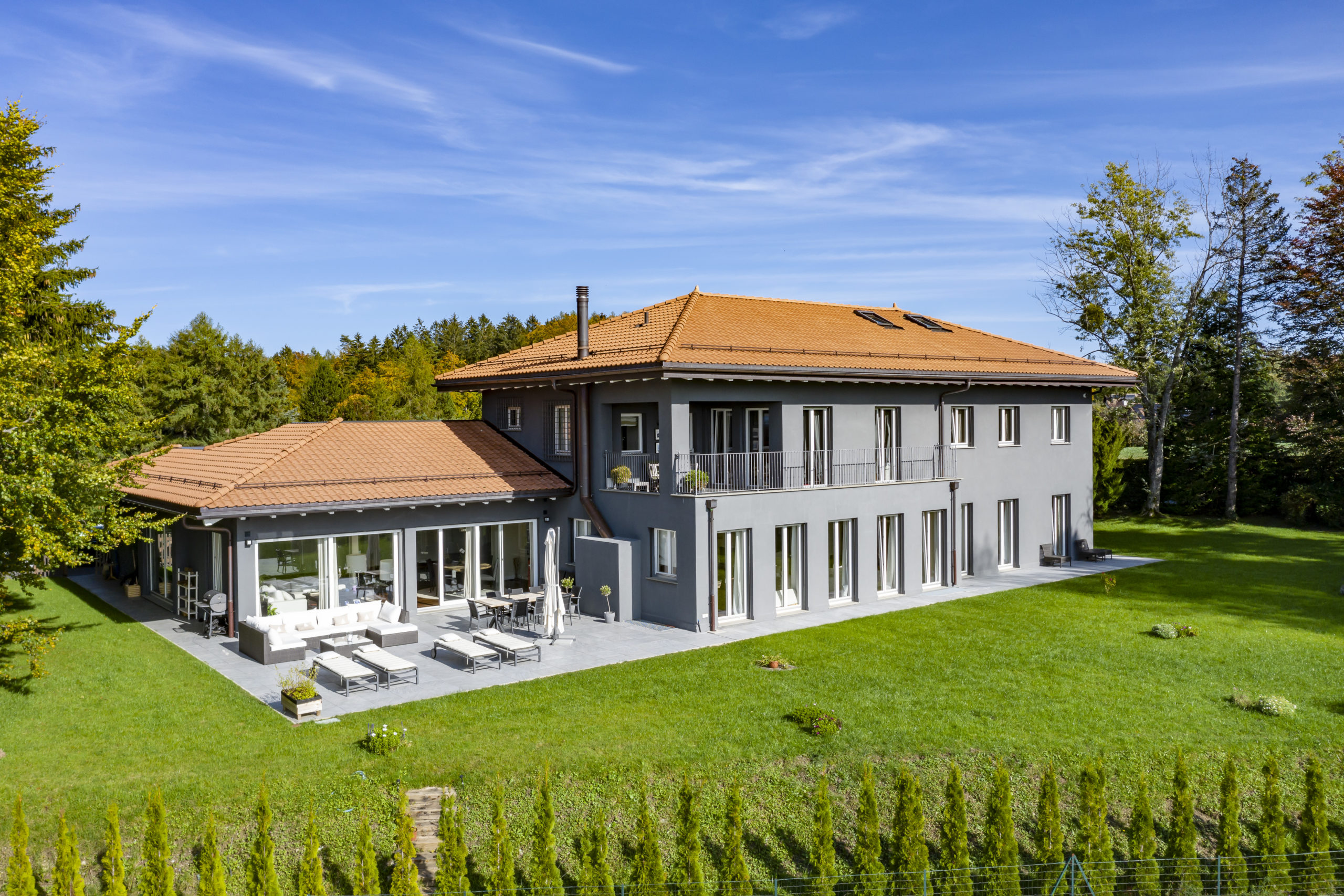 Welcome to this exceptional luxury private villa located in a quiet, residential area of Epalinges, near the renowned Lausanne golf course. Built in 1972 and fully renovated in 2016, this property showcases contemporary architecture and high-quality finishes.