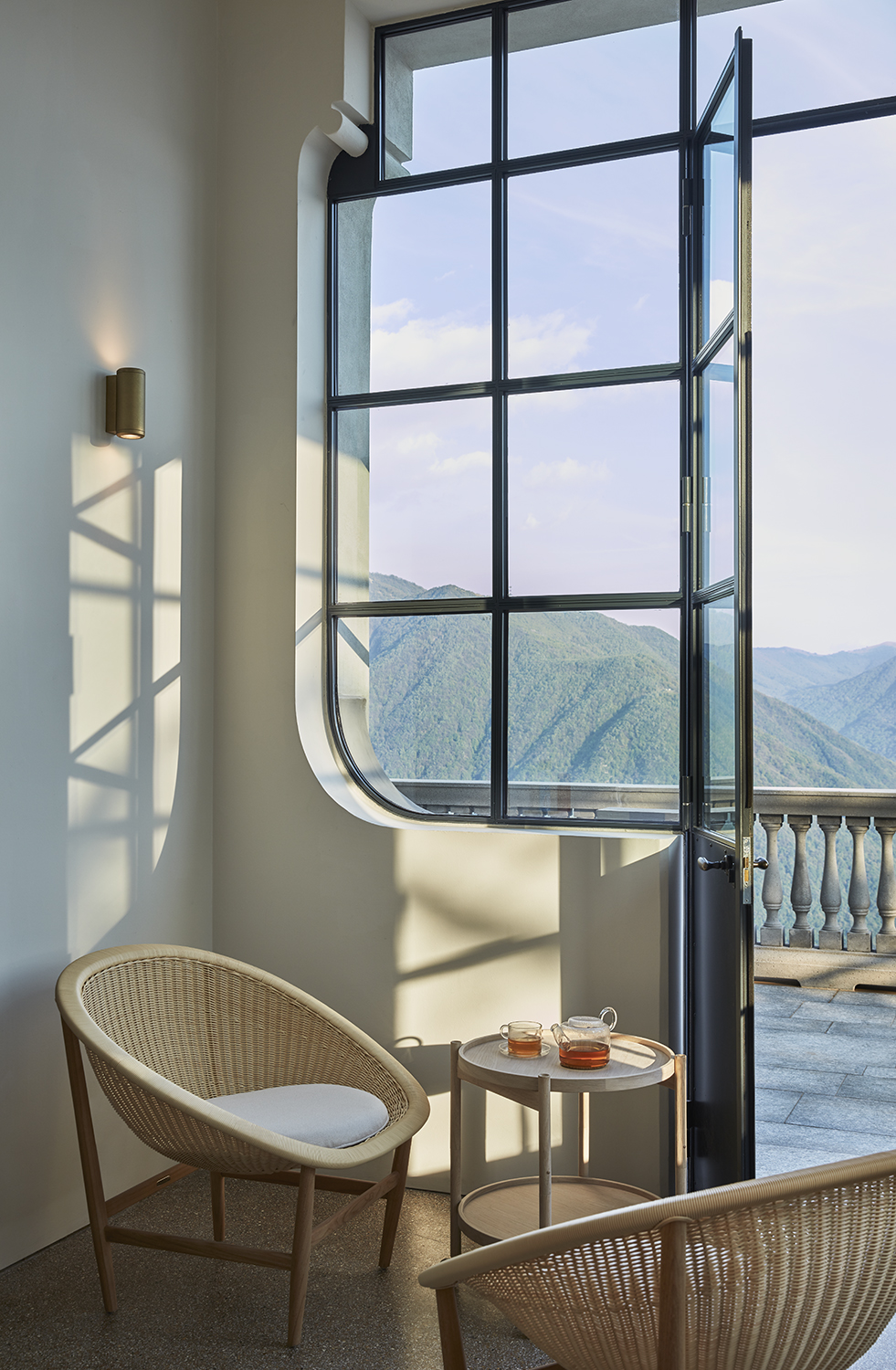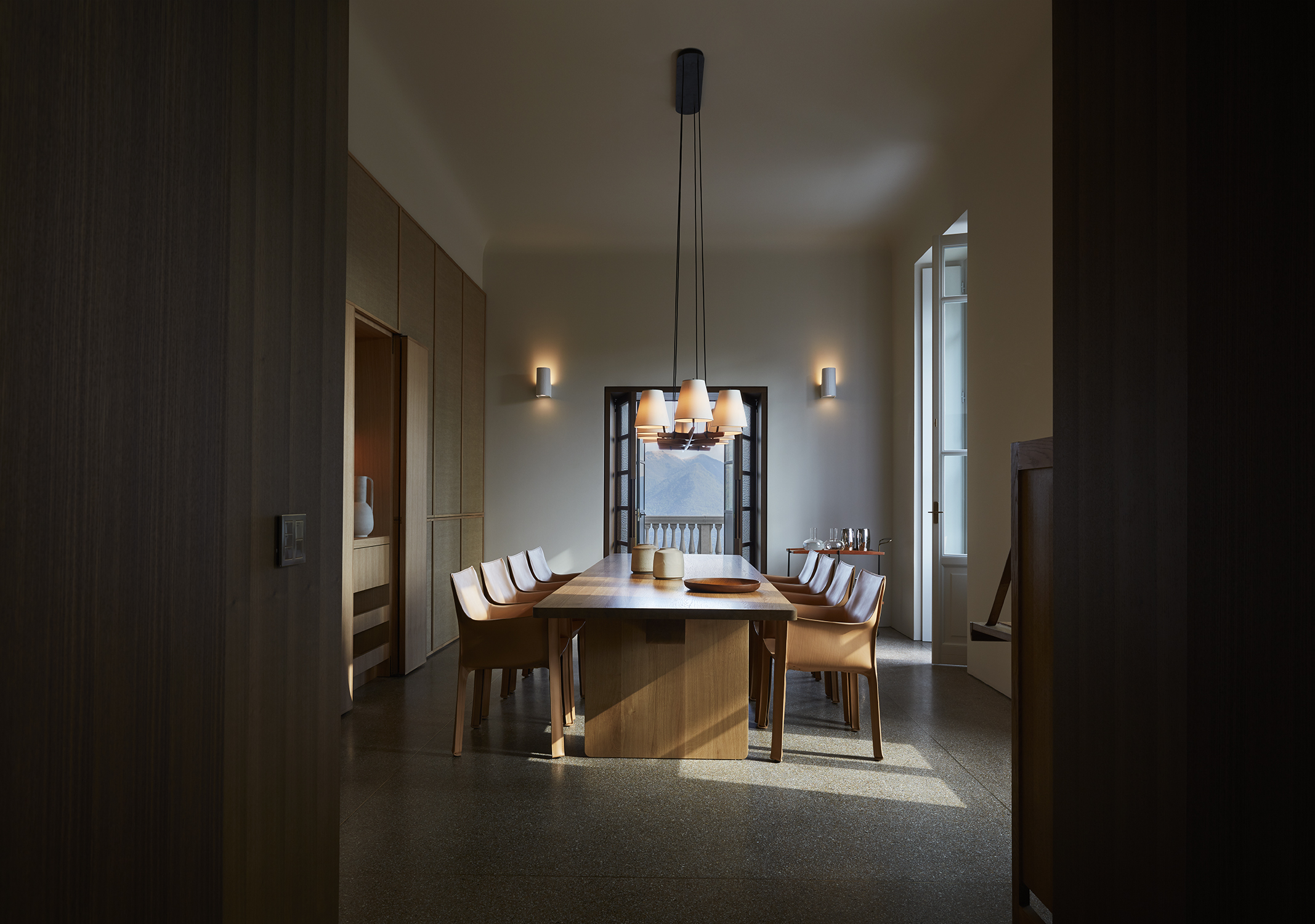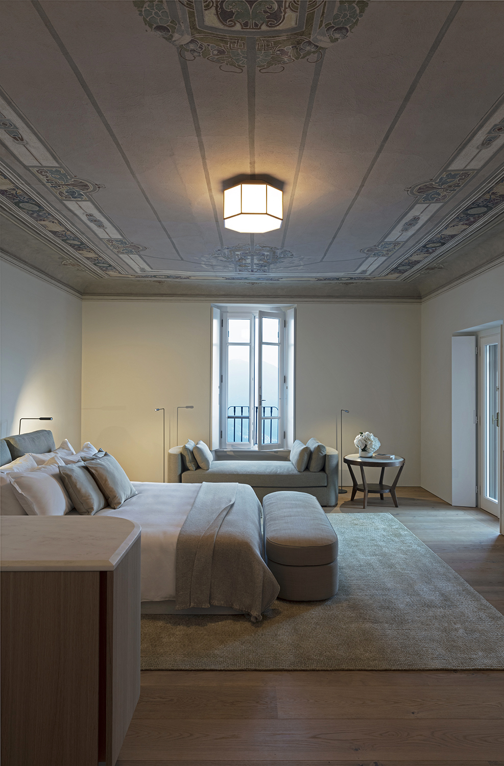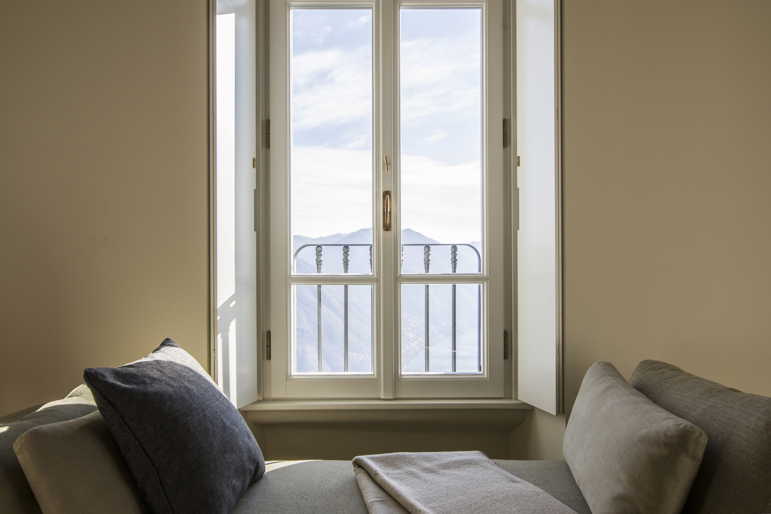 Les vues depuis la Villa Peduzzi, orientée au sud, sont vraiment époustouflantes – un mélange de larges panoramas sur un lac bleu et des montagnes vertes, complétées par de magnifiques couchers de soleil dorés. On peut en profiter depuis les balcons de chaque chambre, la terrasse principale entourant la villa et l’extraordinaire maison de la piscine avec son toit vert et sa piscine à débordement. Un autre aspect est également exploité par une salle exceptionnelle de yoga/bien-être creusée dans la falaise ainsi que les terrasses sur le toit, un bar et un espace de divertissement.
