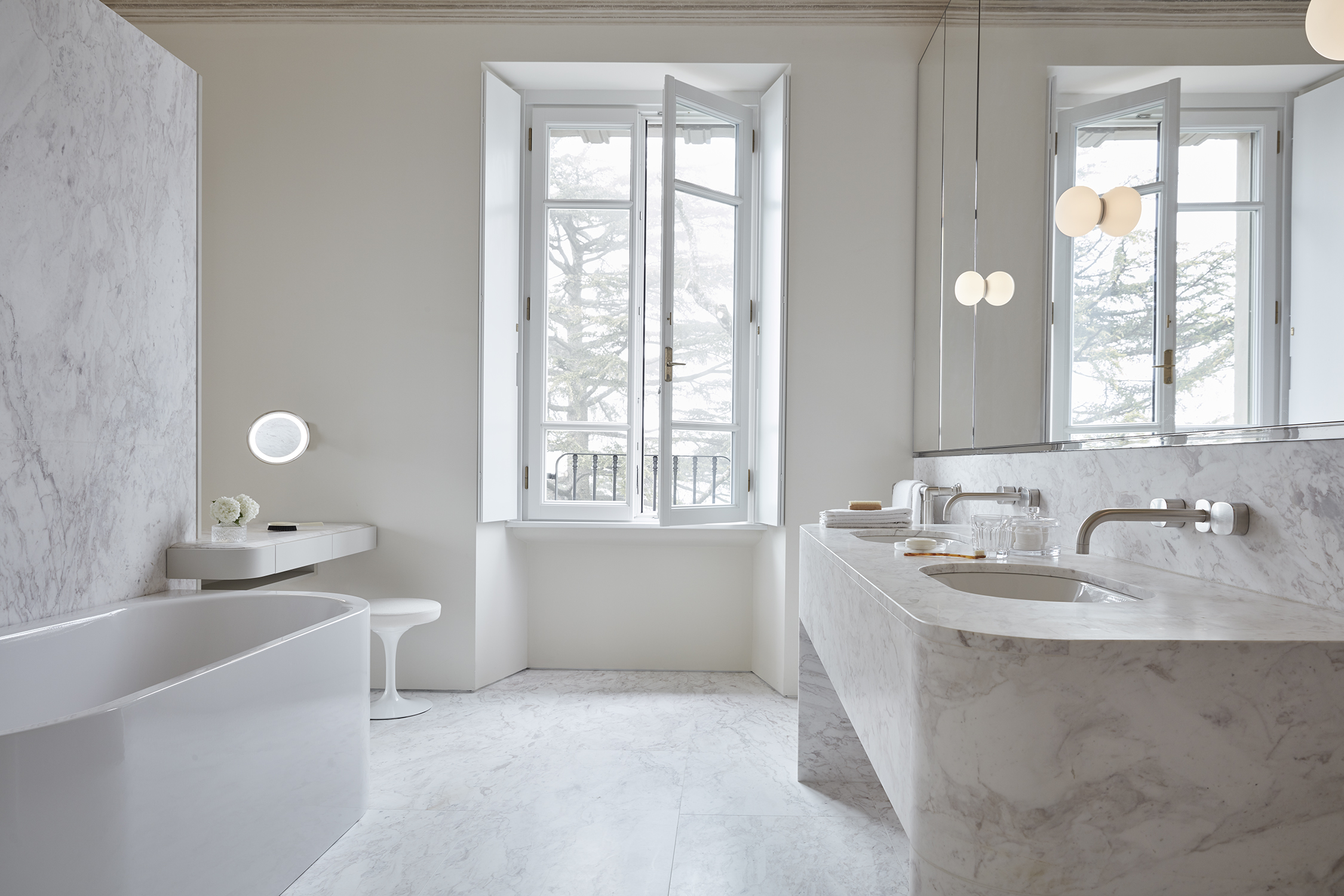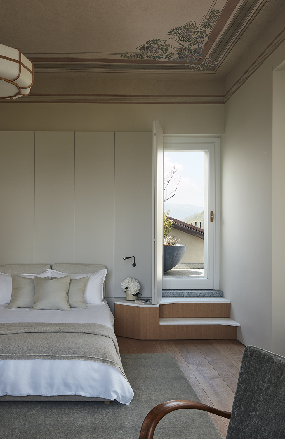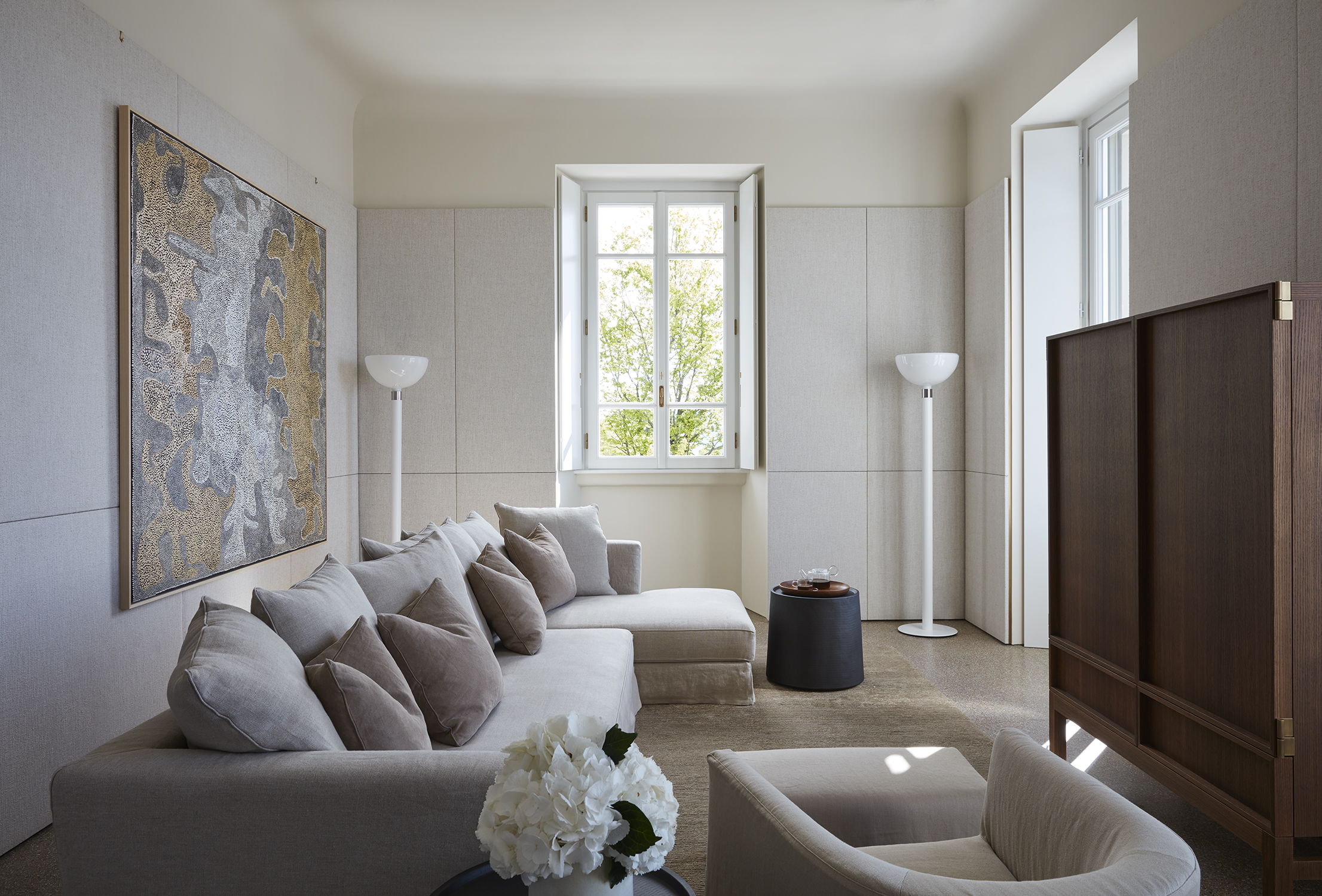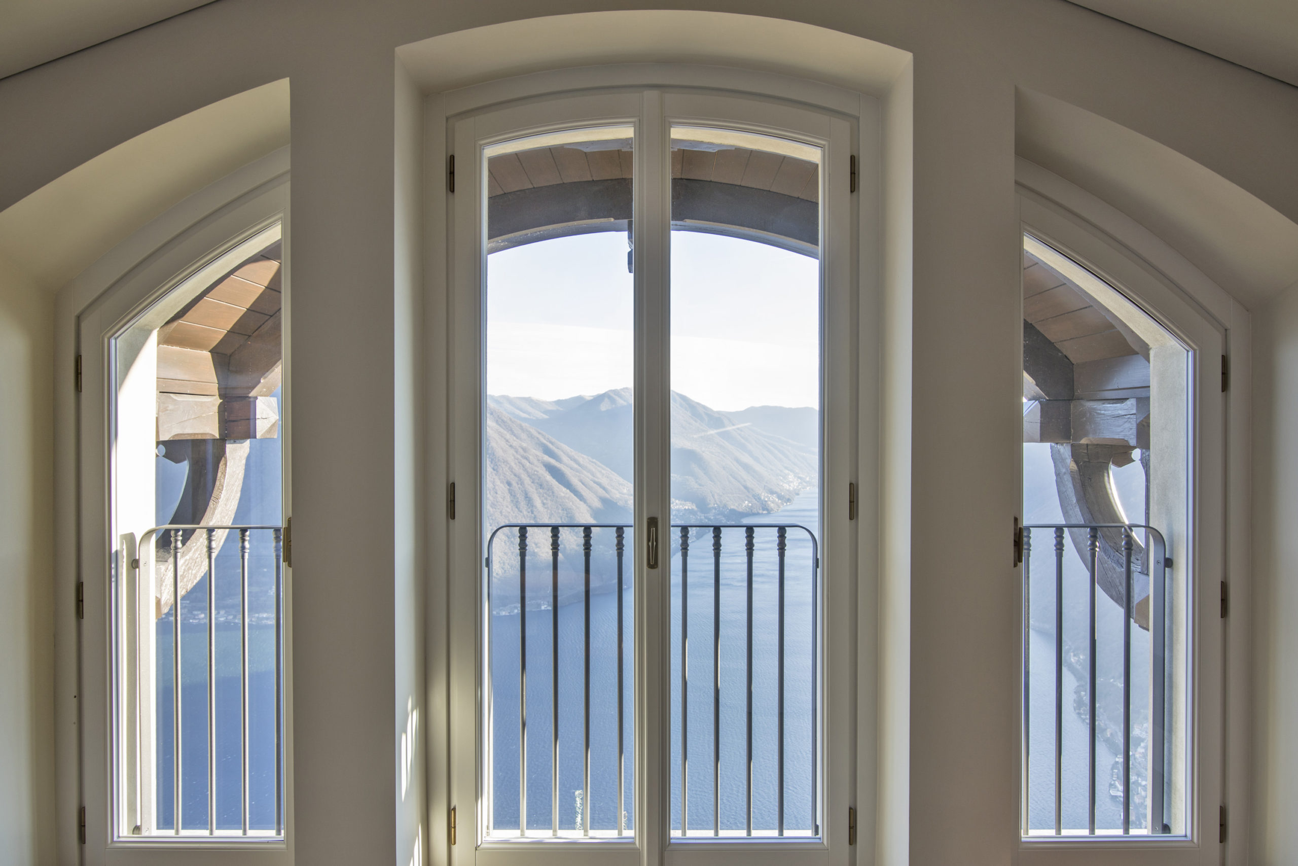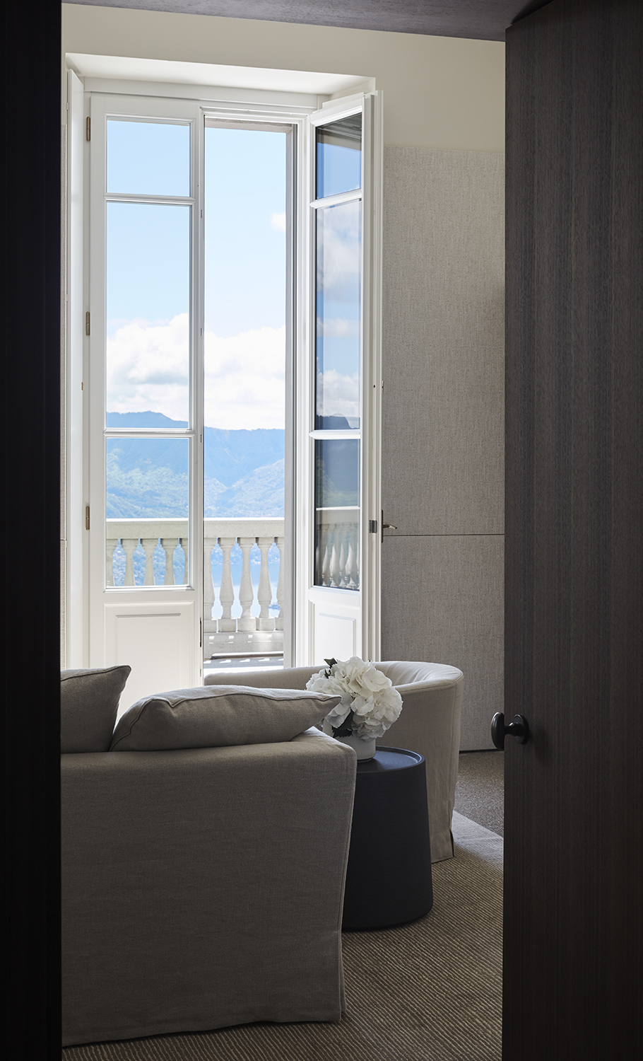 Les vues depuis la Villa Peduzzi, orientée au sud, sont vraiment époustouflantes – un mélange de larges panoramas sur un lac bleu et des montagnes vertes, complétées par de magnifiques couchers de soleil dorés. On peut en profiter depuis les balcons de chaque chambre, la terrasse principale entourant la villa et l’extraordinaire maison de la piscine avec son toit vert et sa piscine à débordement. Un autre aspect est également exploité par une salle exceptionnelle de yoga/bien-être creusée dans la falaise ainsi que les terrasses sur le toit, un bar et un espace de divertissement.