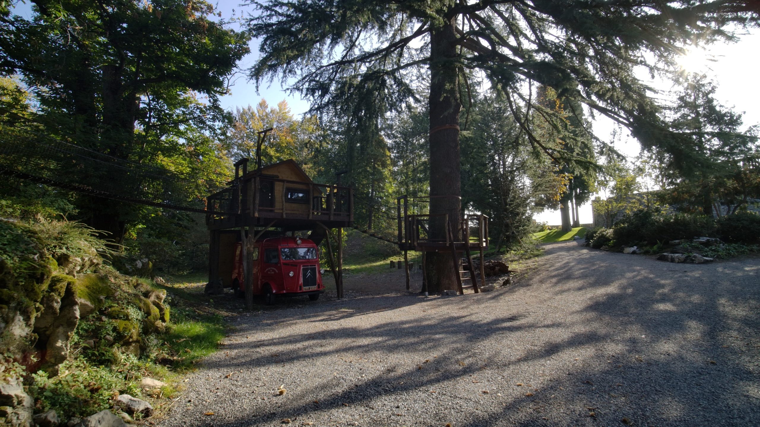 En plus de nombreux endroits pour bronzer autour de la piscine et sur le toit « vert » de la maison de piscine, il y a deux autres lieux de restauration en plein air, profitant de la proximité de la cuisine de la maison de la piscine. Il y a aussi un vestiaire et des toilettes creusées dans la paroi rocheuse.