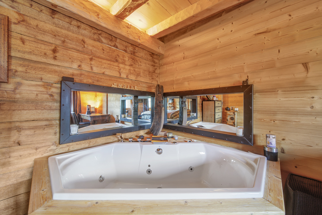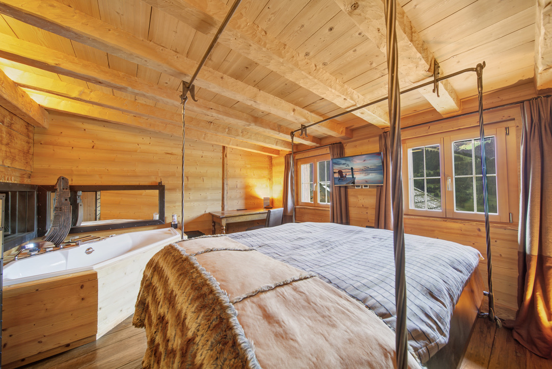 From your bed, wake up to incredible views from all around chalet windows. Bedrooms have been stylishly decorated in a mountain style. Luxury mattresses with cotton bedsheets and fluffy goose feather duvets and pillows.