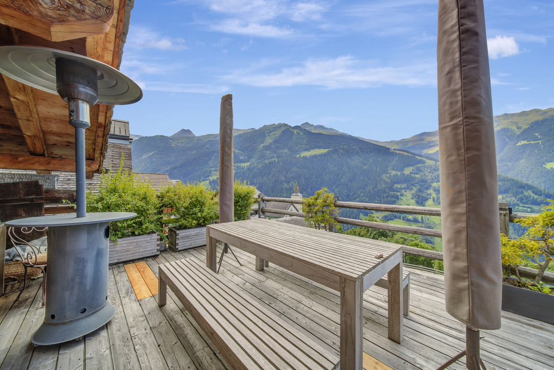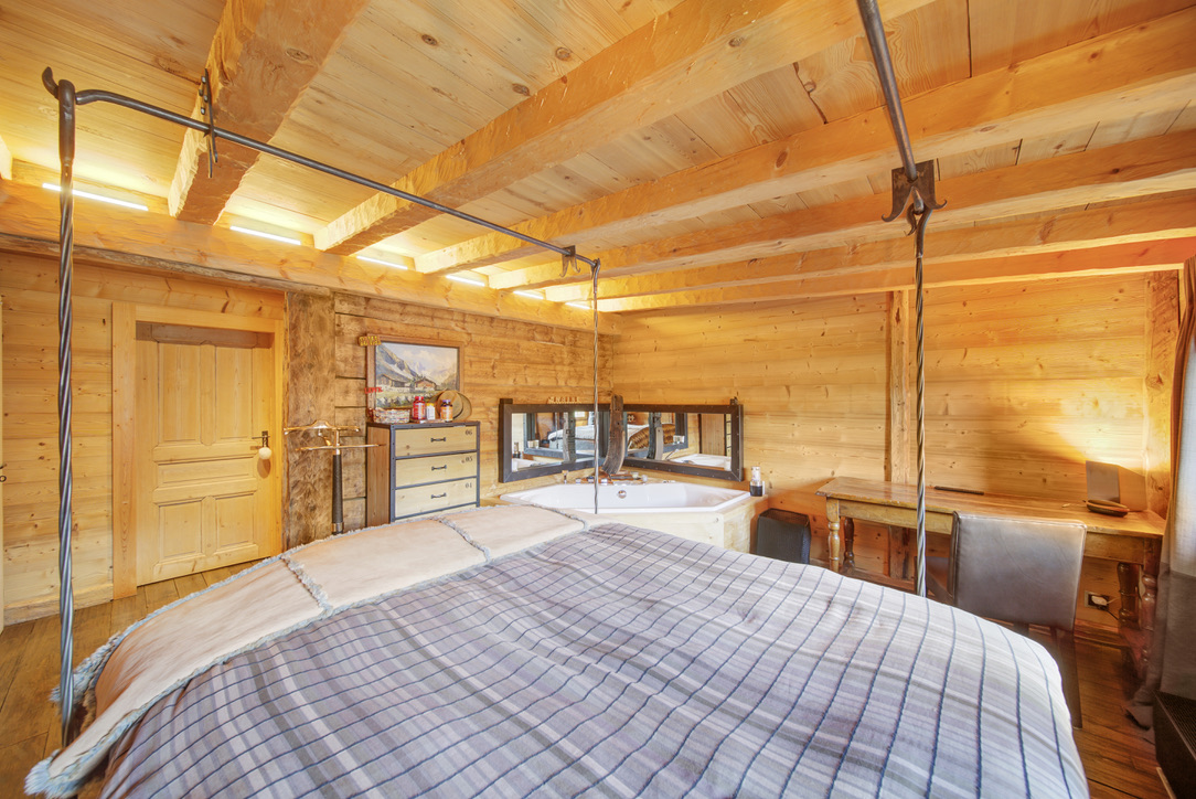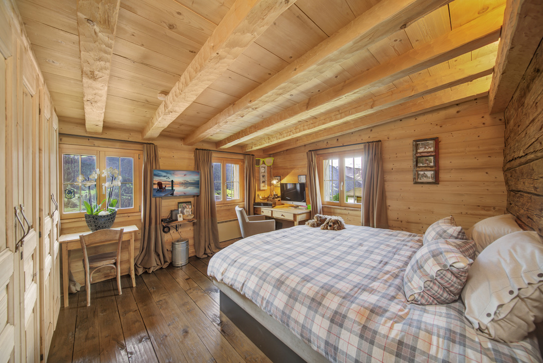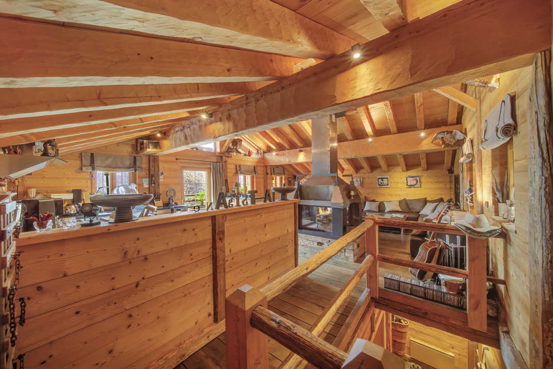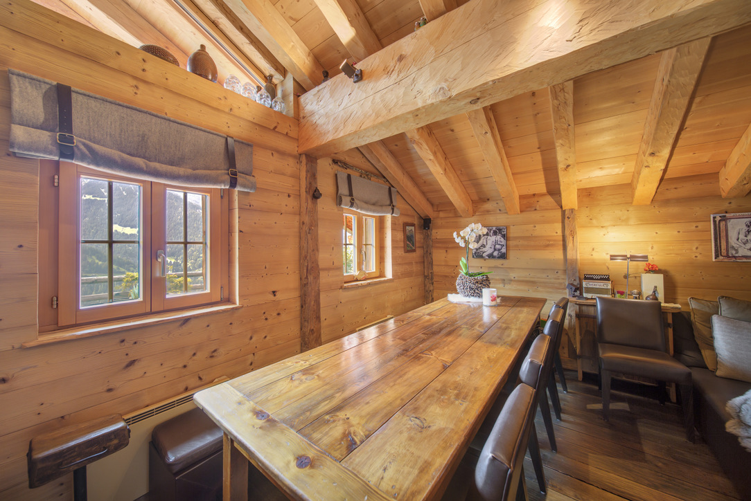 The open plan living area upstairs is the focal point in Chalet Dubey and is where you will undoubtedly spend countless hours chatting in front of the fire and enjoying the incredible views. The feeling of space is created by the double height chalet ceiling and panoramic views out into the valley. The large living space is cleverly divided into areas for eating and relaxing with access to the large terrace.