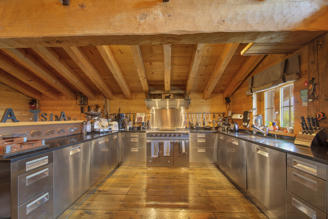 The kitchen is fully equipped with a double stove, induction hob, oven, dishwasher, toaster, kettle, raclette and fondue sets.